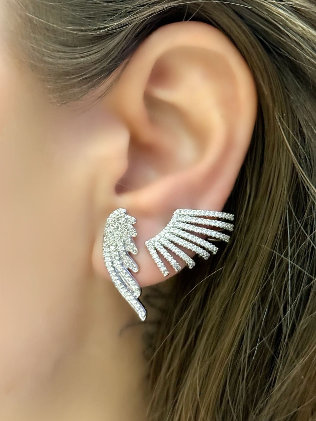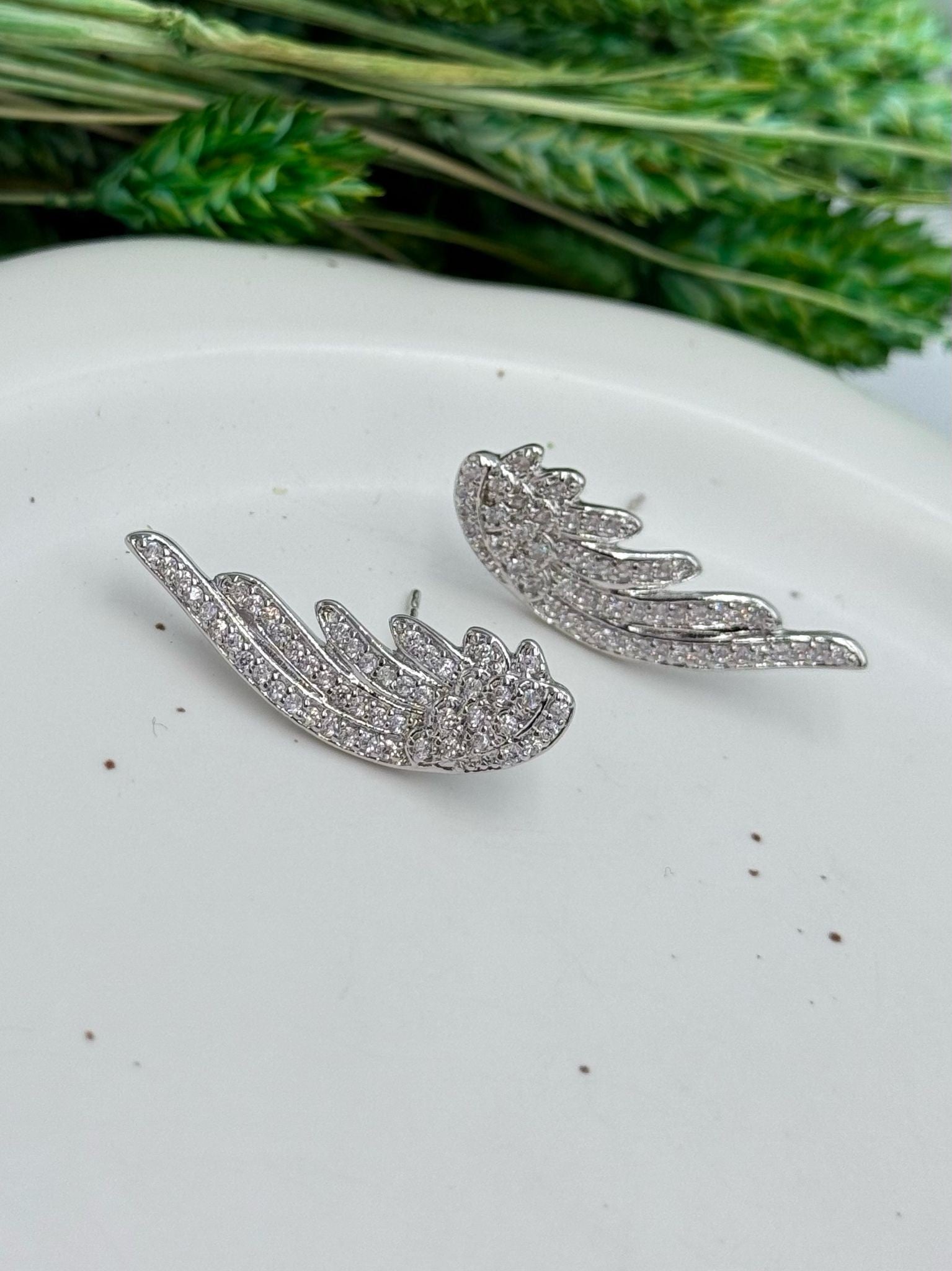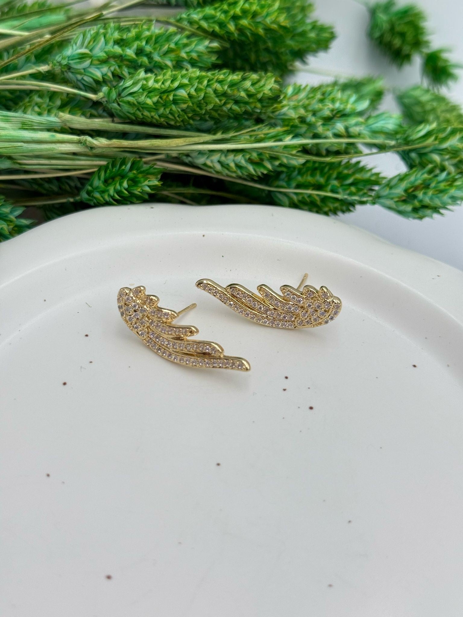 Full Zirkon Taş Detay Melek Kanadı Premium Küpe