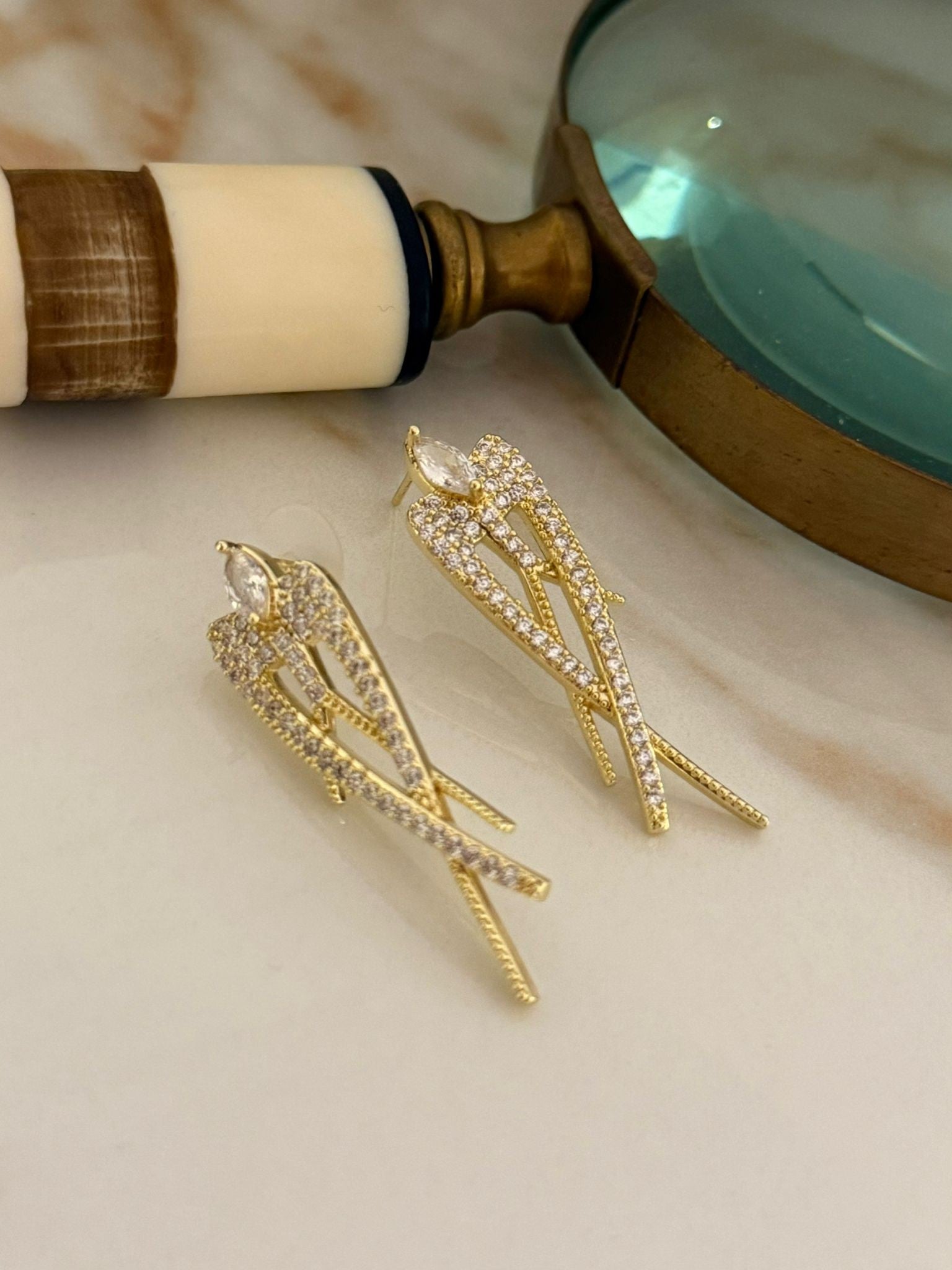 Full Zirkon Taş Detaylı Kanat Premium Küpe
