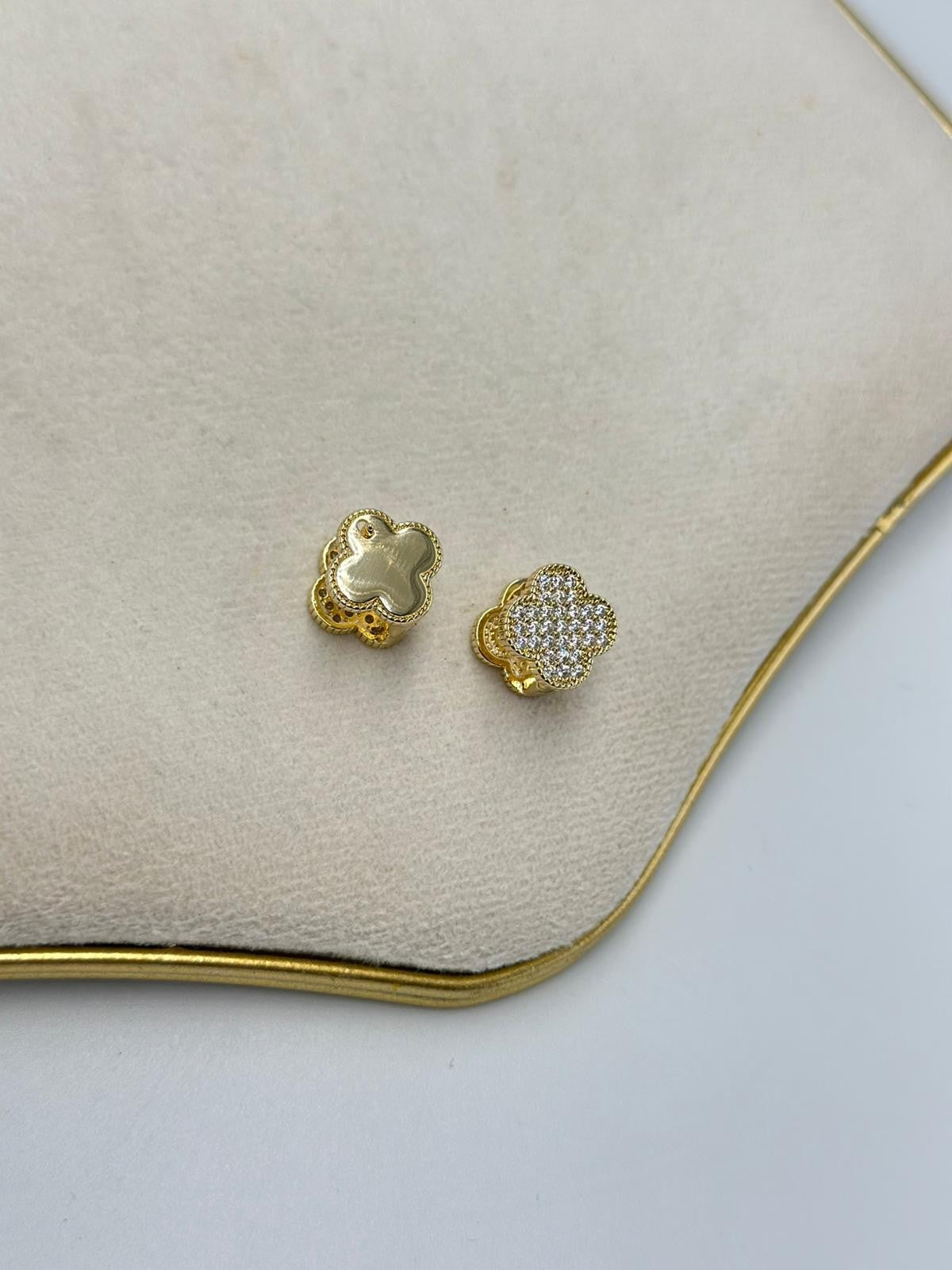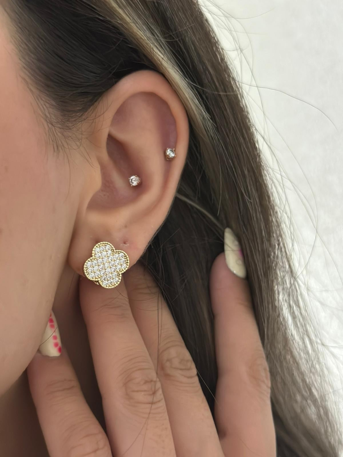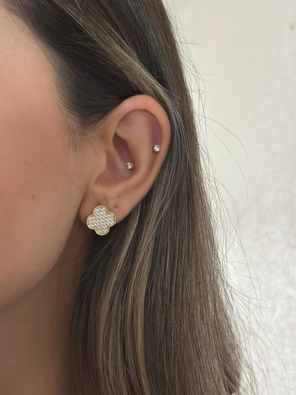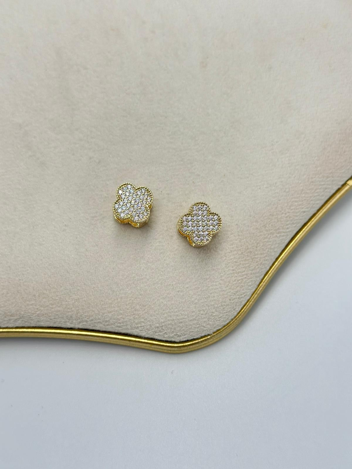 Full Zirkon Taş Minimal Yonca Premium Küpe
