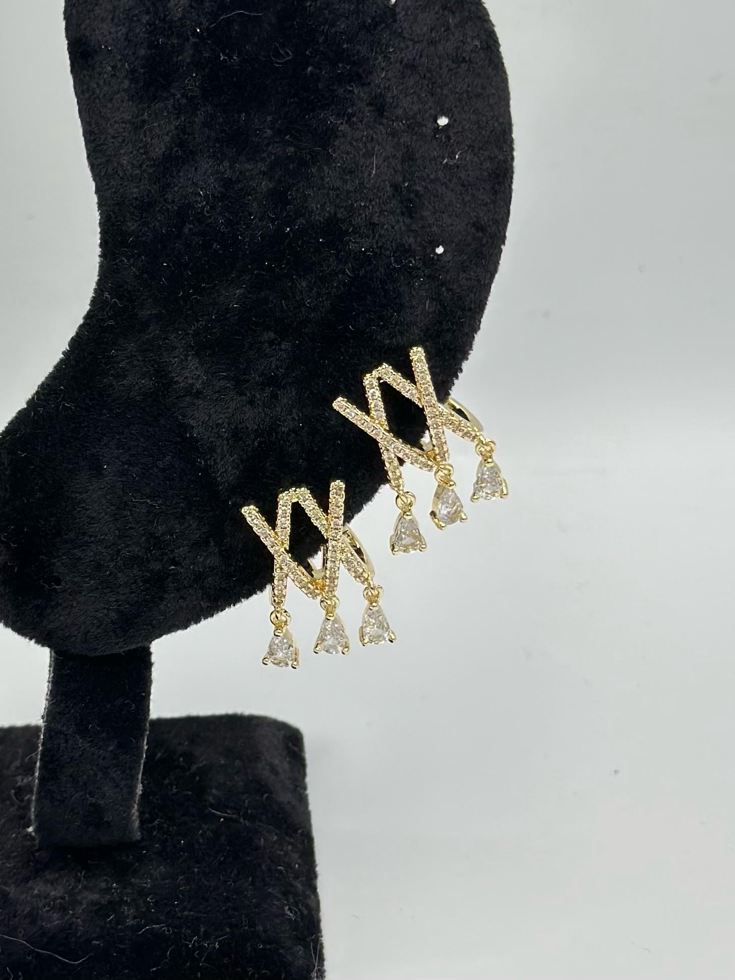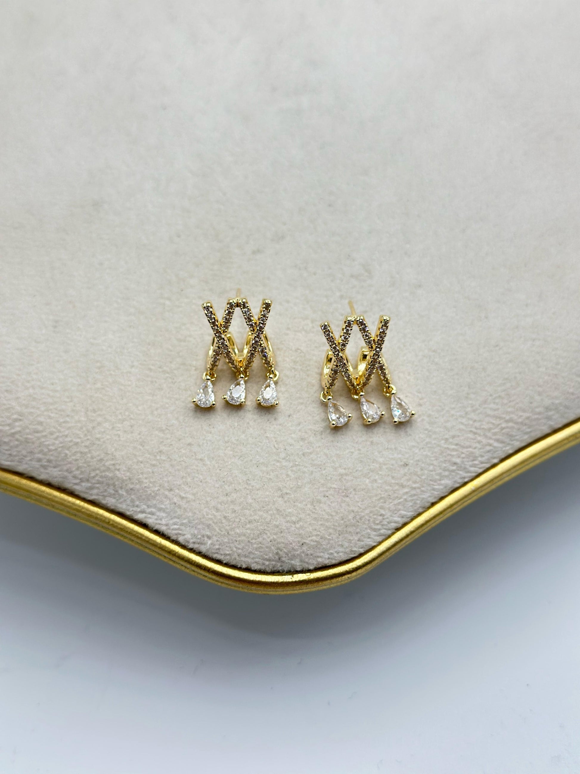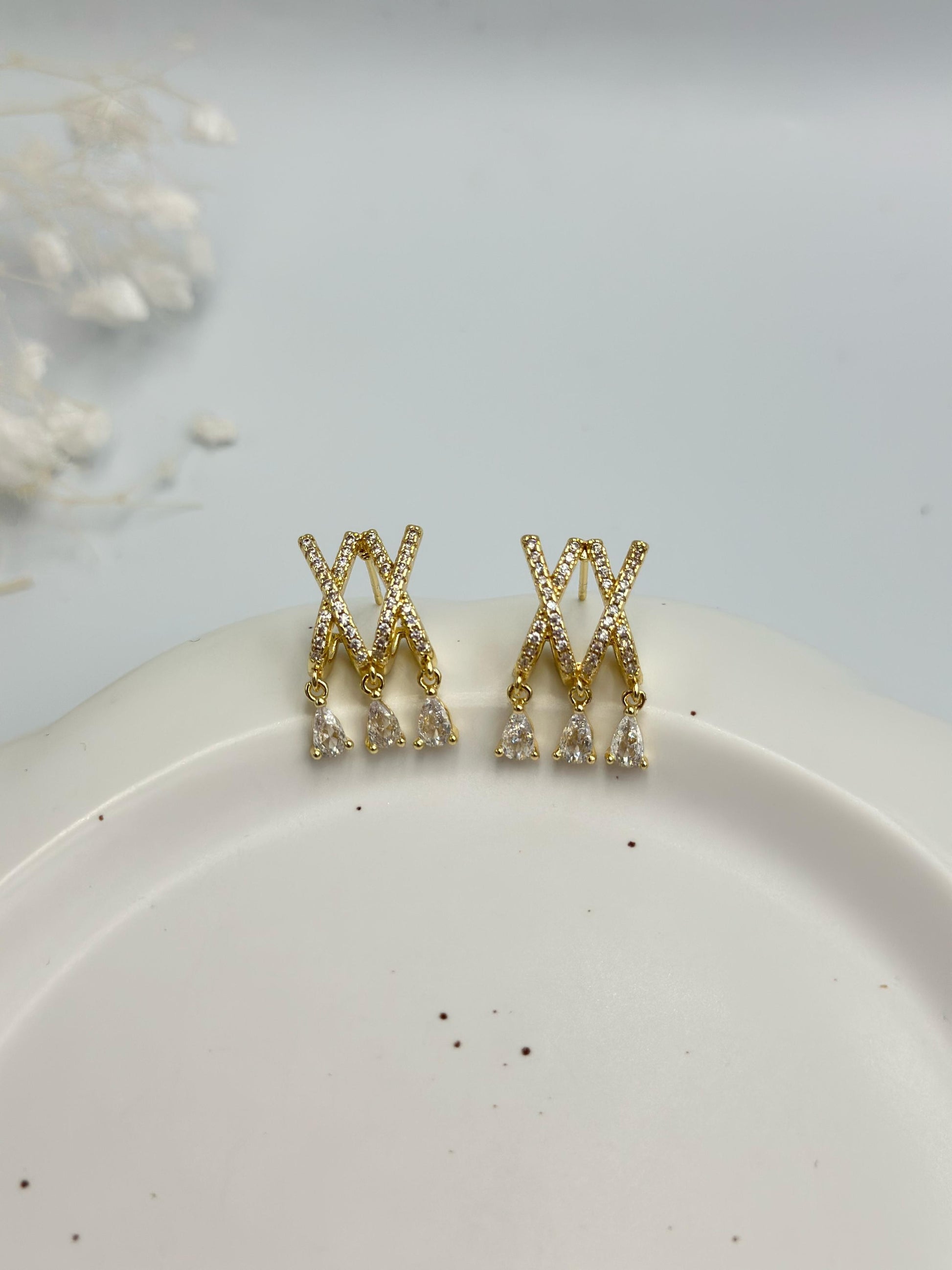 Full Zirkon X Ve Damla Taş Detay Minimal Küpe (Premium)