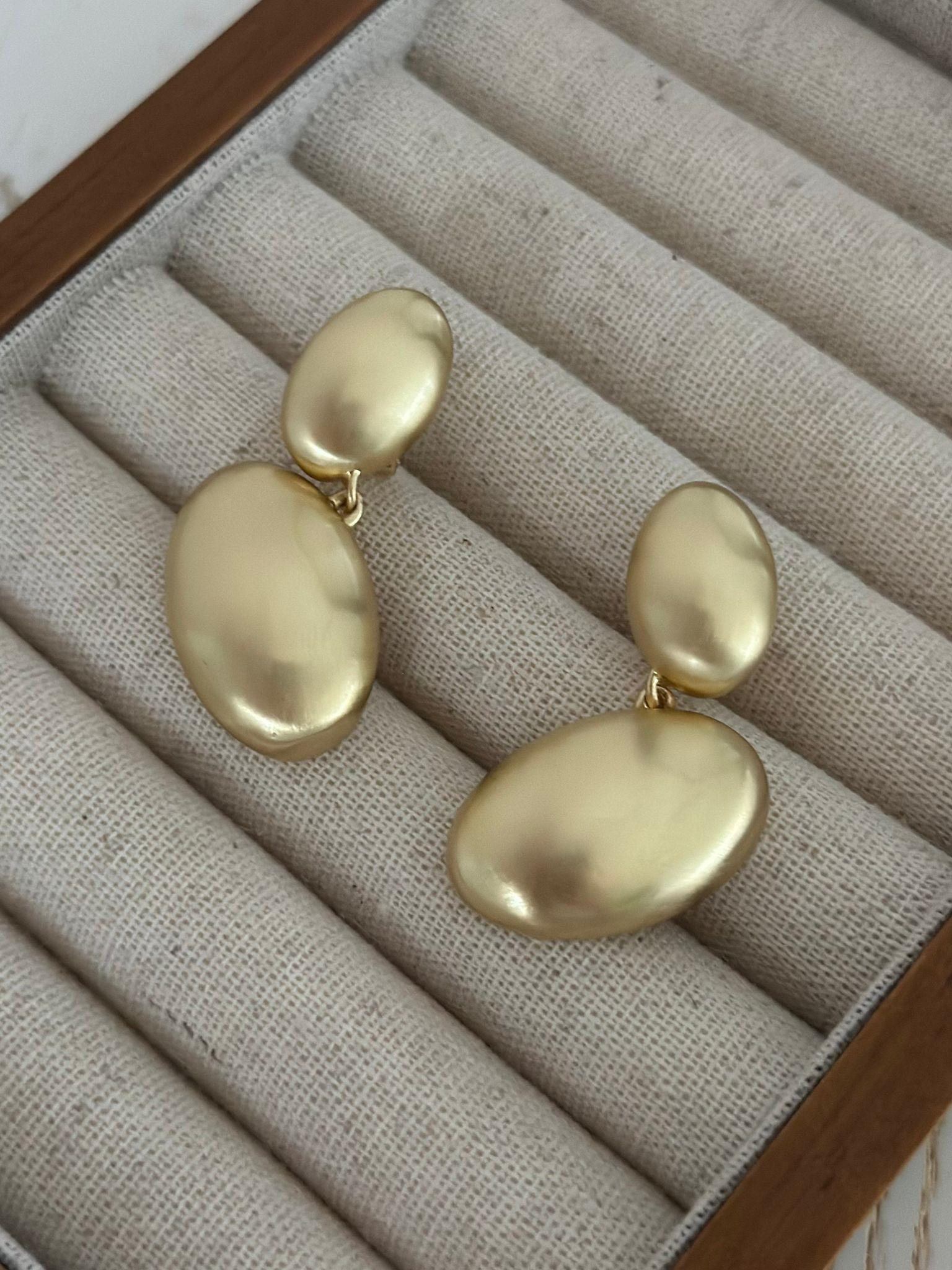 Geometri Mat Plaka Detaylı Minimal Çelik Küpe