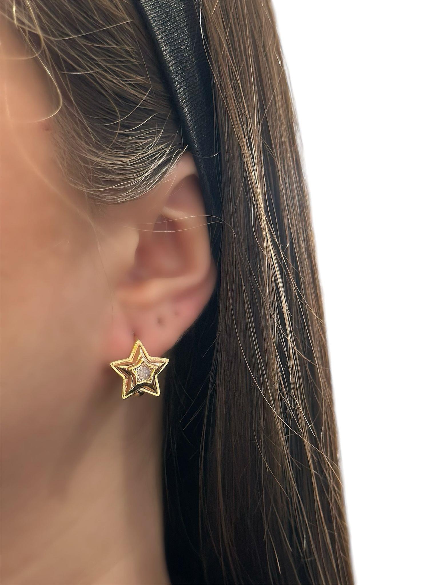 Gömme Taş Detaylı Yıldız Minimal Küpe