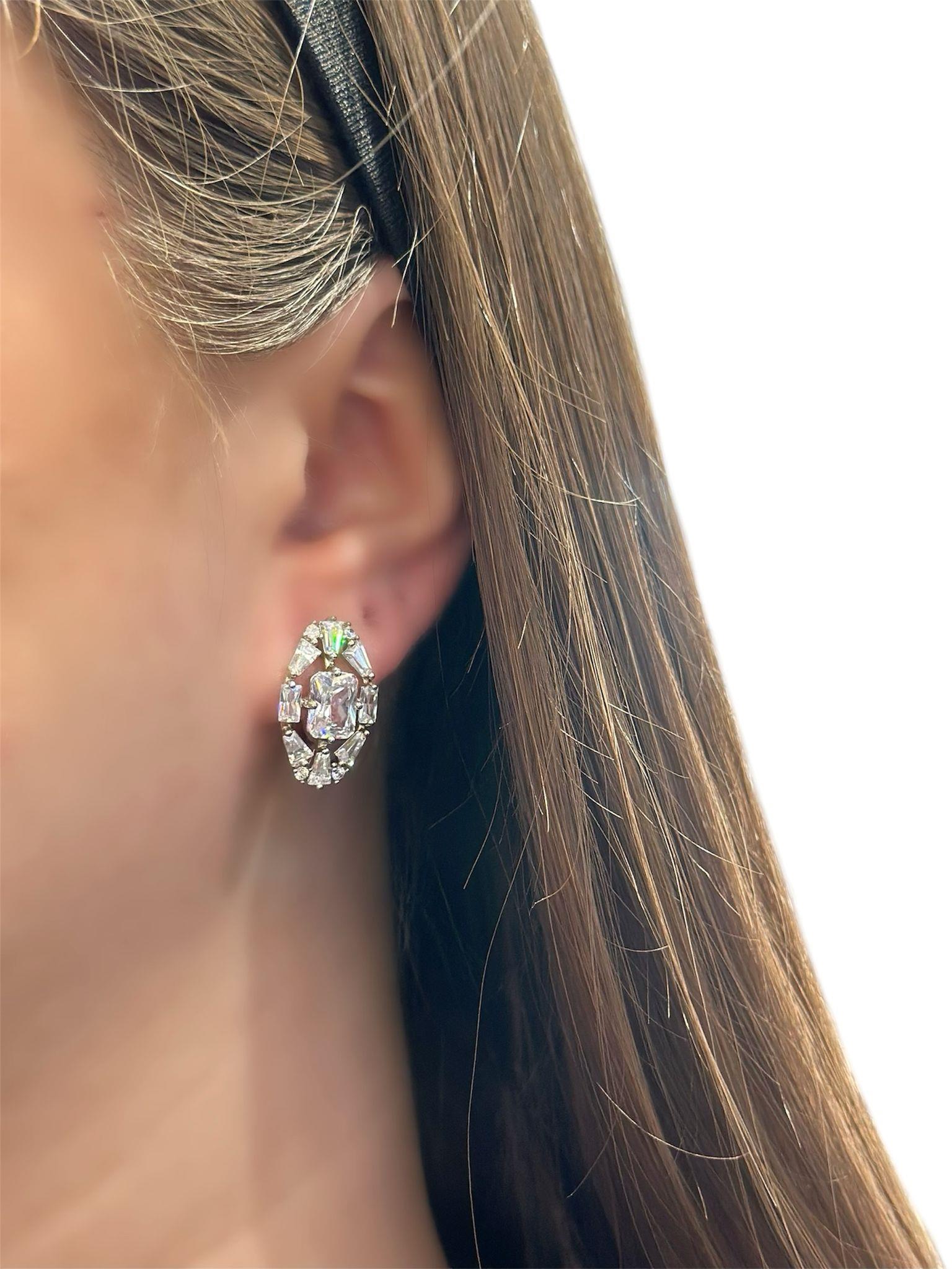 Gümüş Kaplama Zirkon Taş Detaylı Minimal Küpe