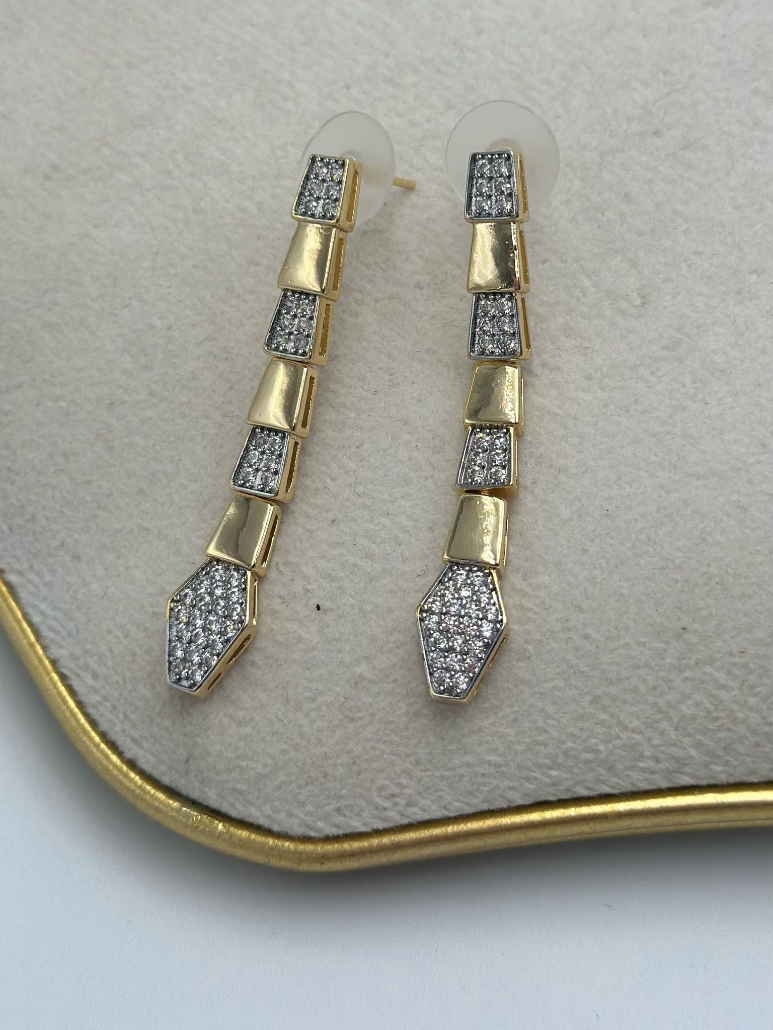 İki Renk Detaylı Sallantılı Çelik Yılan Küpe