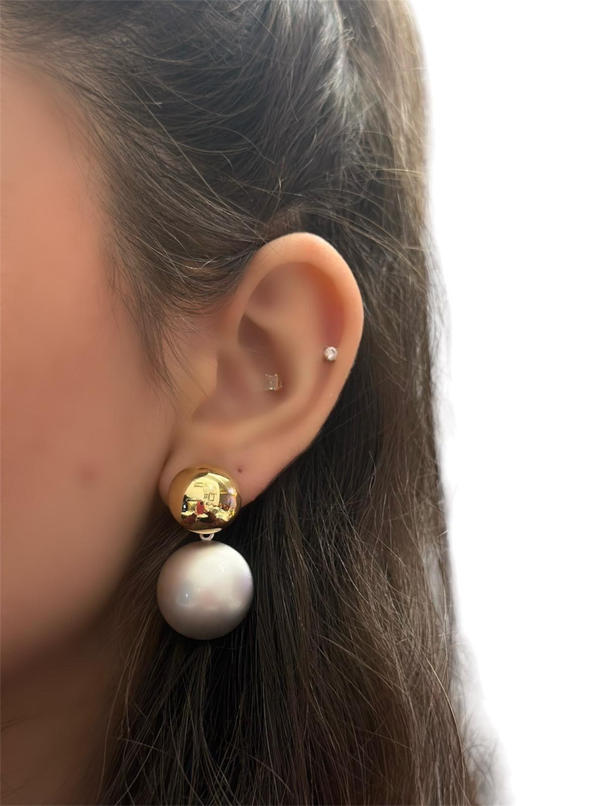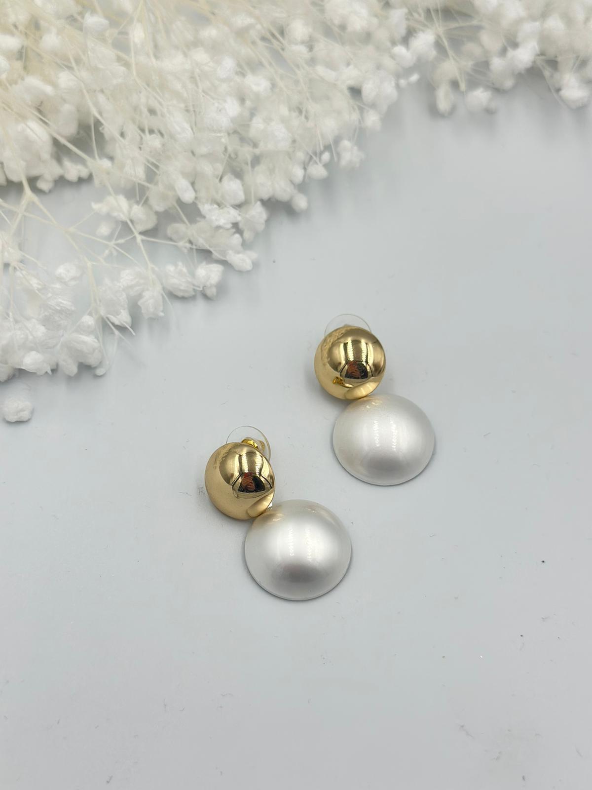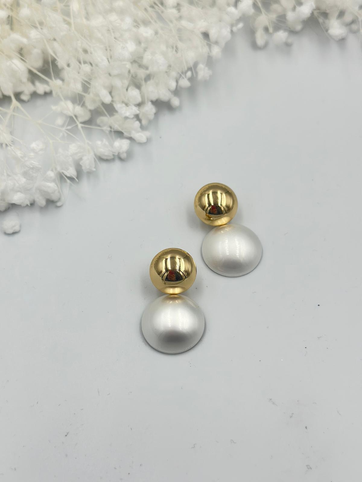 İki Renk Mat Detay Sallantılı Topçuk Küpe