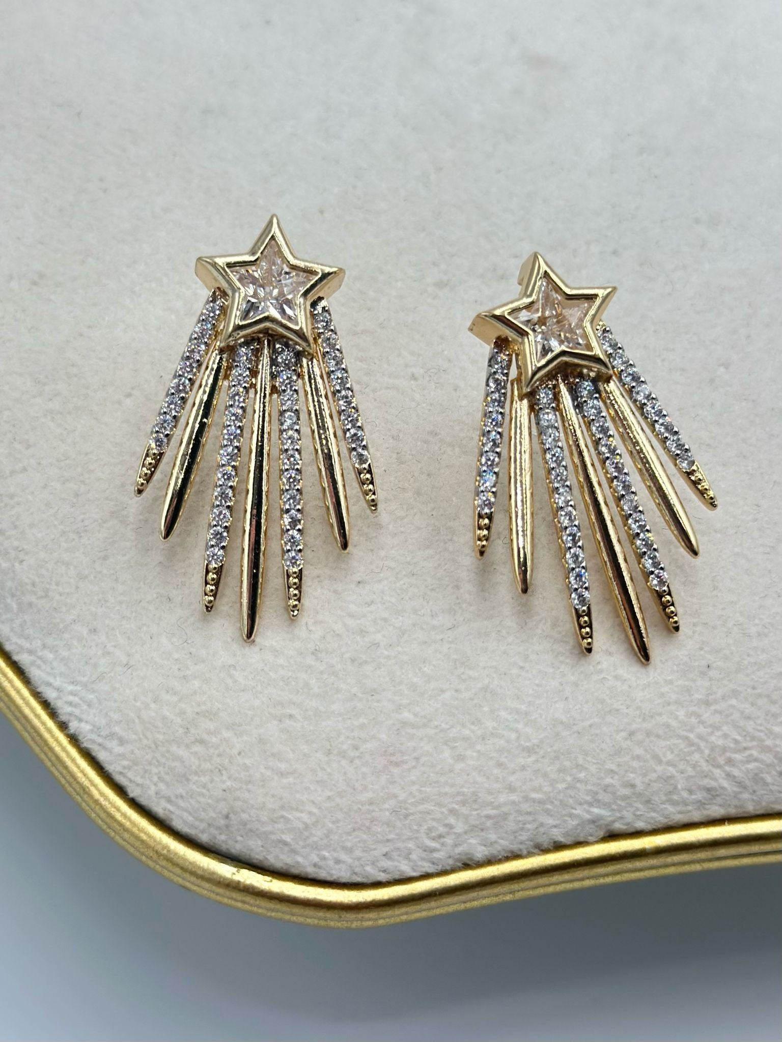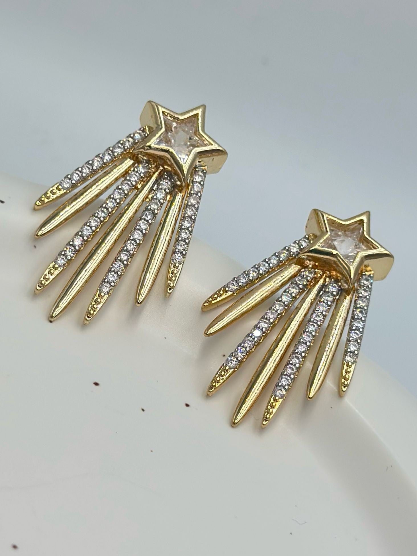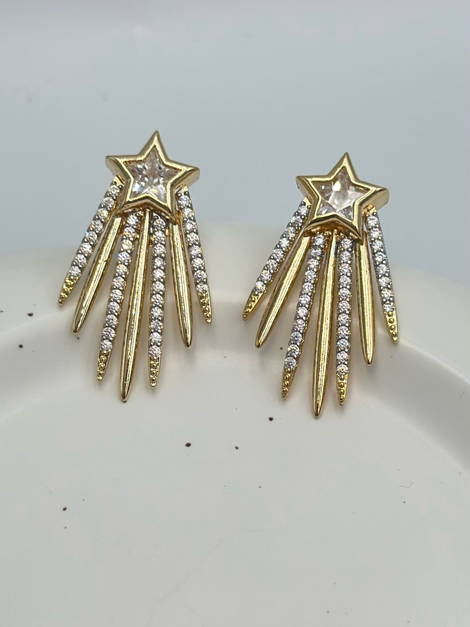 İki Renk Ve Zirkon Taş Detay Minimal Çelik Yıldız Küpe