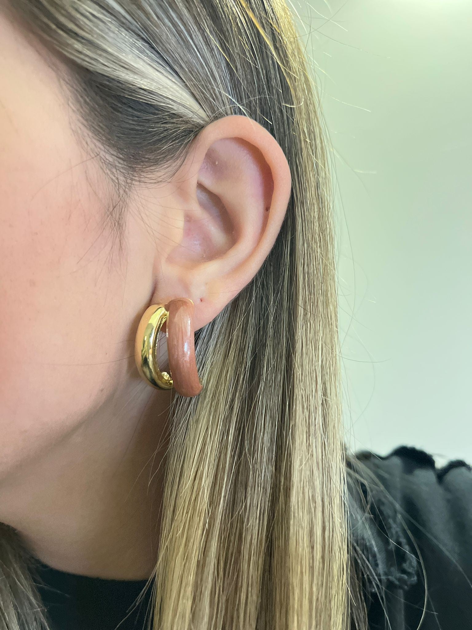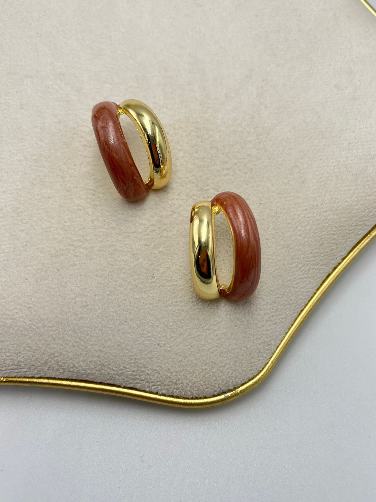 İki Sıra Detay Halka Küpe (Pirinç Kaplama)