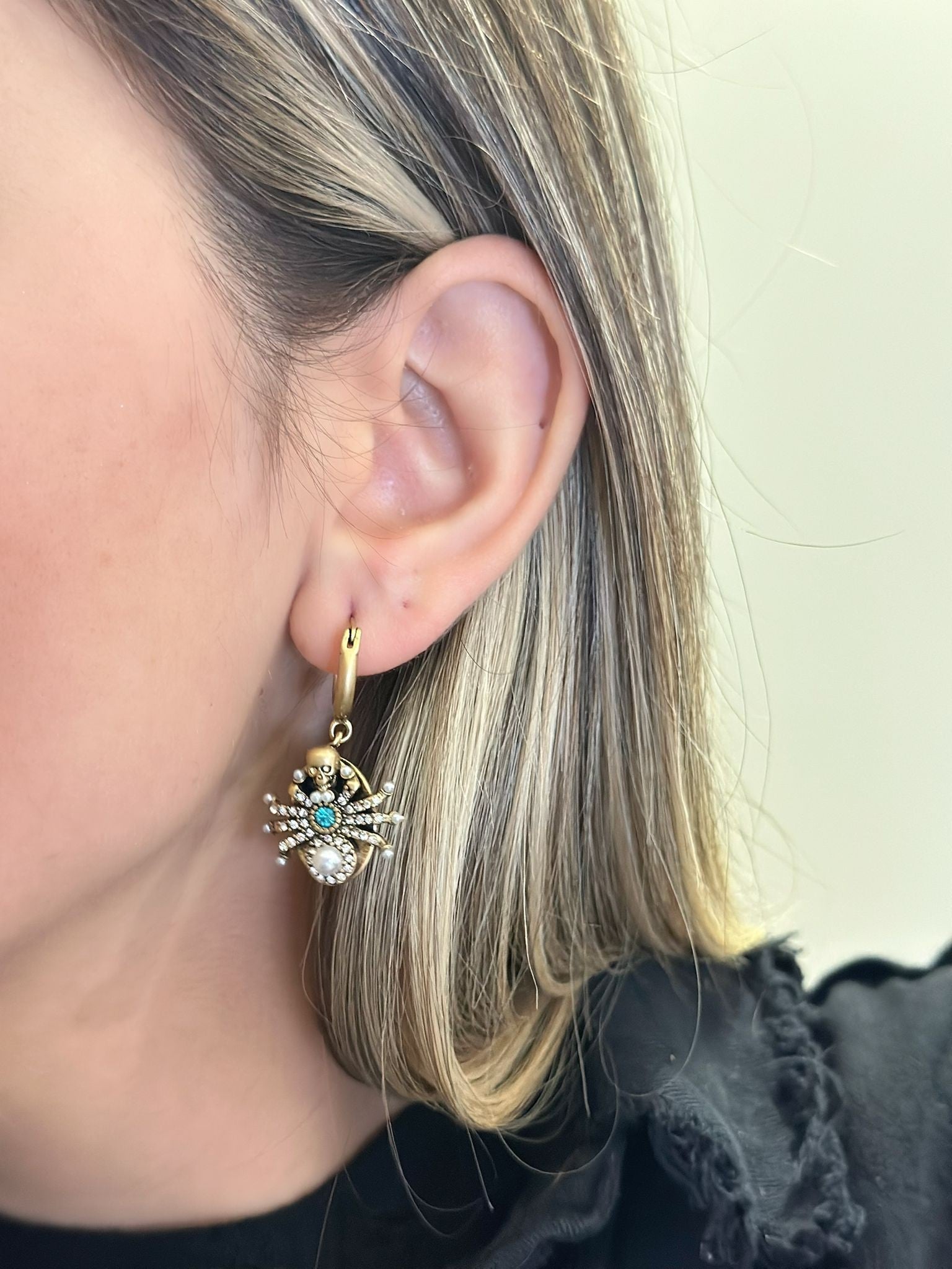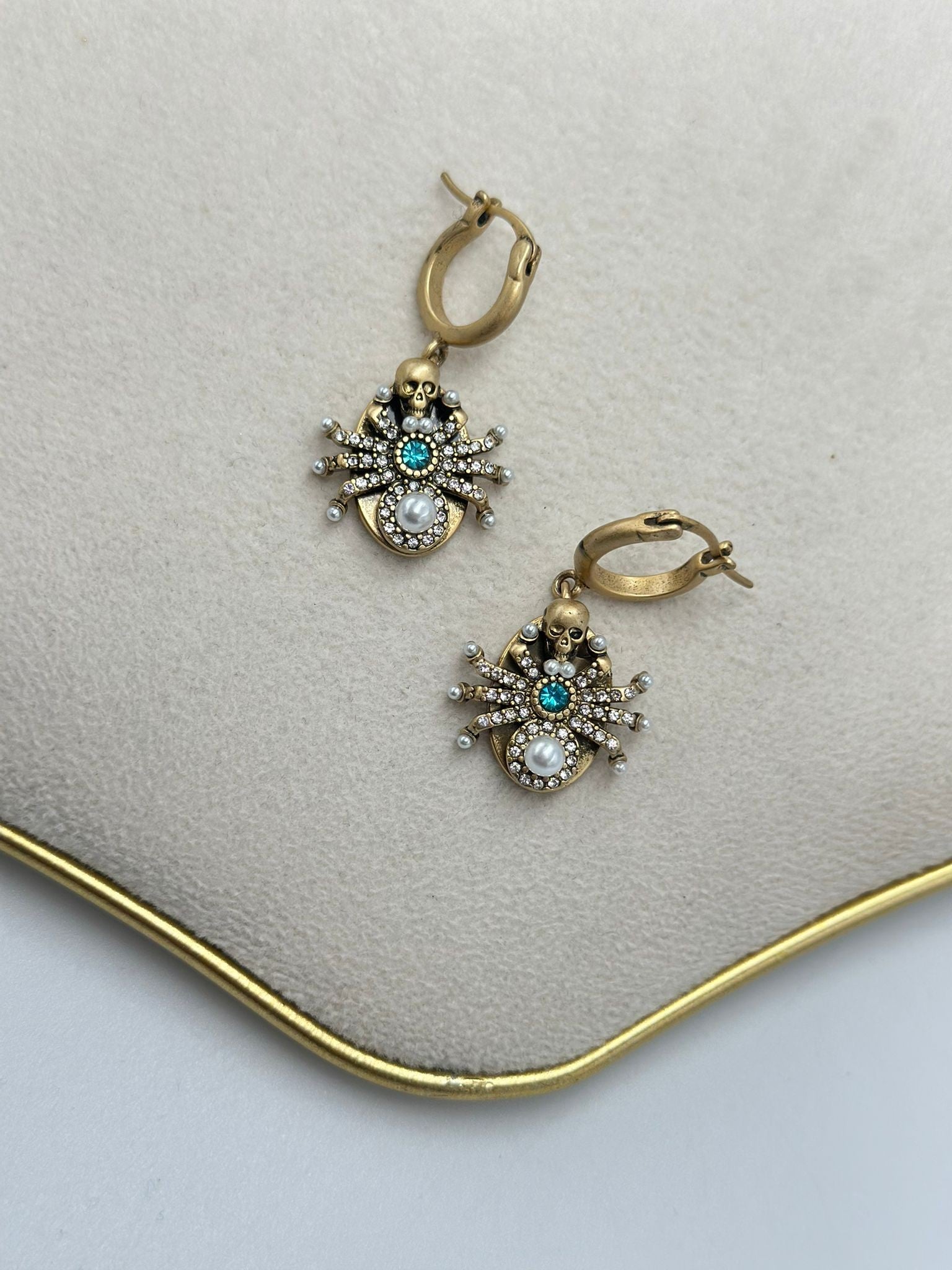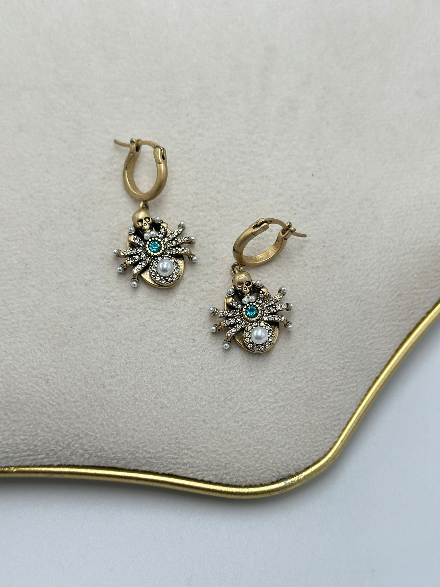 İnci Detay Sallantılı Kuru Kafa Küpe (Çelik)