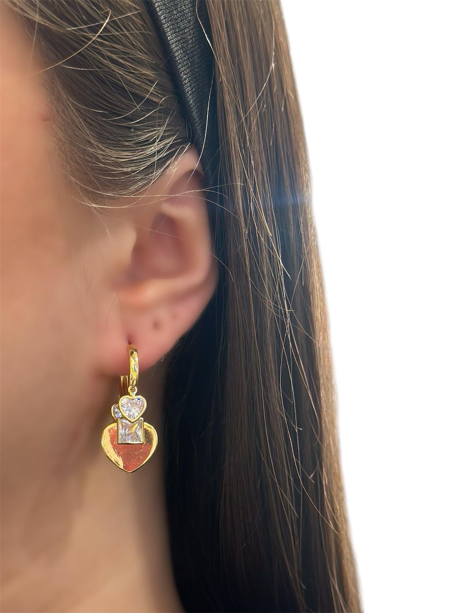 Kalp ve Baget Taş Detaylı Shakira Küpe