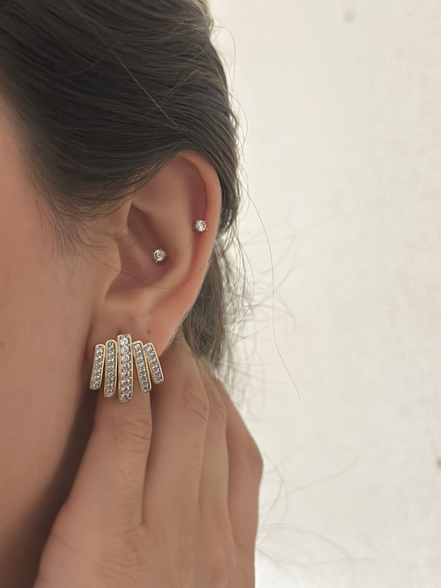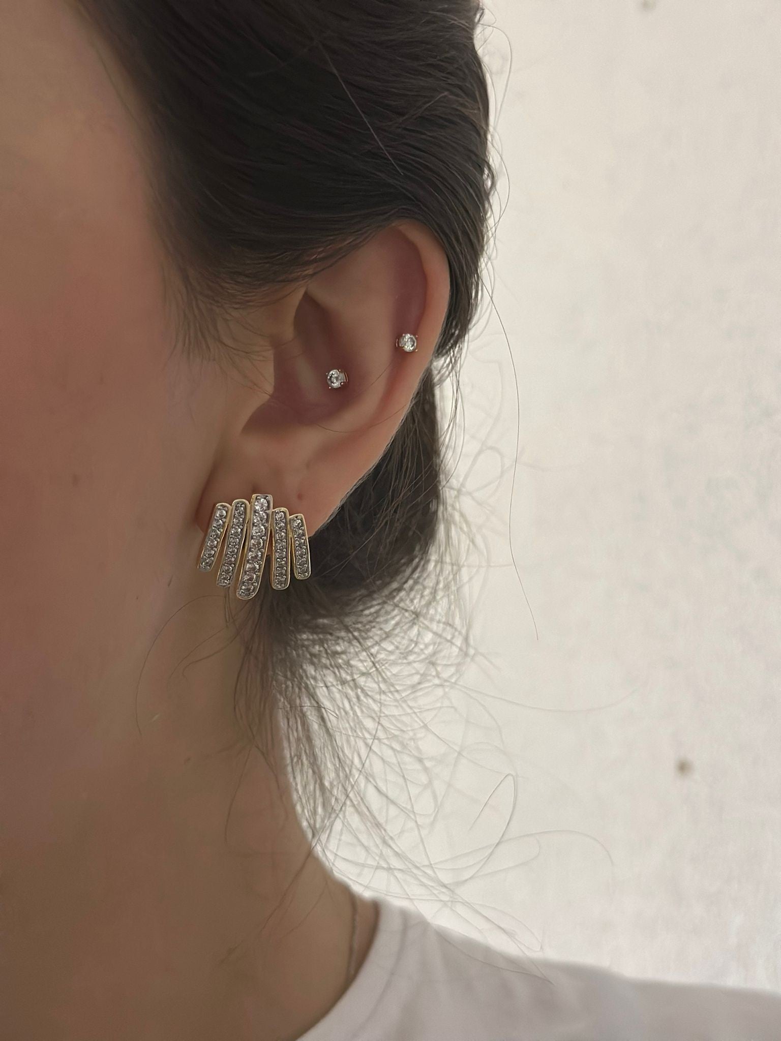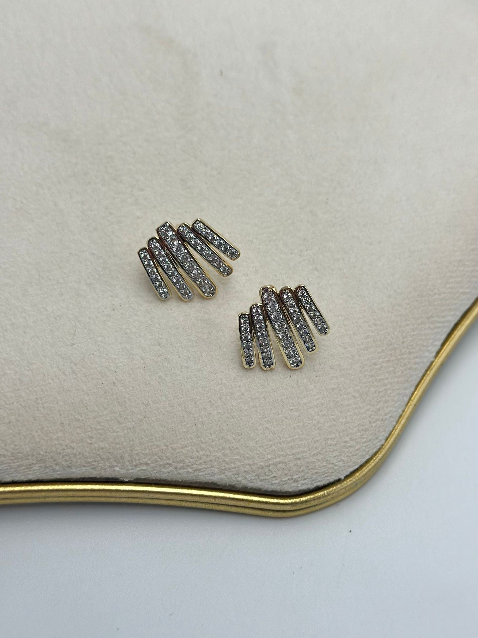Kesik Plaka Zirkon Taş Detay Minimal Küpe (Çelik)