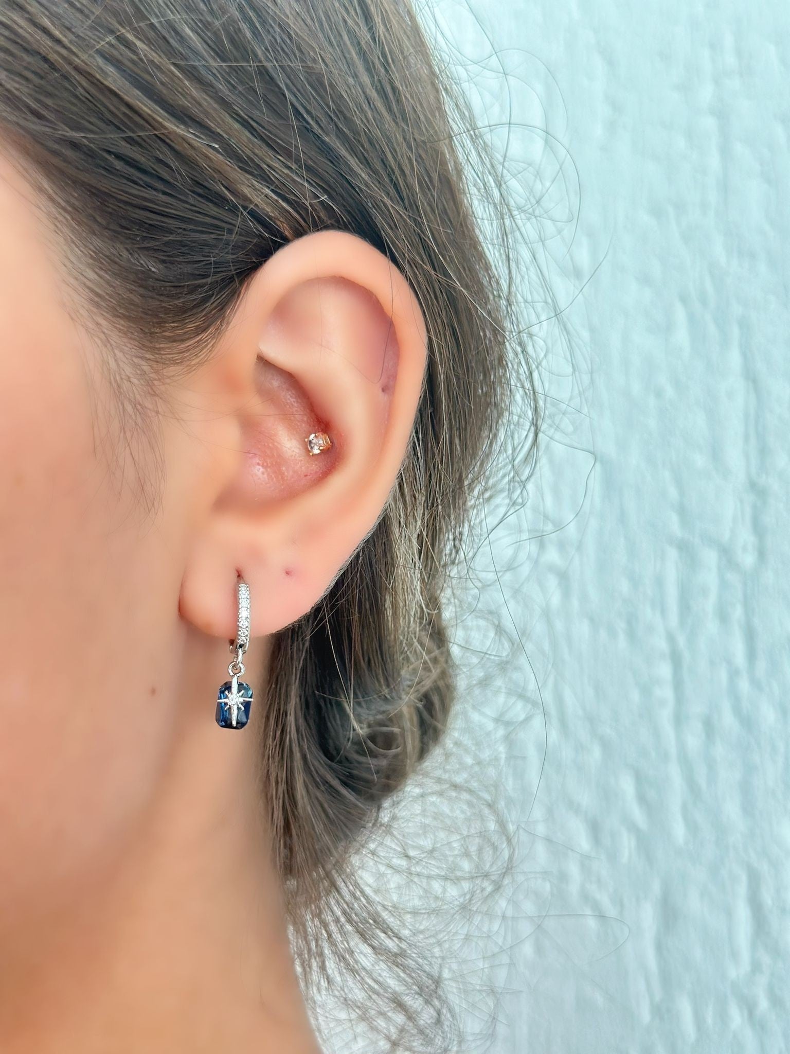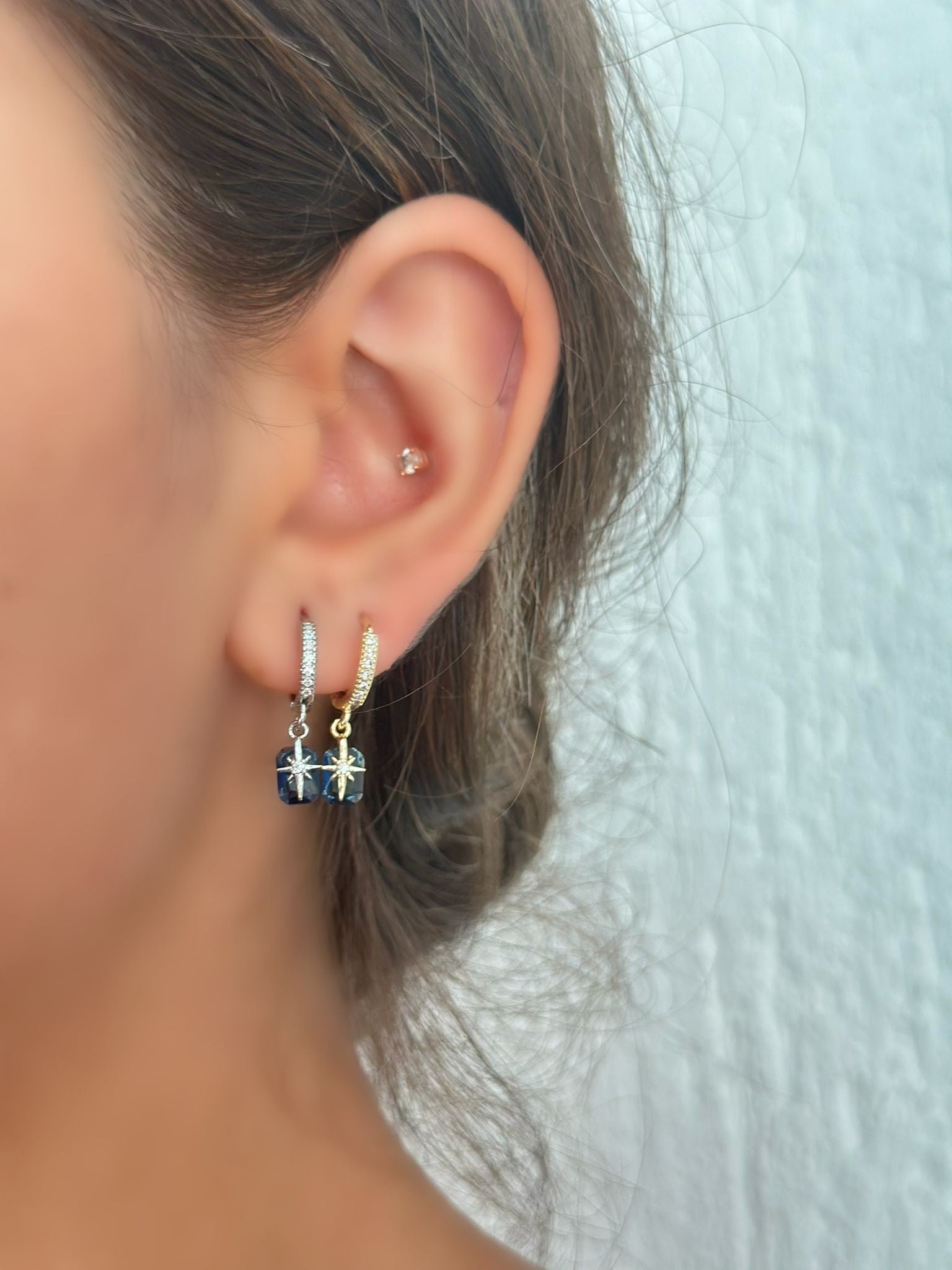 Kutup Yıldızı Detay Baget Taş Sallantılı Küpe