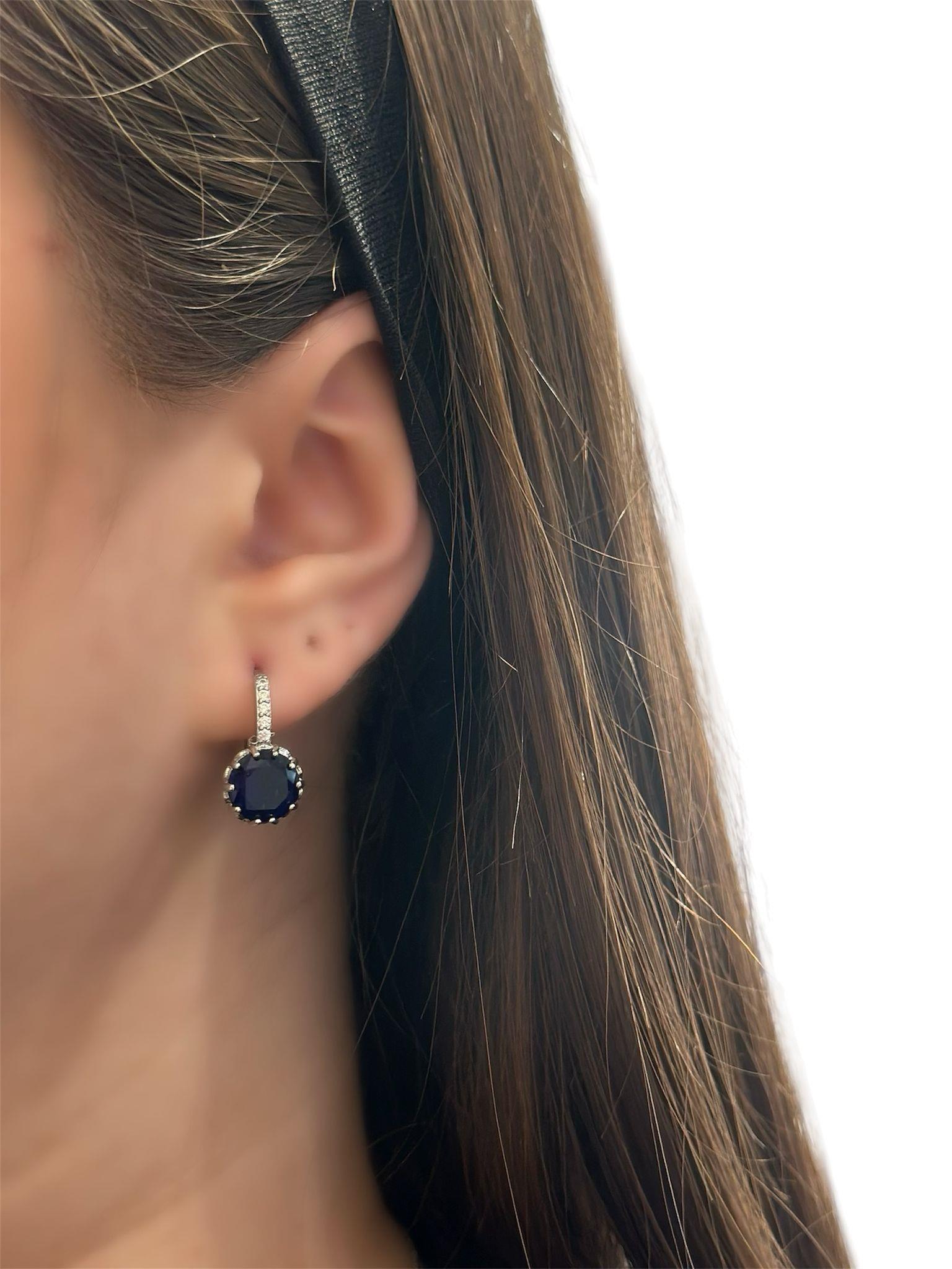 Lacivert Baget Taş Detaylı Zirkon Çelik Küpe