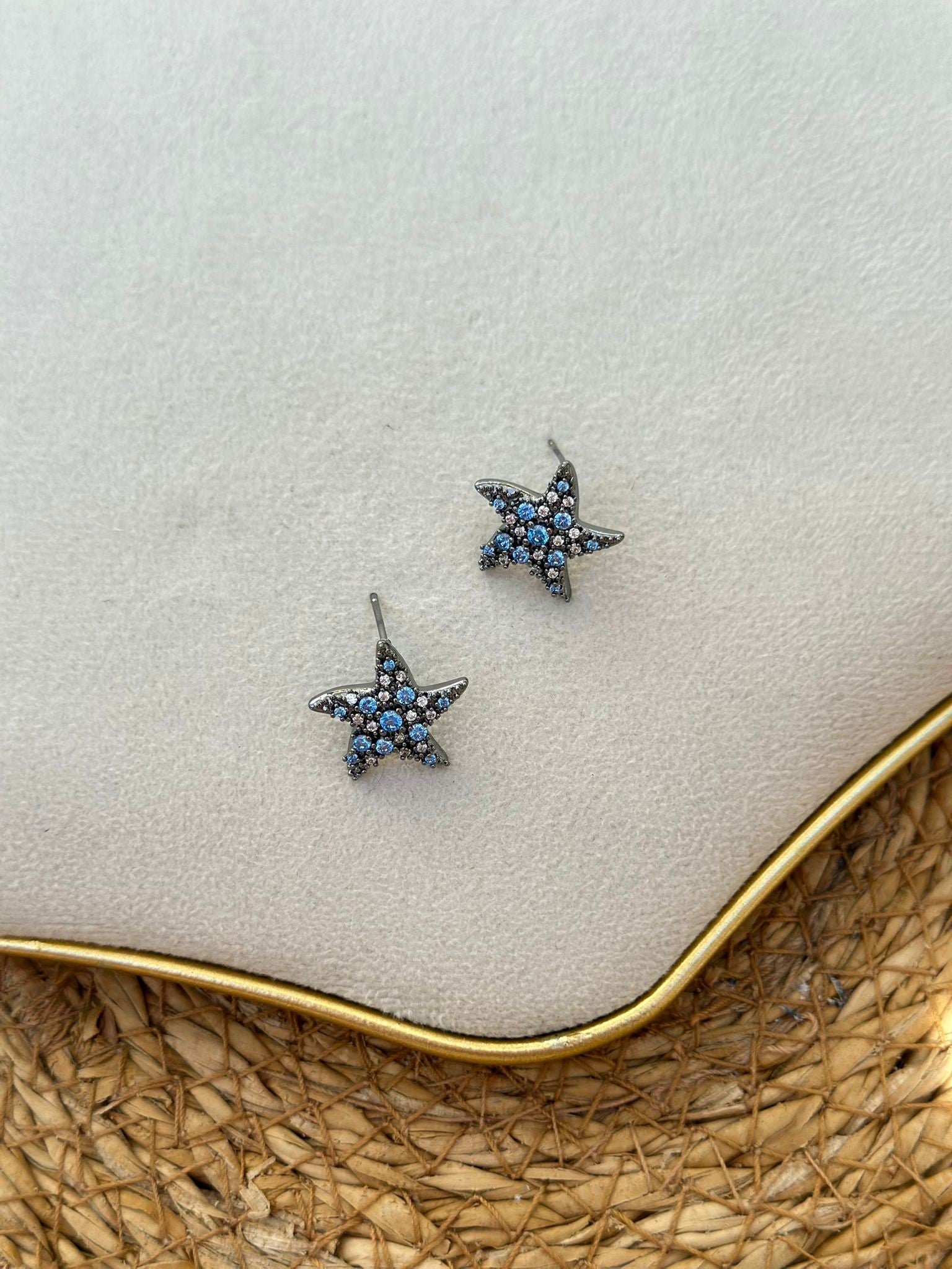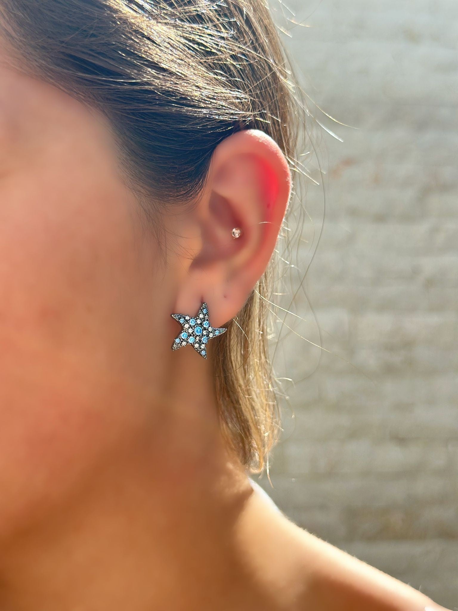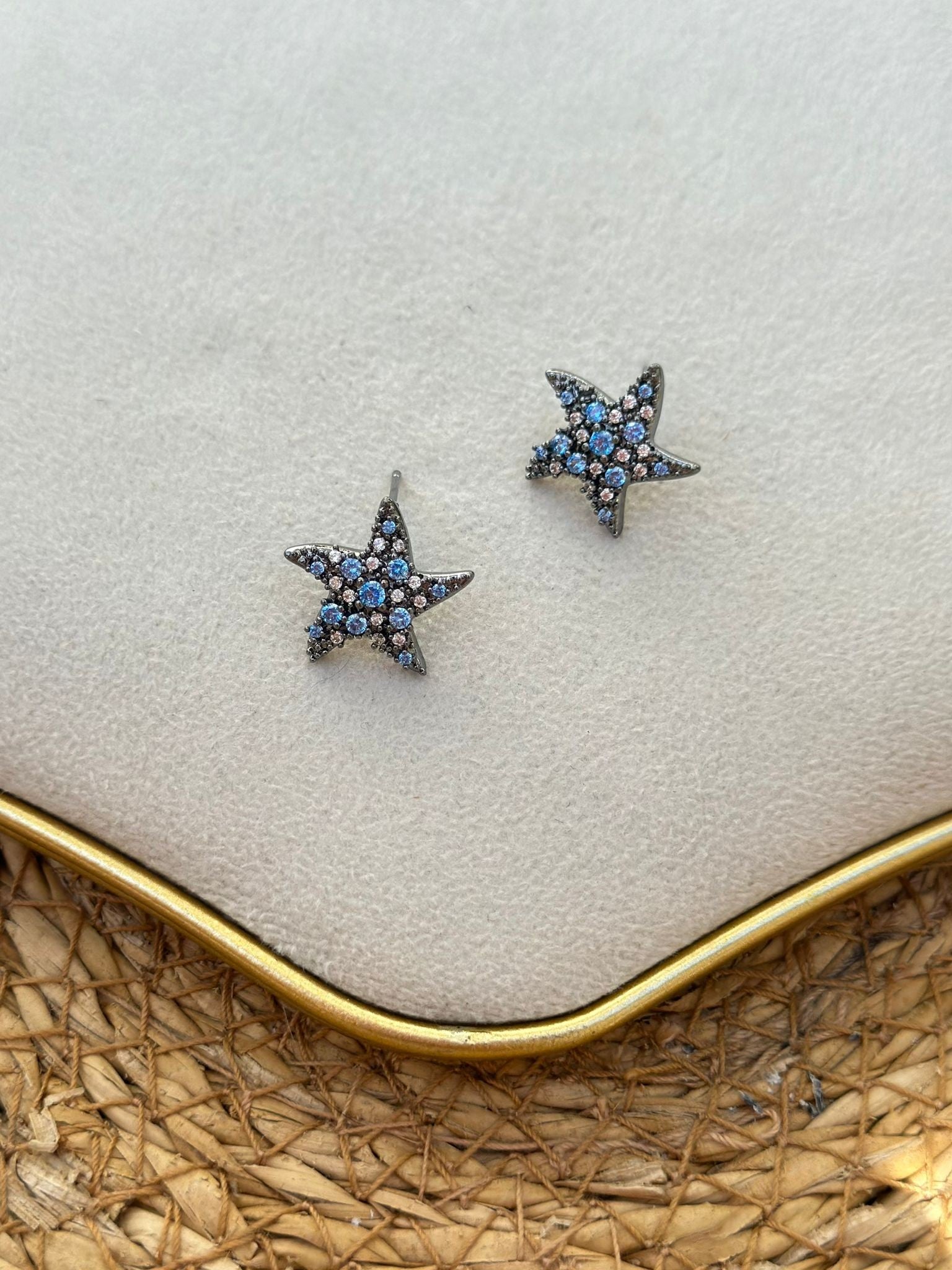 Mavi Zirkon Taş Detay Yıldız Küpe (Çelik)
