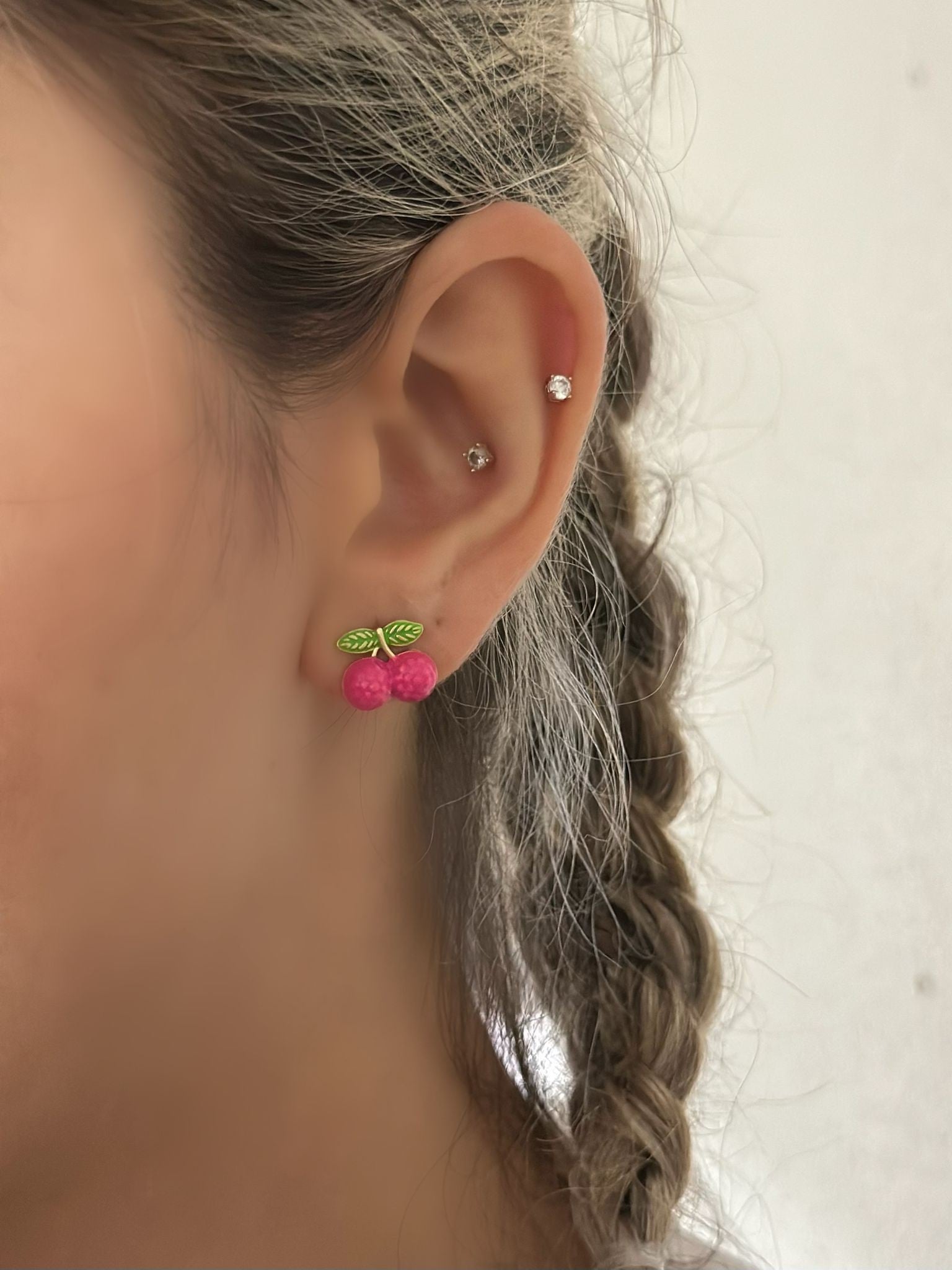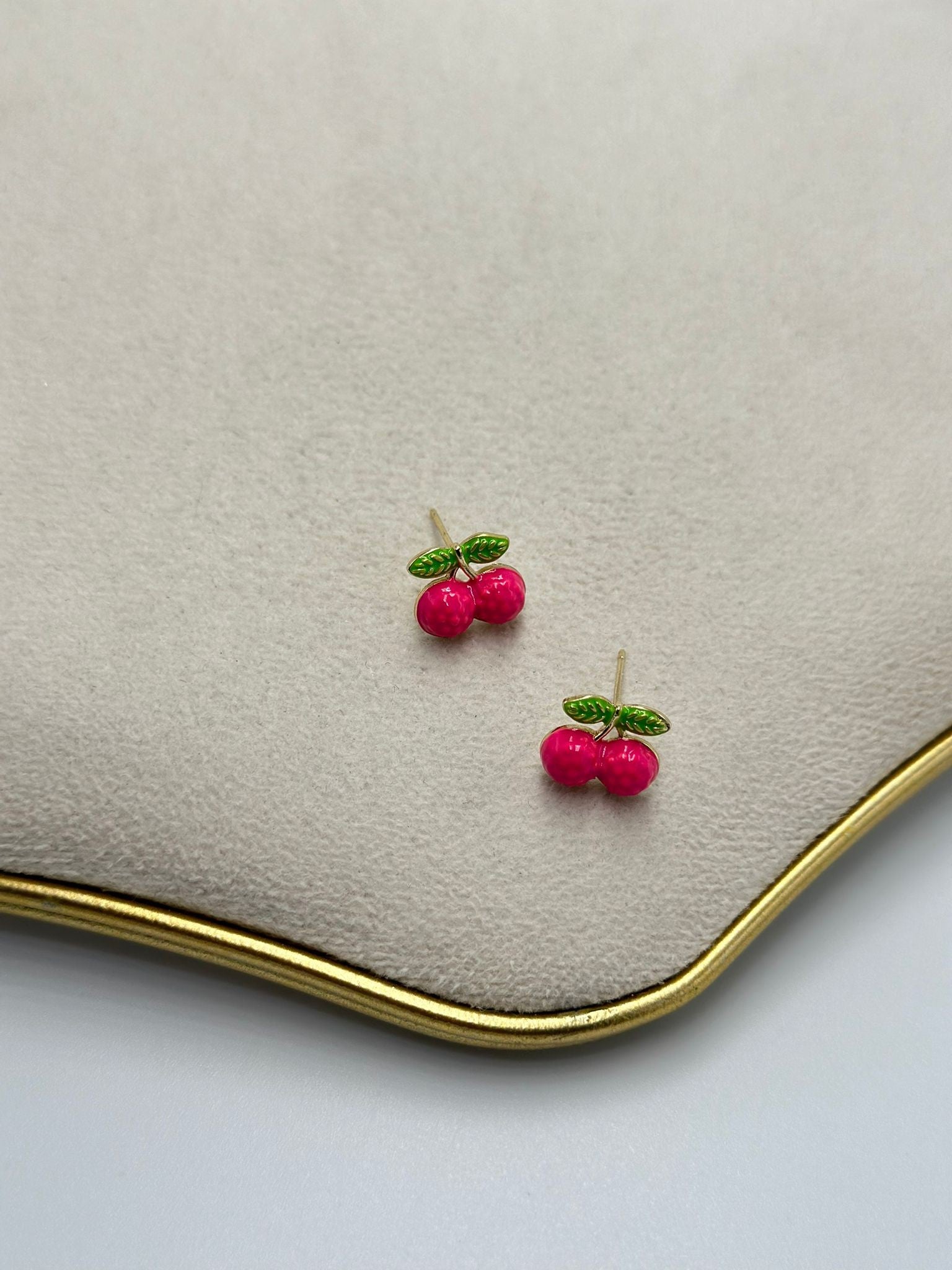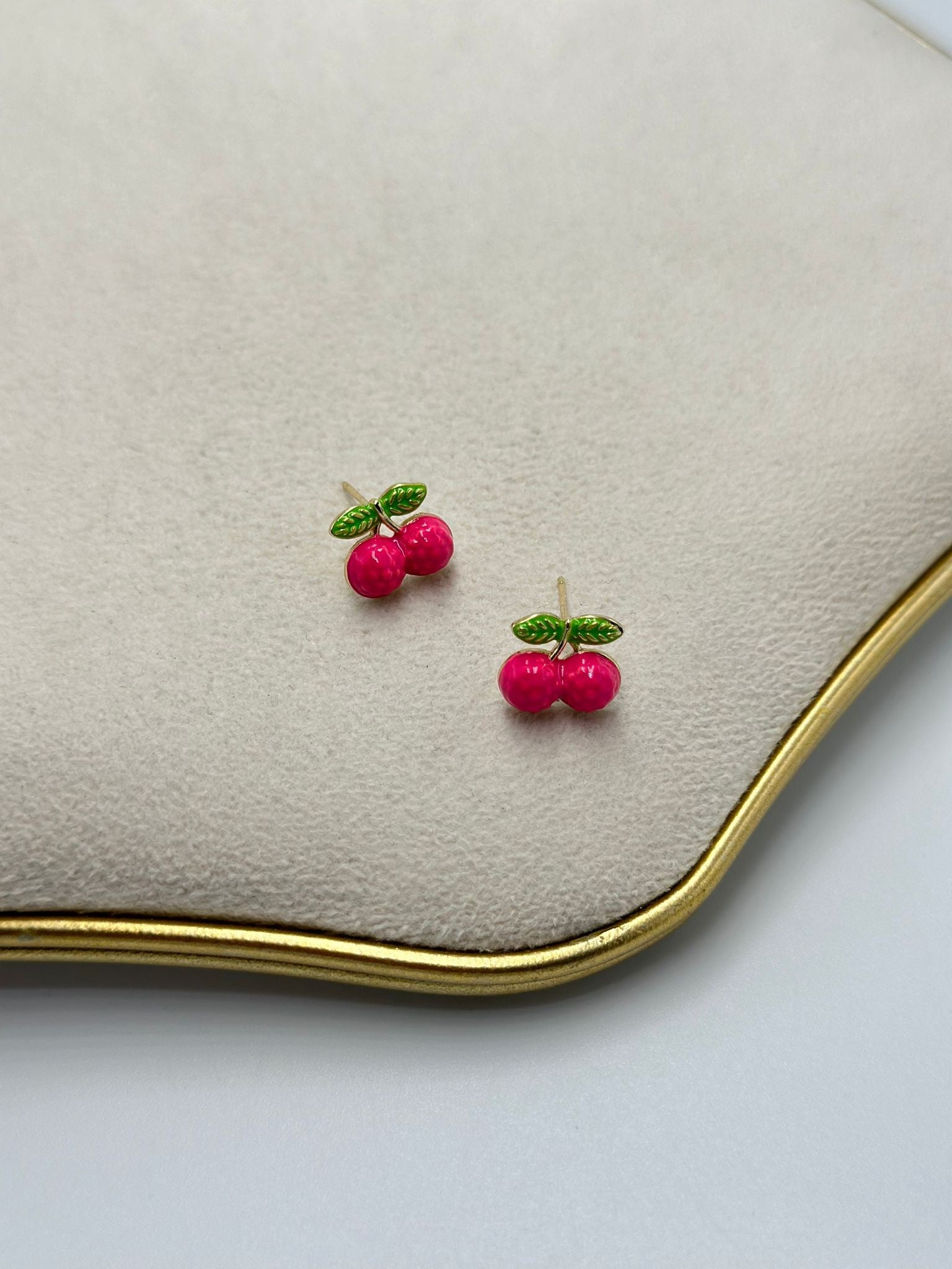 Minimal Renkli Pirinç Kaplama Kiraz Küpe