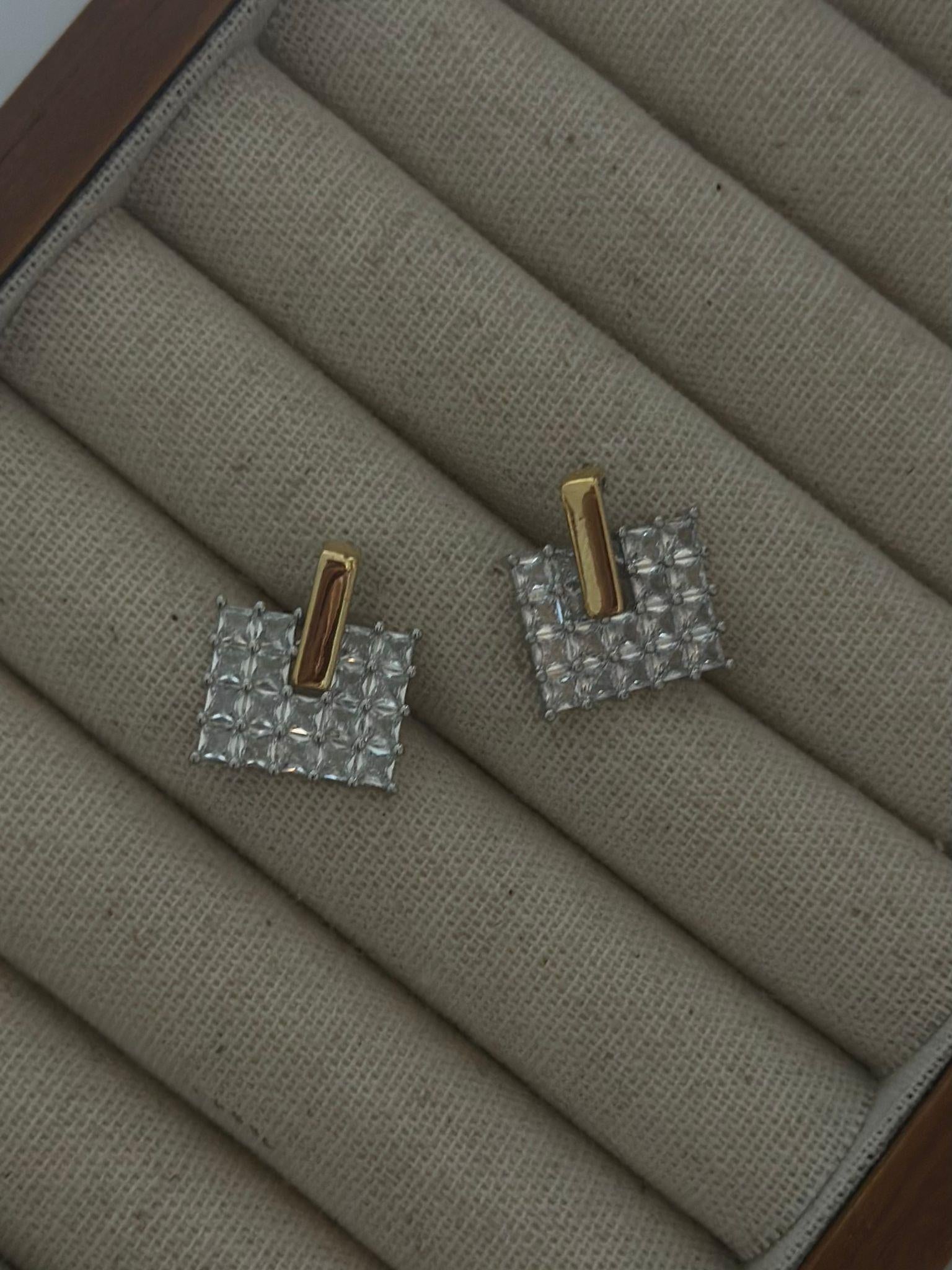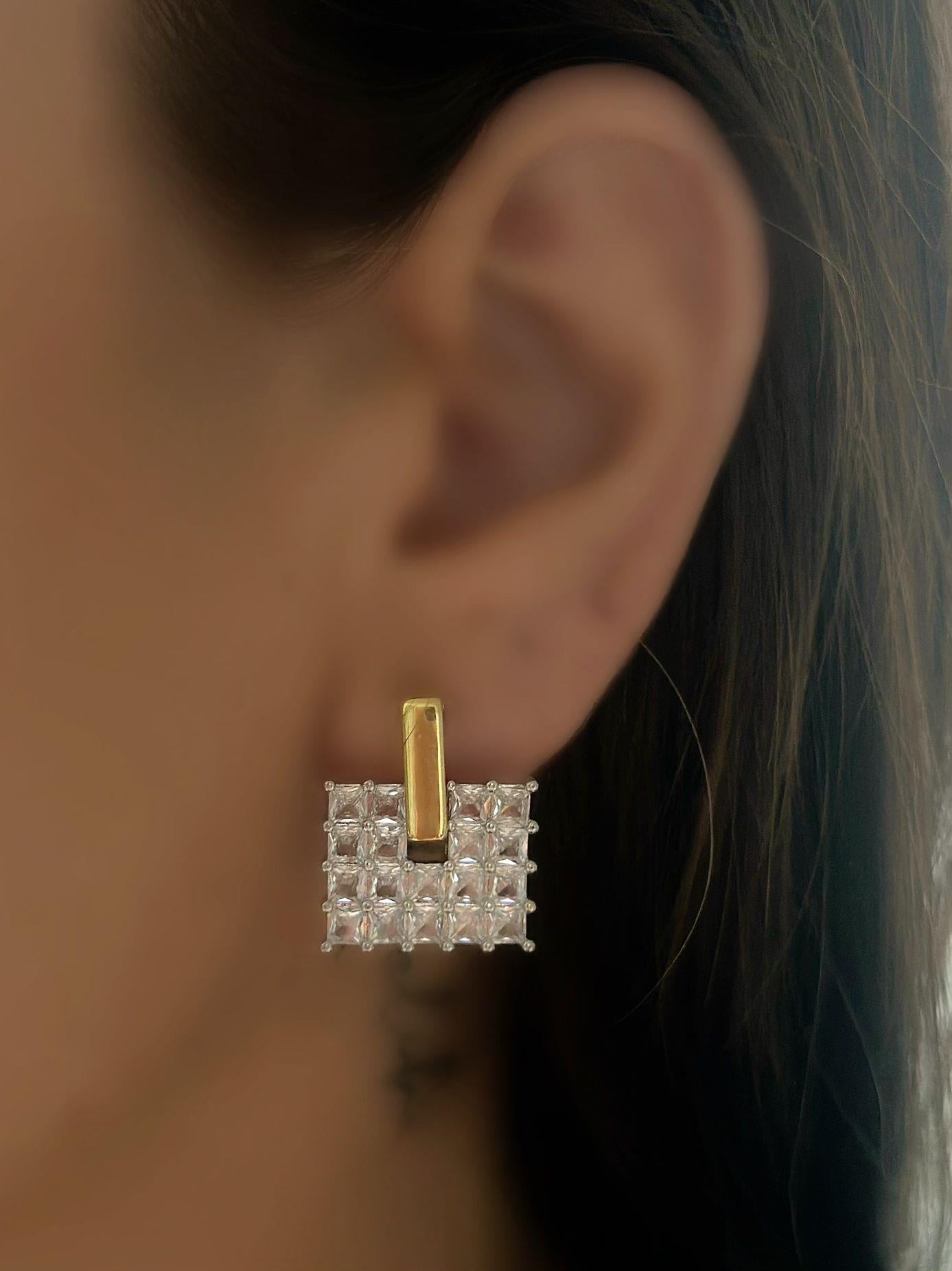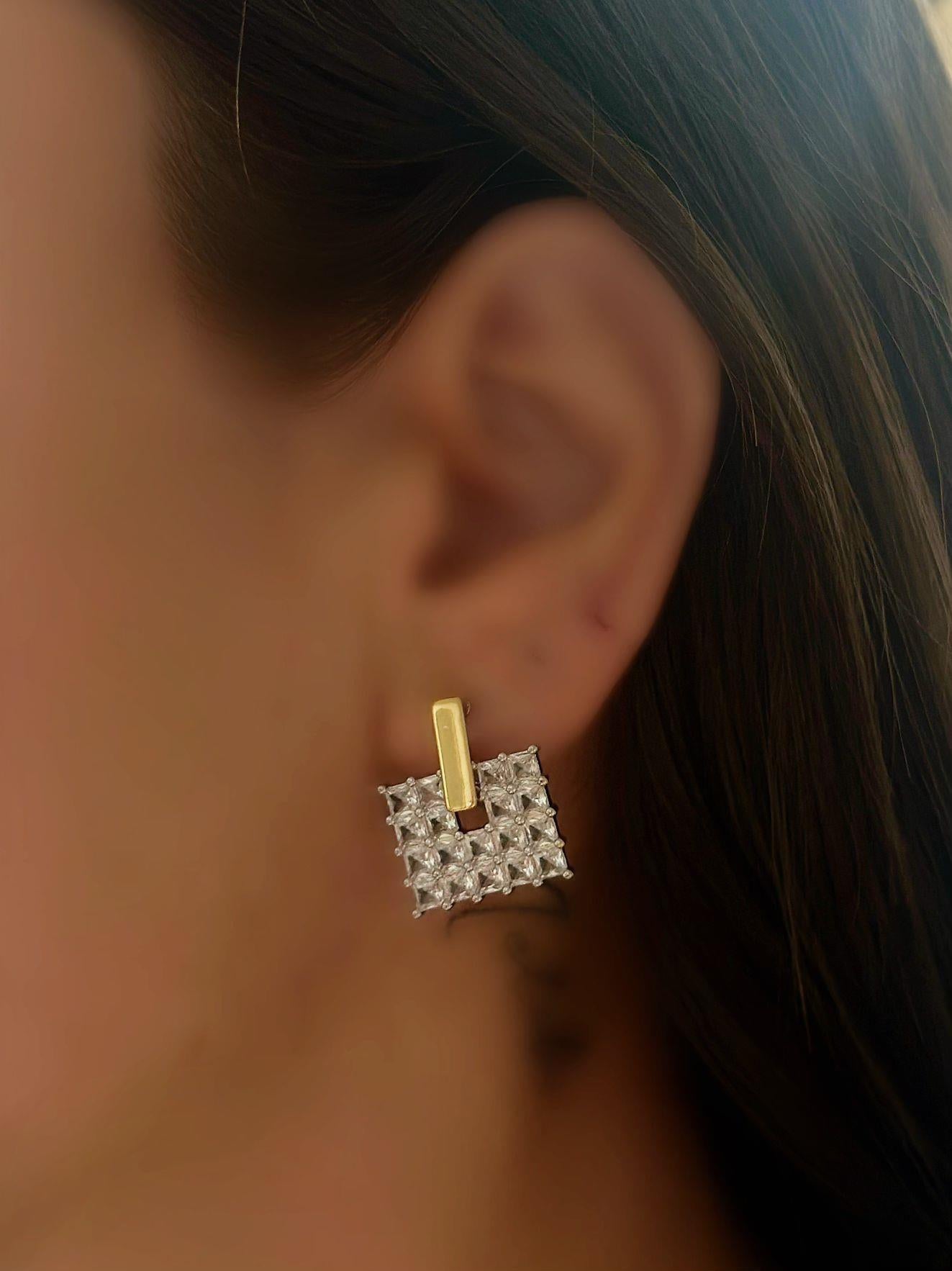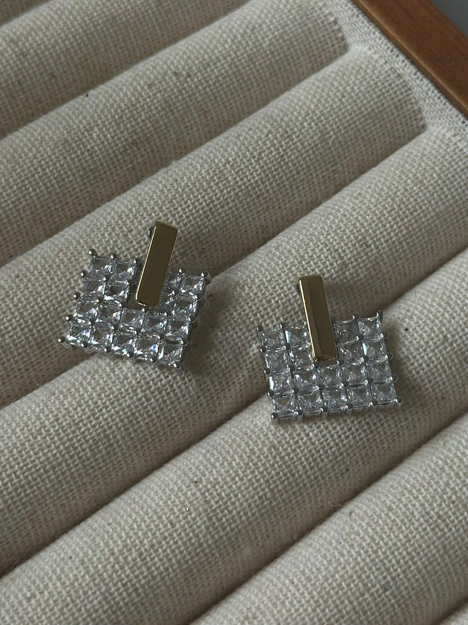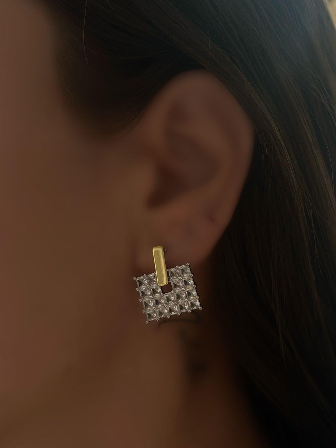 Özel Seri İki Renkli Kare Kesim Full Taş Küpe