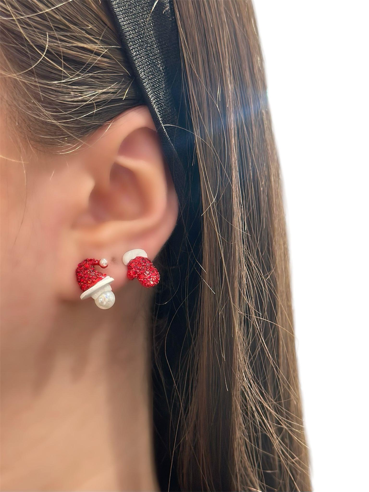 Özel Seri İnci Detaylı Şapka ve Eldiven Figürlü Mininal Pirinç Küpe