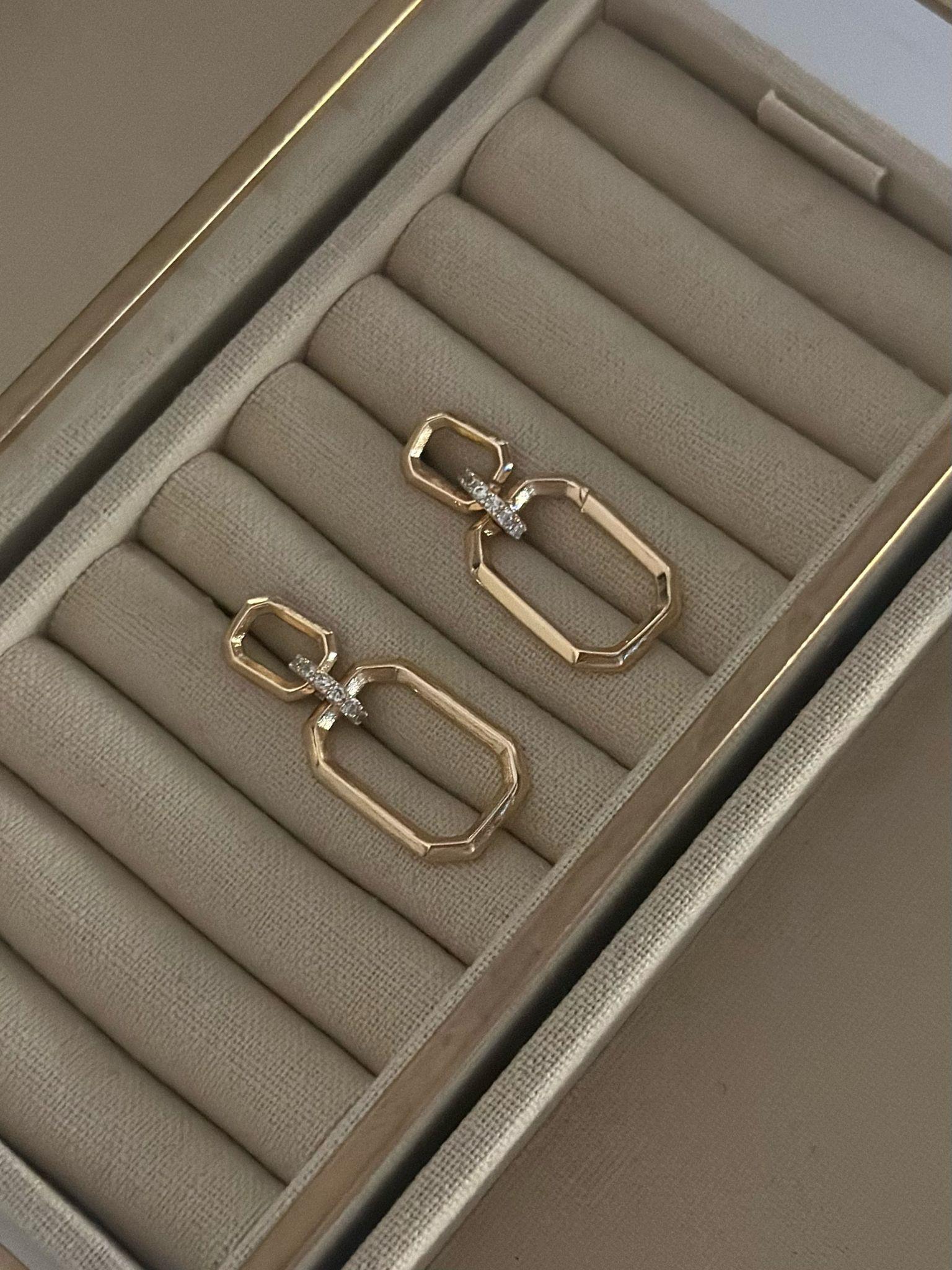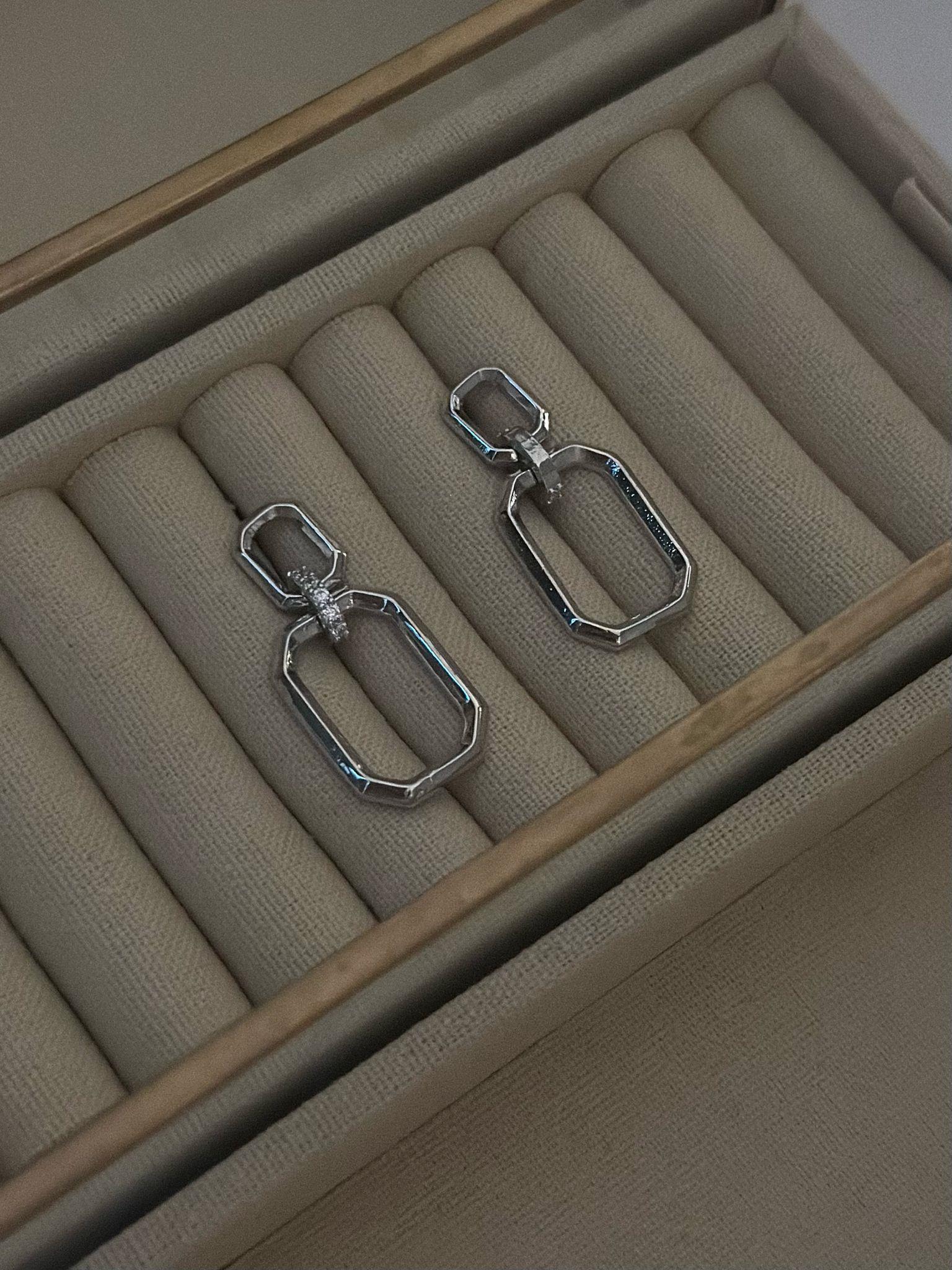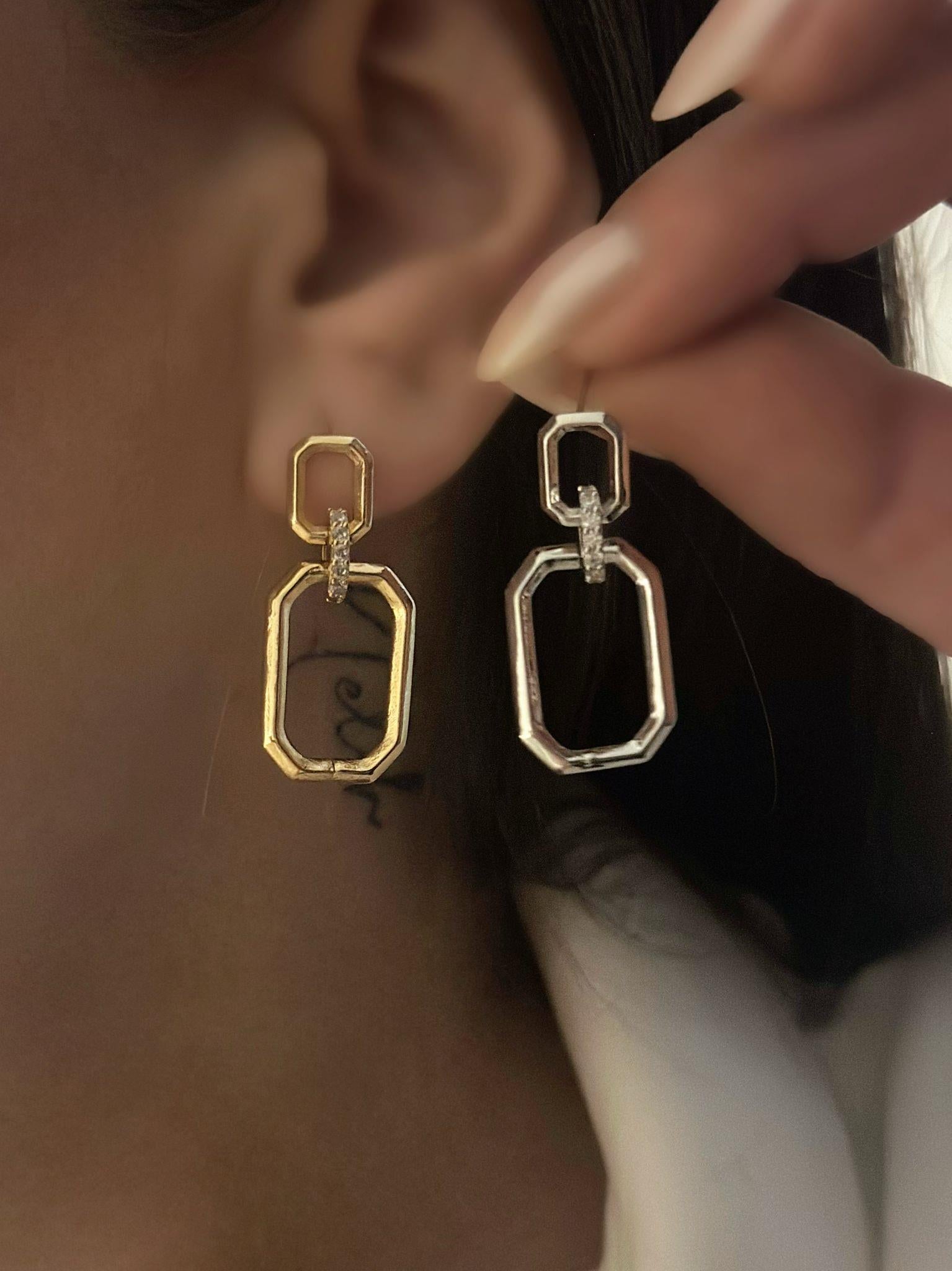 Özel Seri Zirkon Taş Detay İkili Kare Sallantılı Küpe