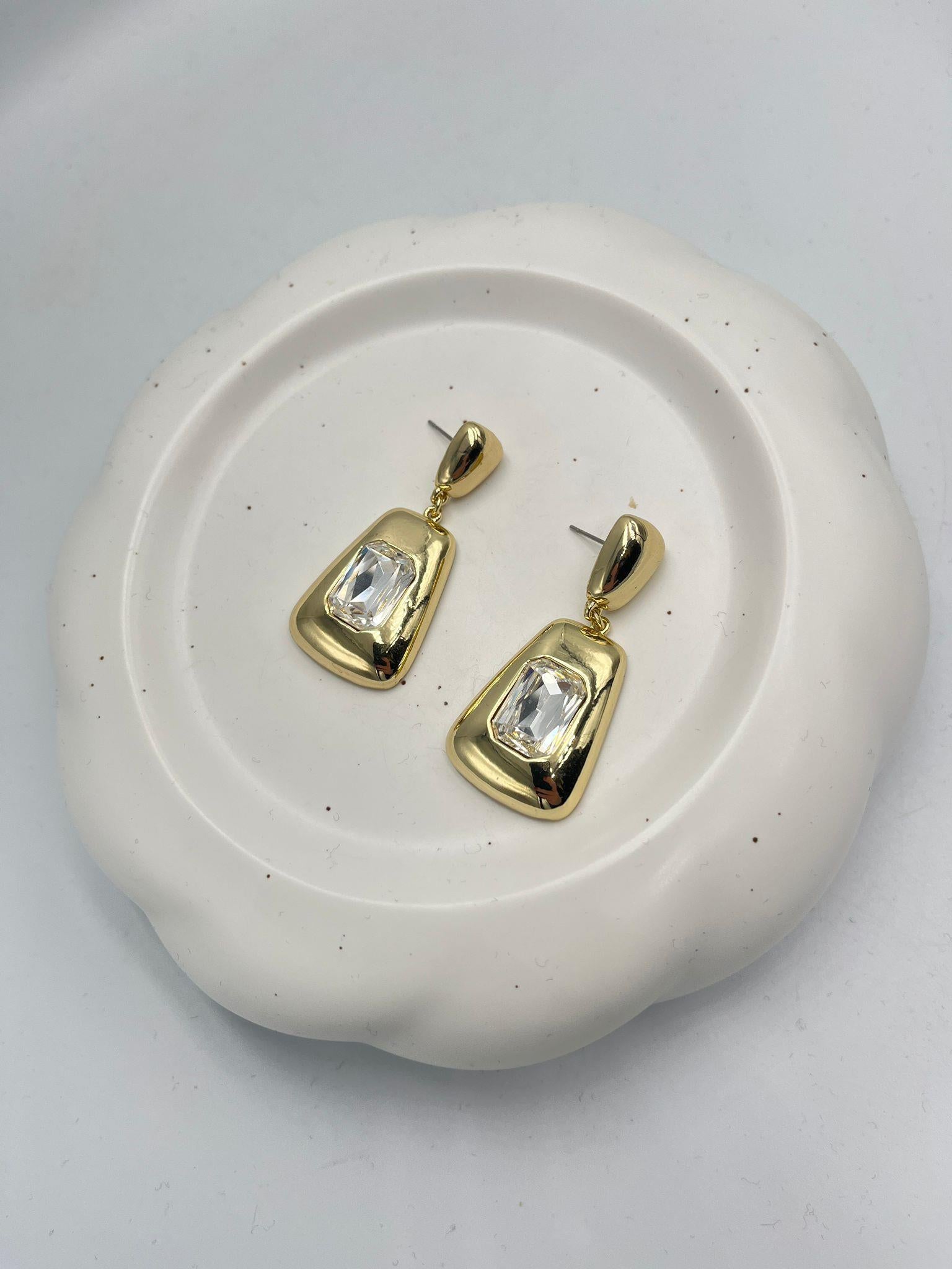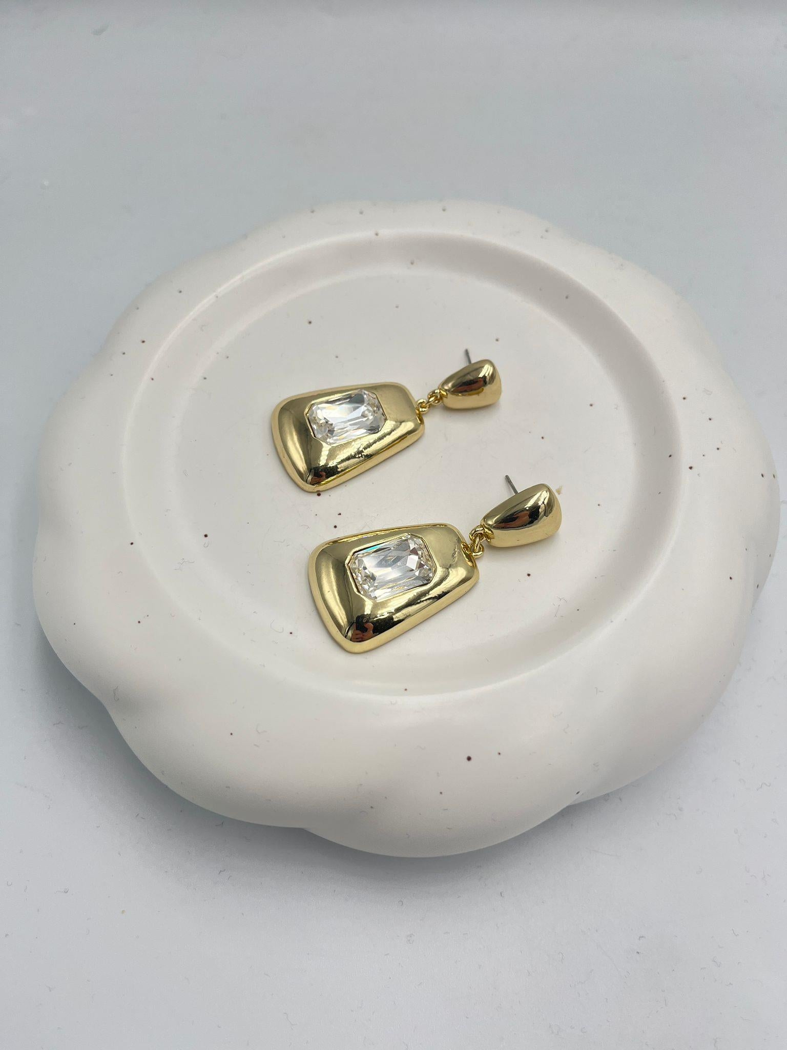 Özel Tasarım Altın Kaplama ve Naturel Taş Detaylı Sallantılı Küpe