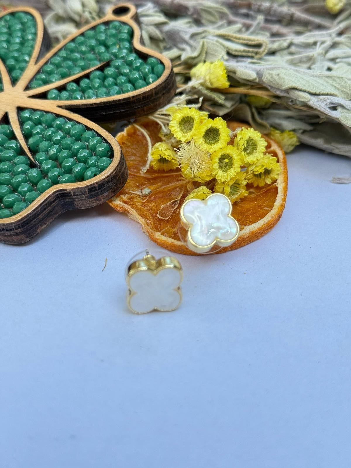 Premium Serisi Minimal Sedef Doğal Taş Detaylı Küpe