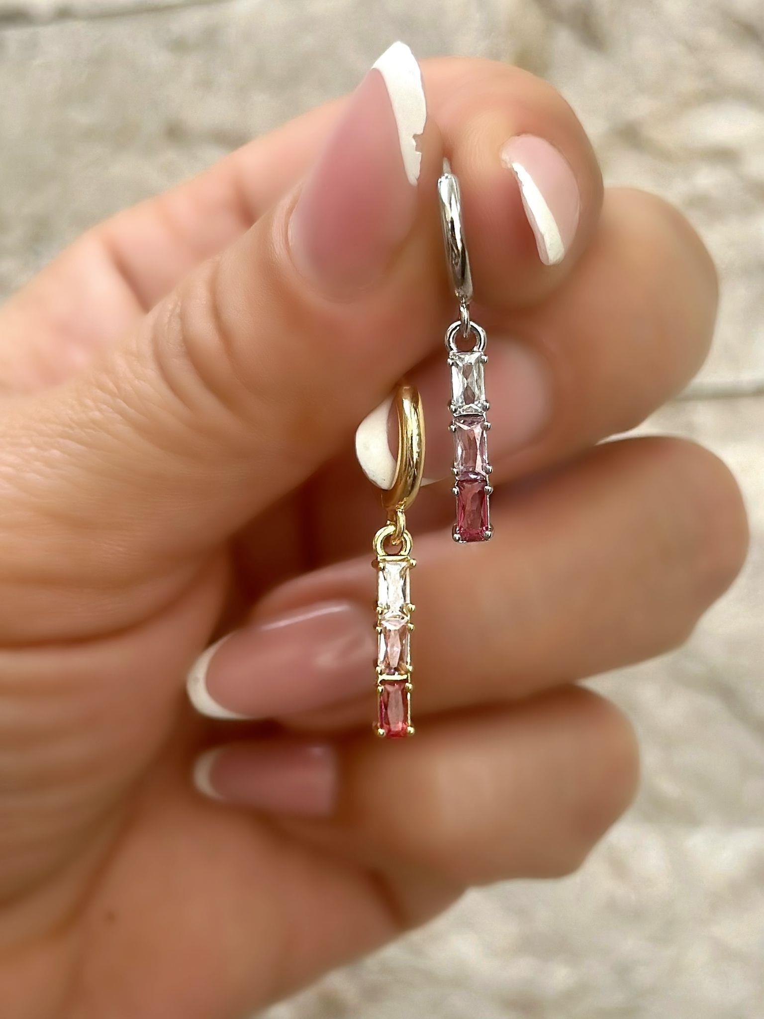 Renkli Baget Taş Detay Sallantılı Küpe (Pirinç Kaplama)
