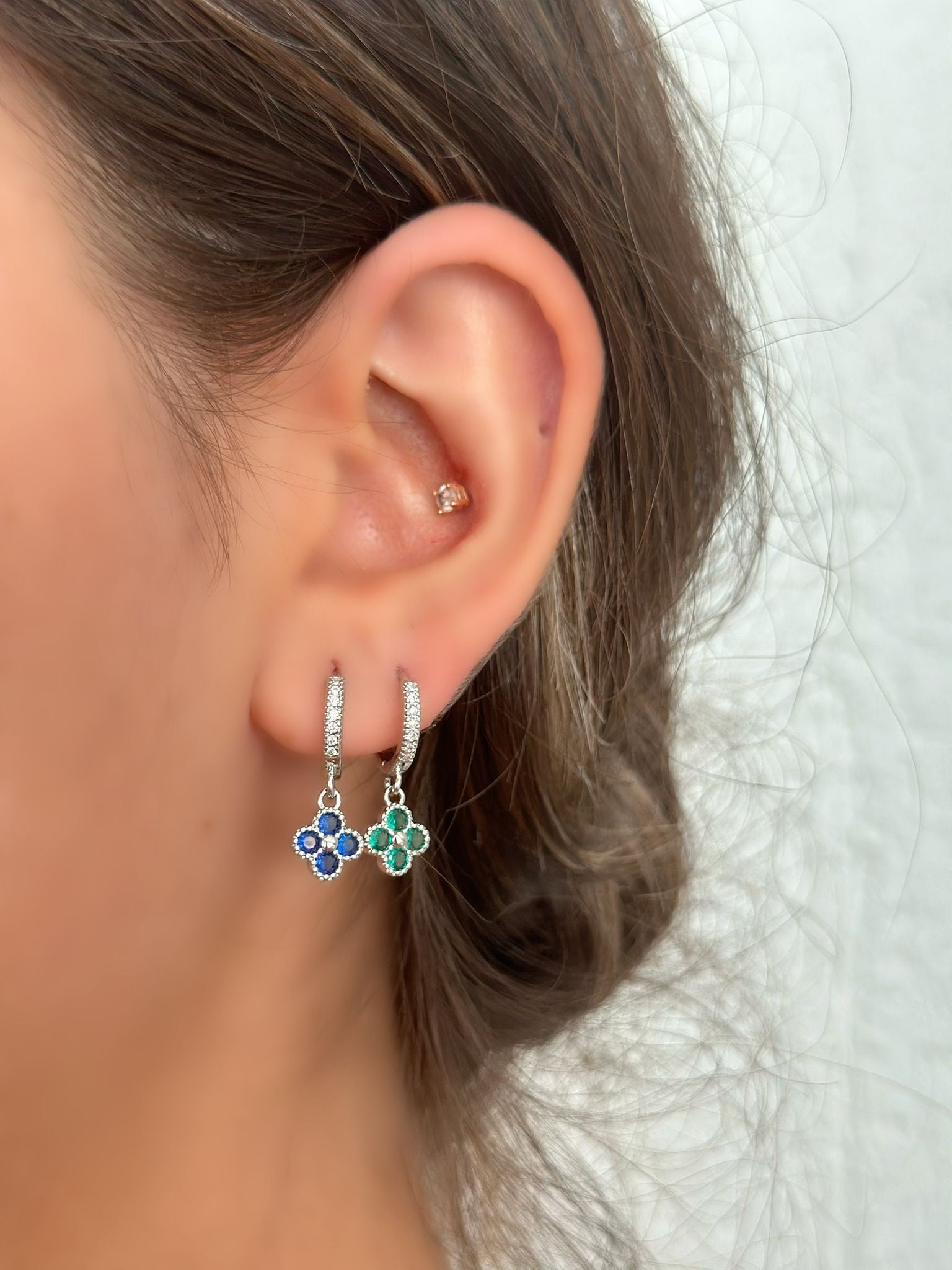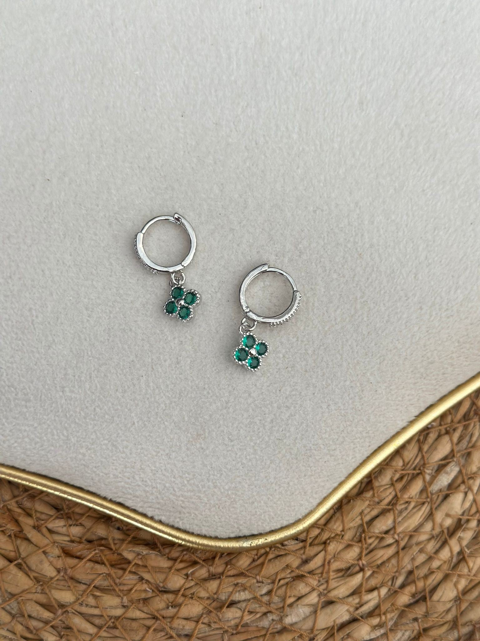 Renkli Baget Taş Detay Sallantılı Yonca Küpe
