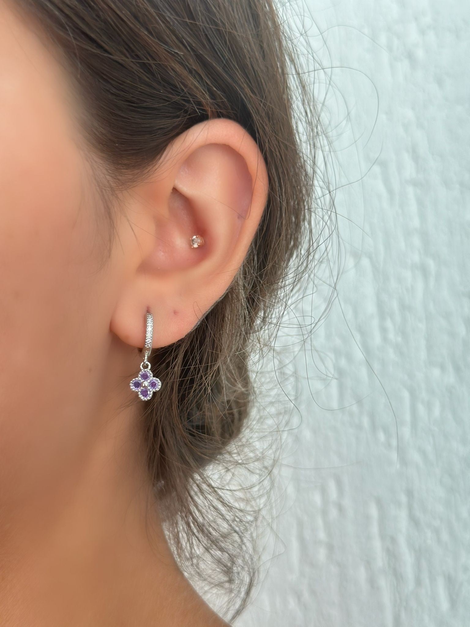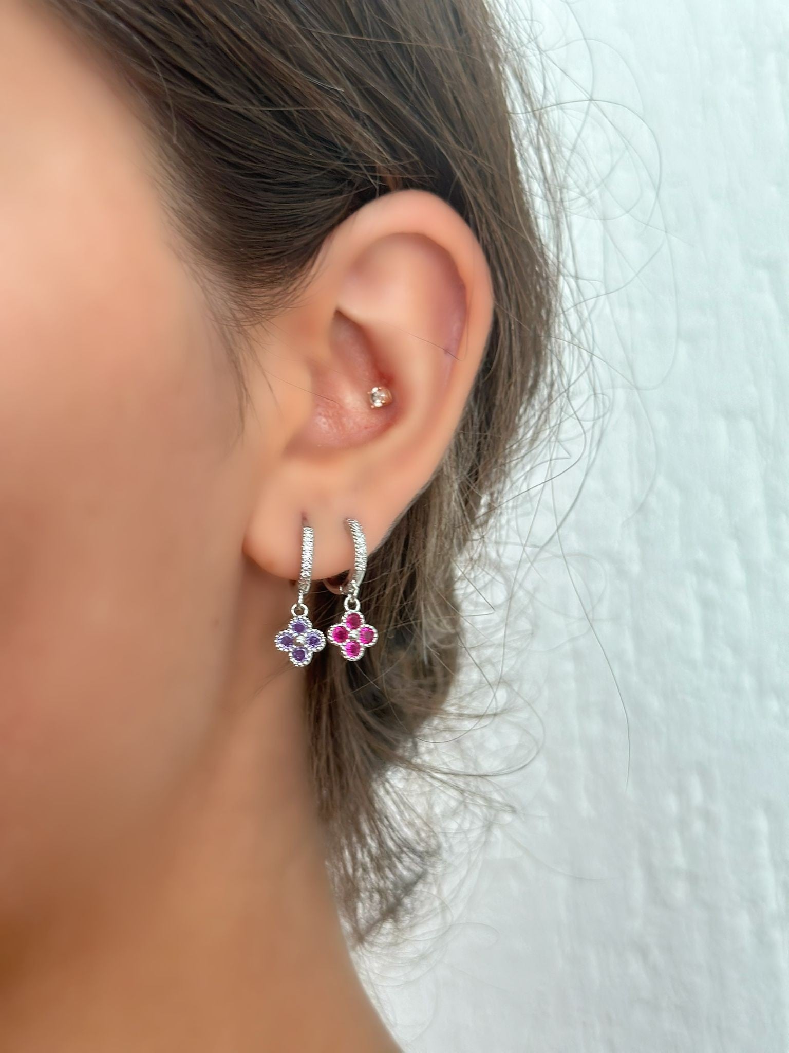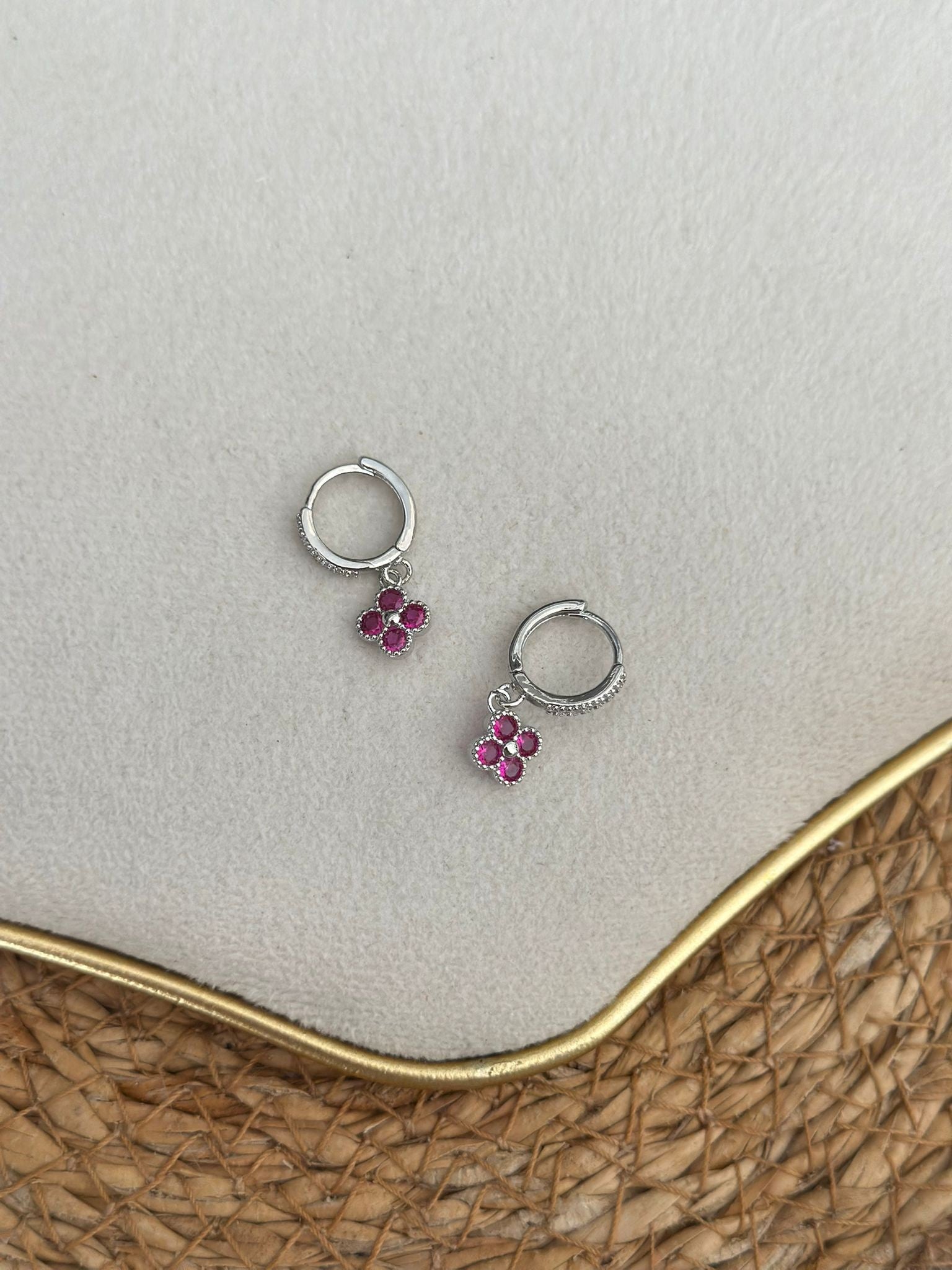 Renkli Baget Taş Detay Sallantılı Yonca Küpe