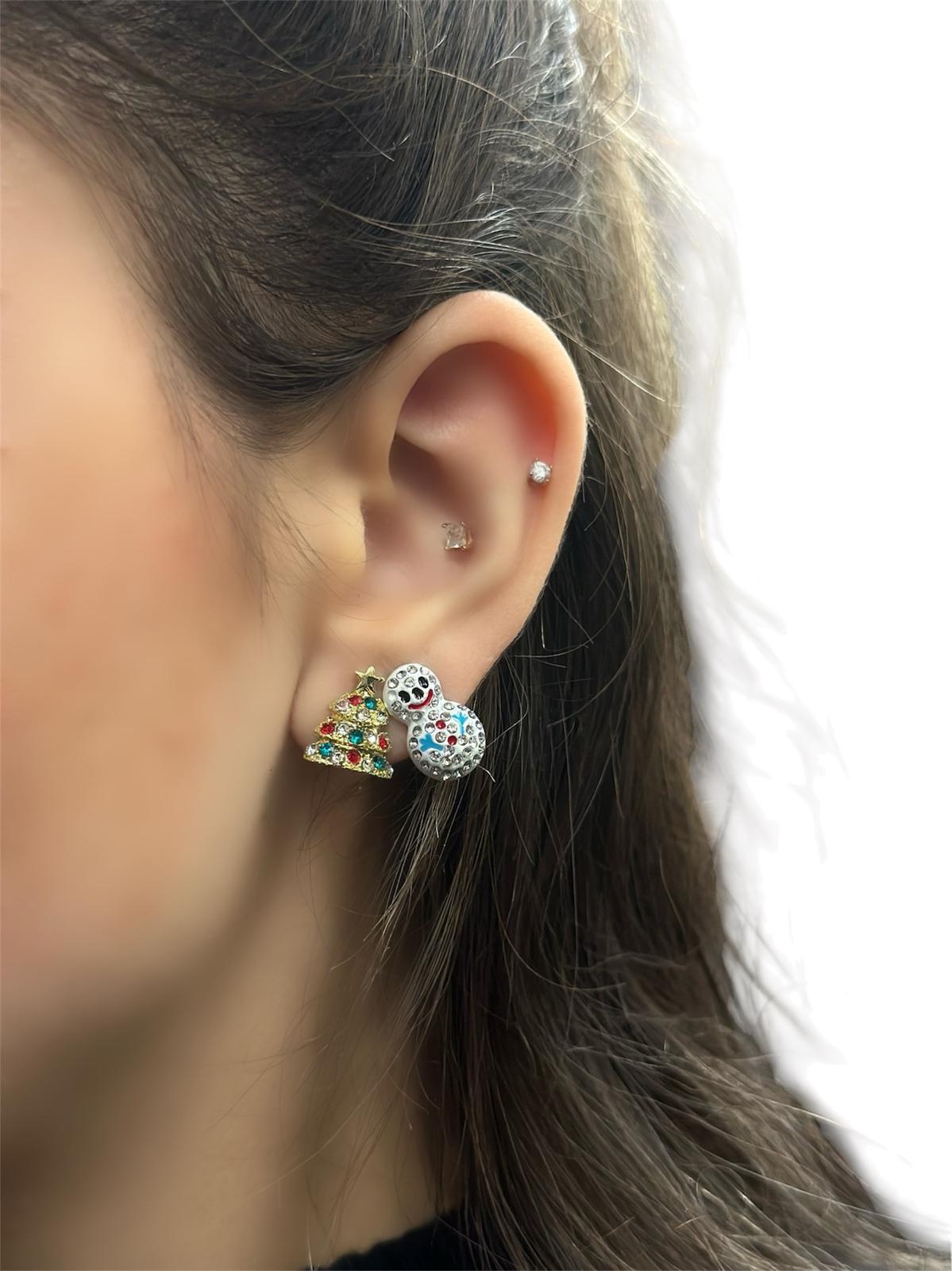 Renkli Taş Ve Kardan Adam Detay Küpe