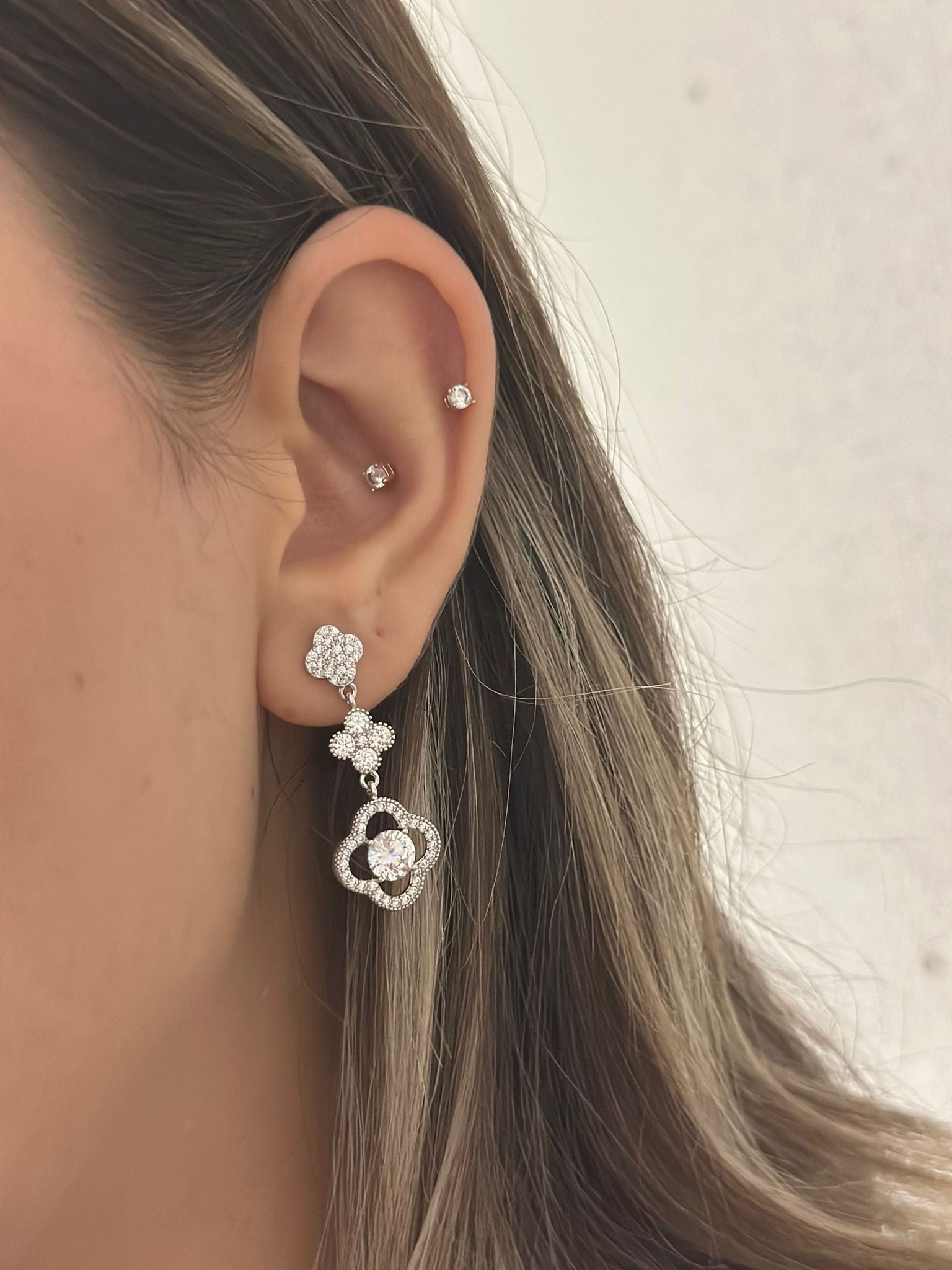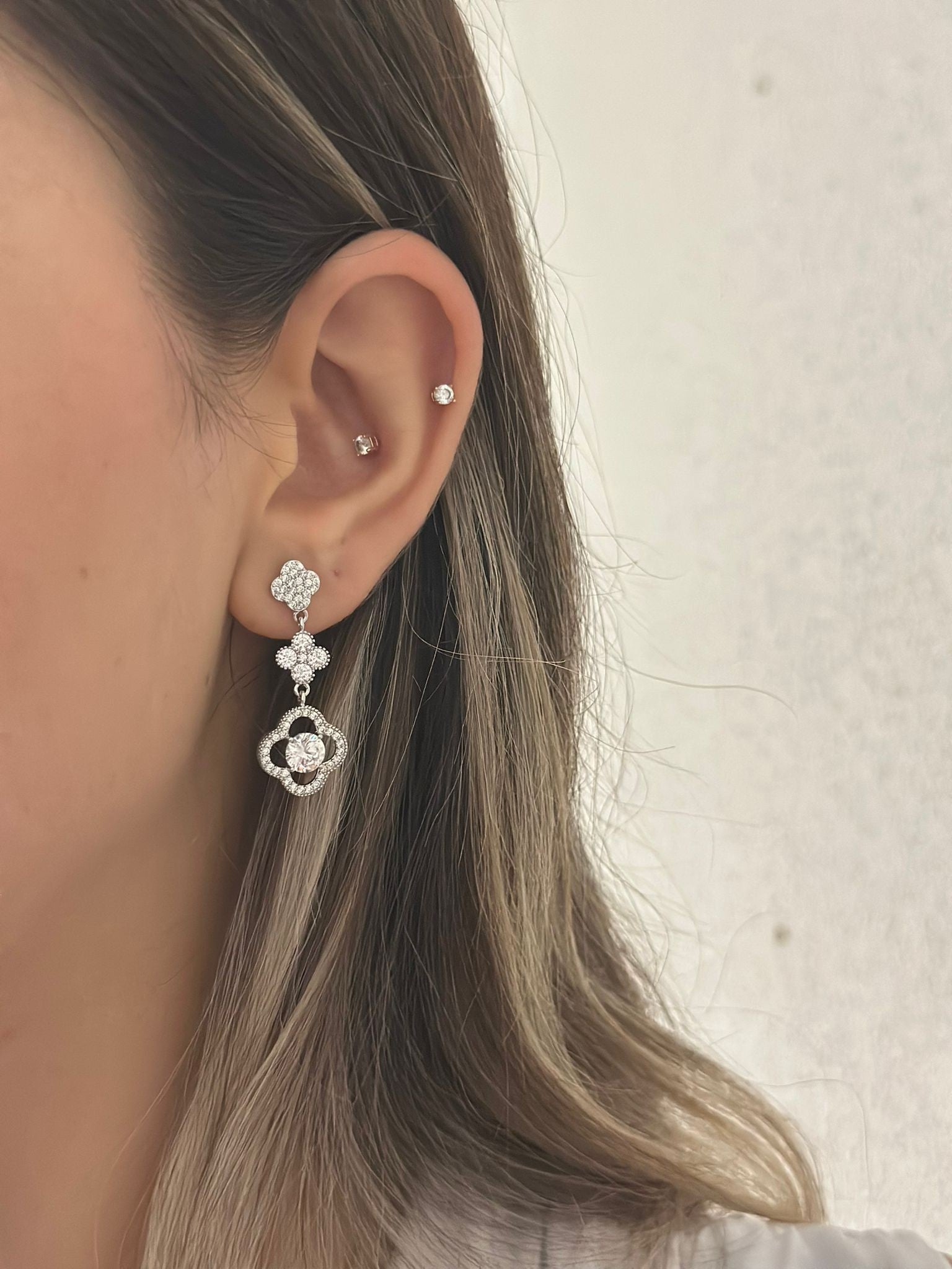 Sallantılı Büyüklü Küçüklü Yonca Küpe (Çelik)
