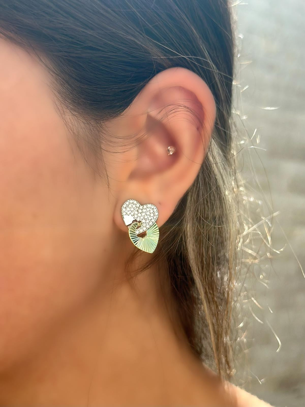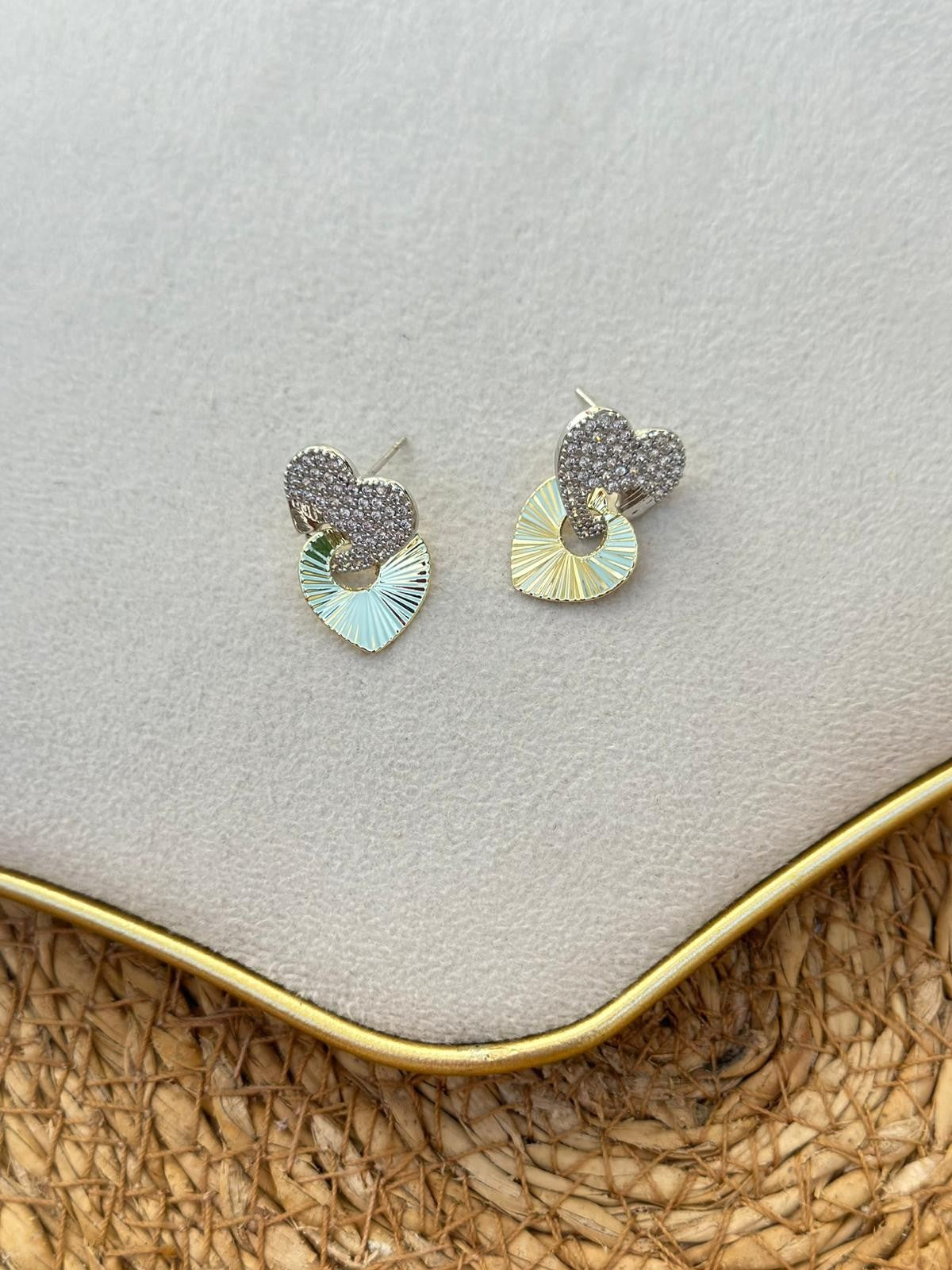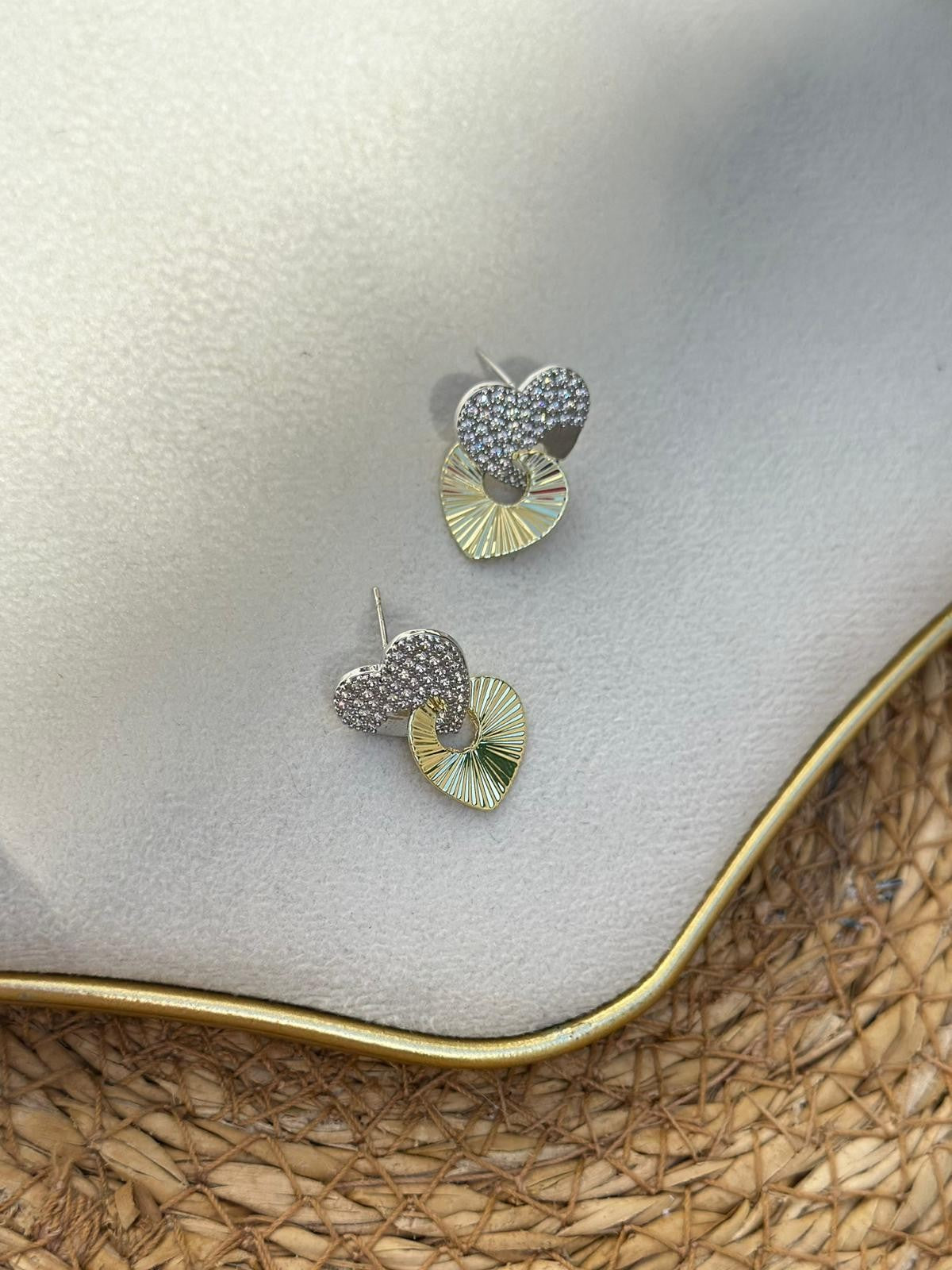 Sallantılı Çizgi Plaka Detay İkili Kalp Küpe (Çelik)