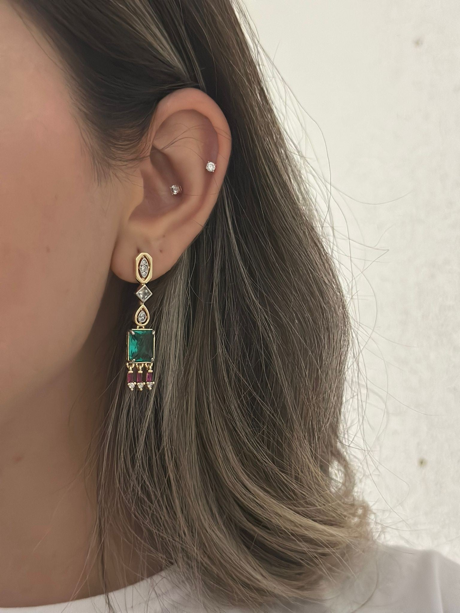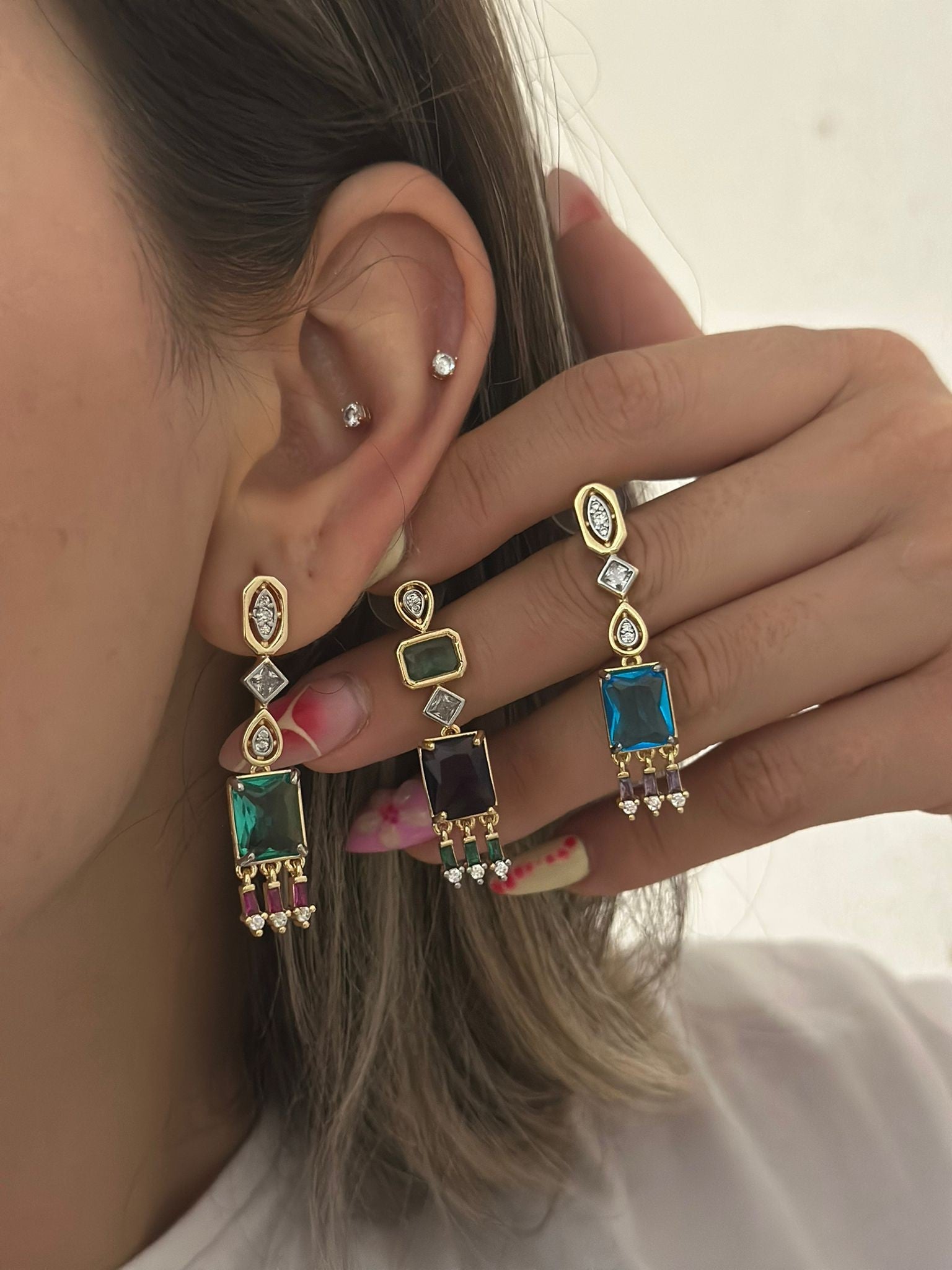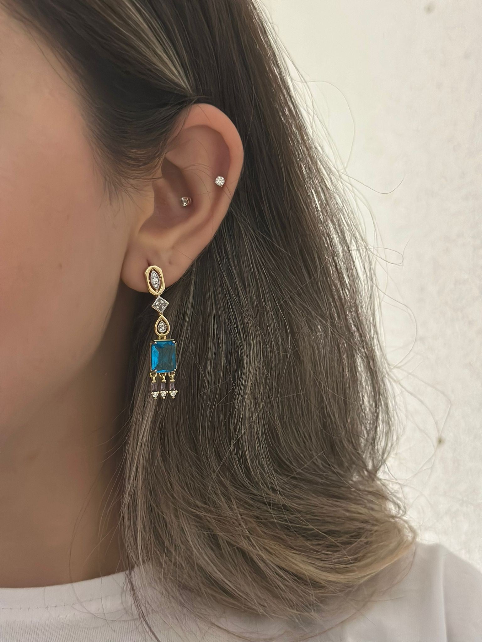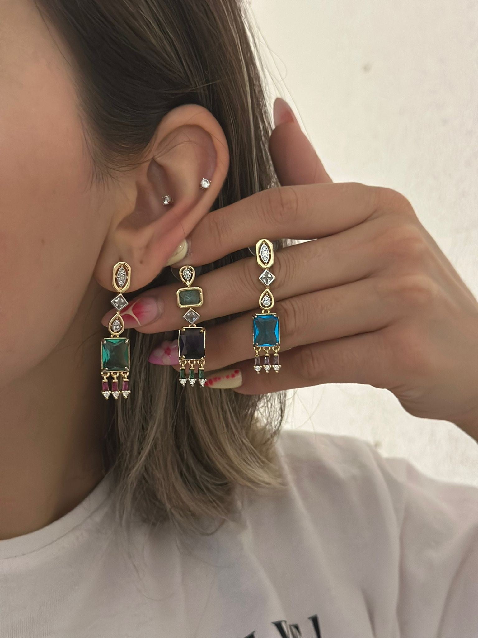 Sallantılı Renkli Baget Taş Detay Çelik Küpe