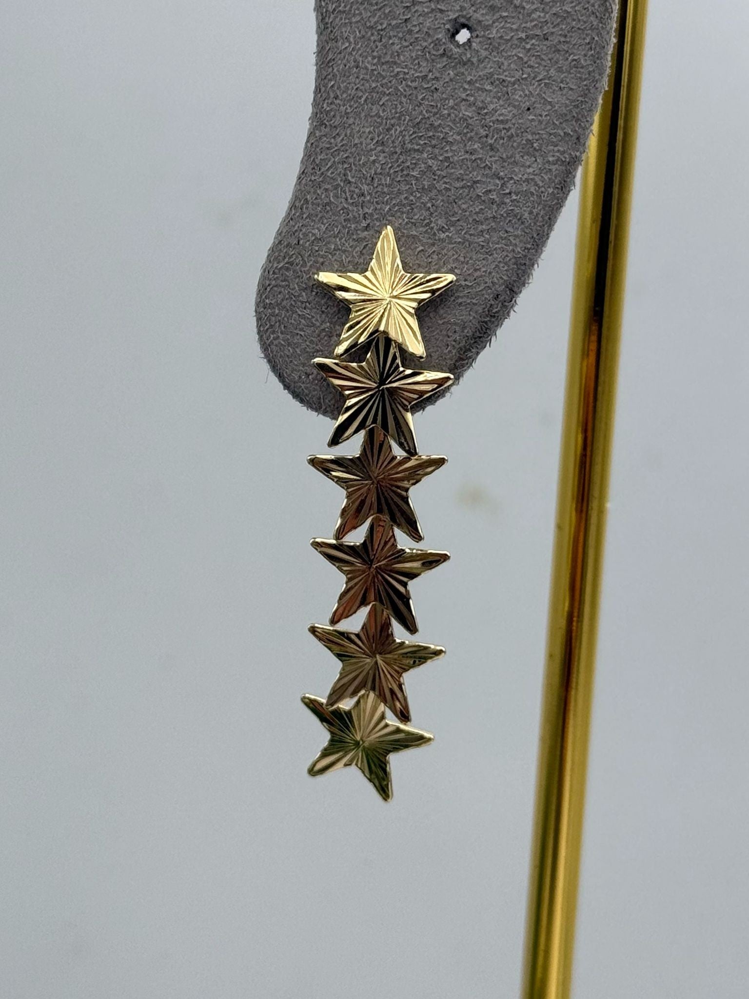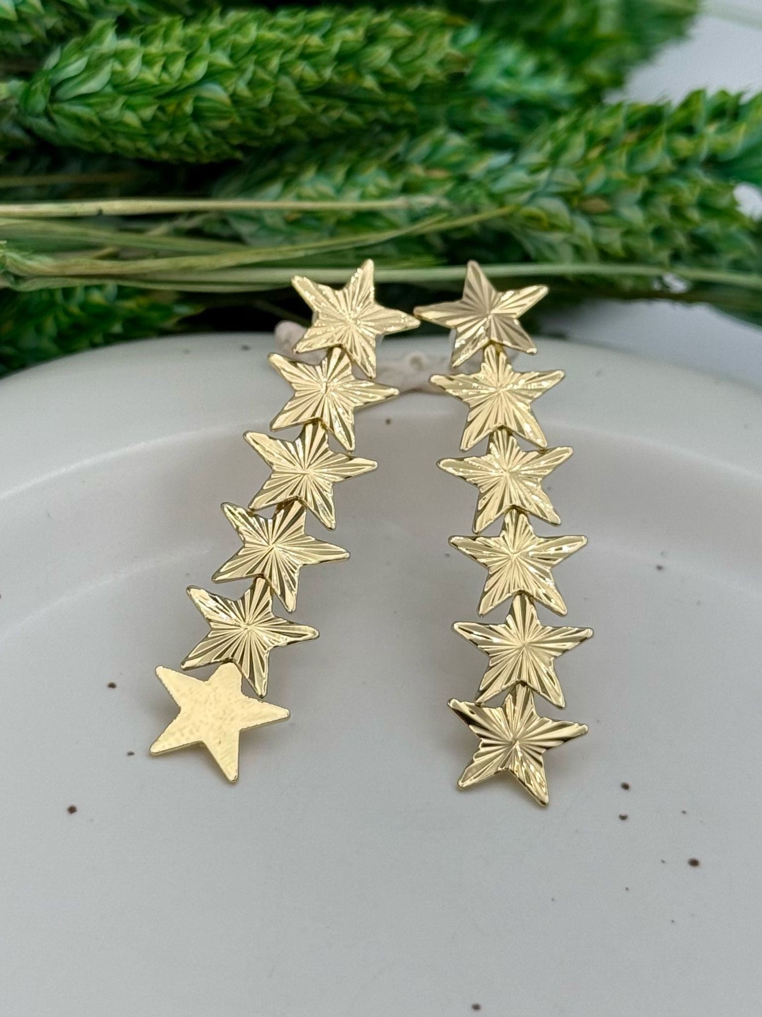 Sallantılı Sıralı Yıldız Tırtık Plaka Premium Küpe