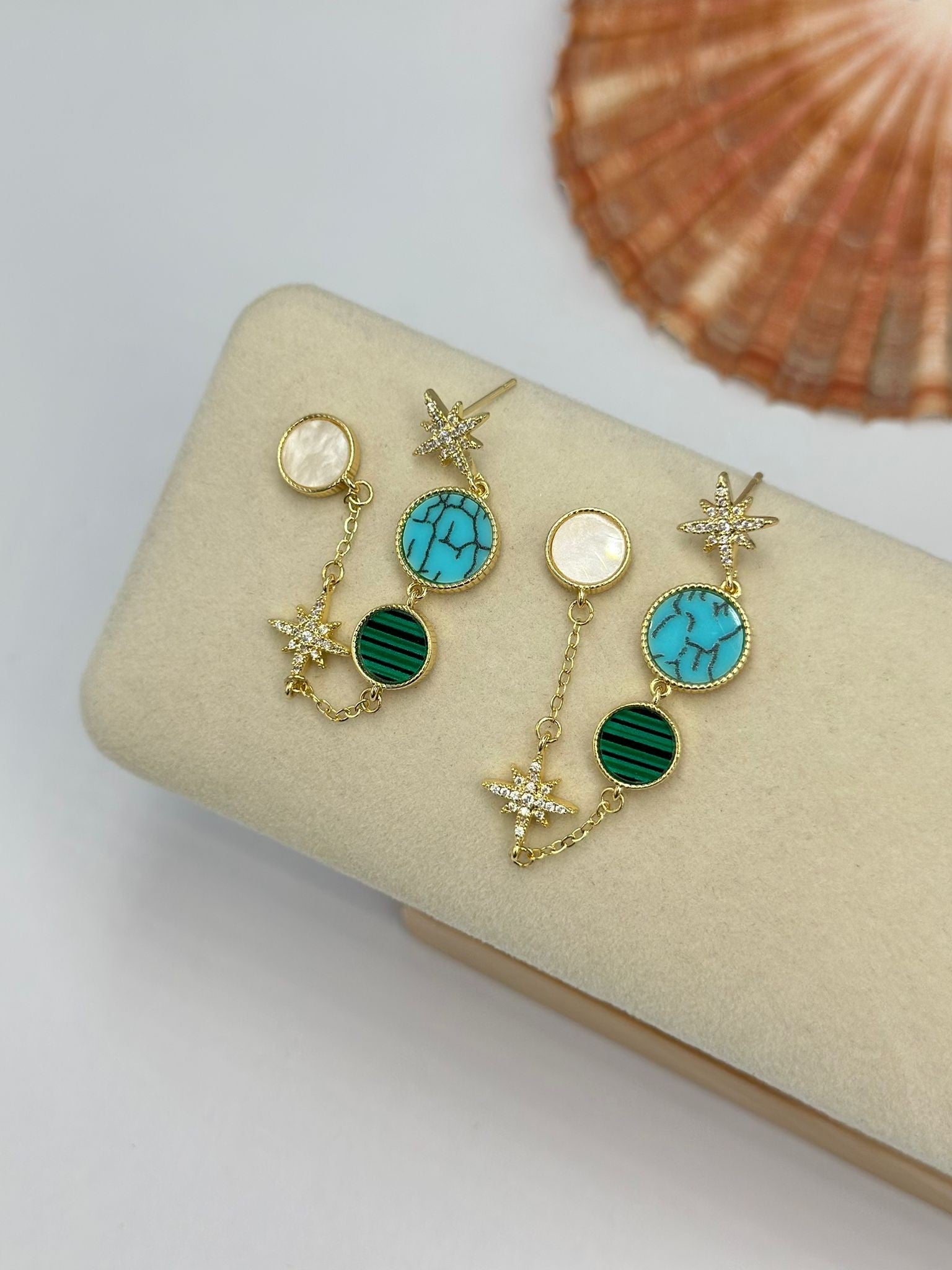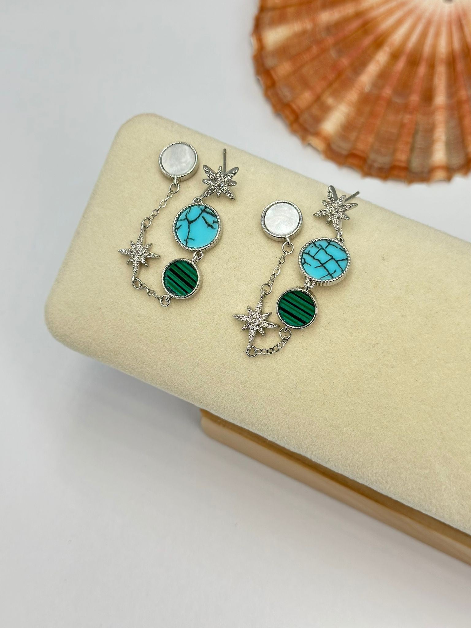 Sedef Taş Detay Sallantılı Kutup Yıldızı Küpe (Çelik)