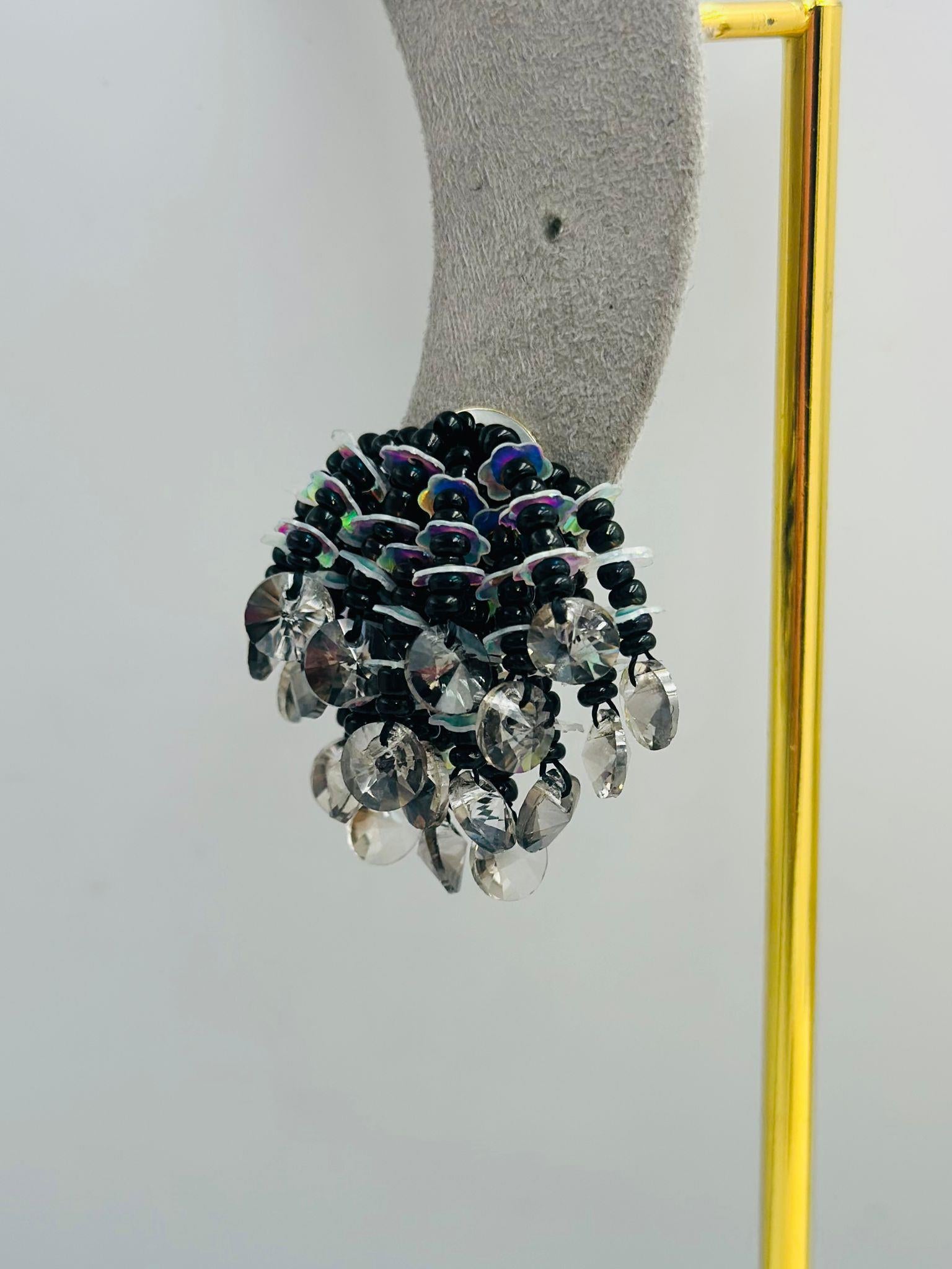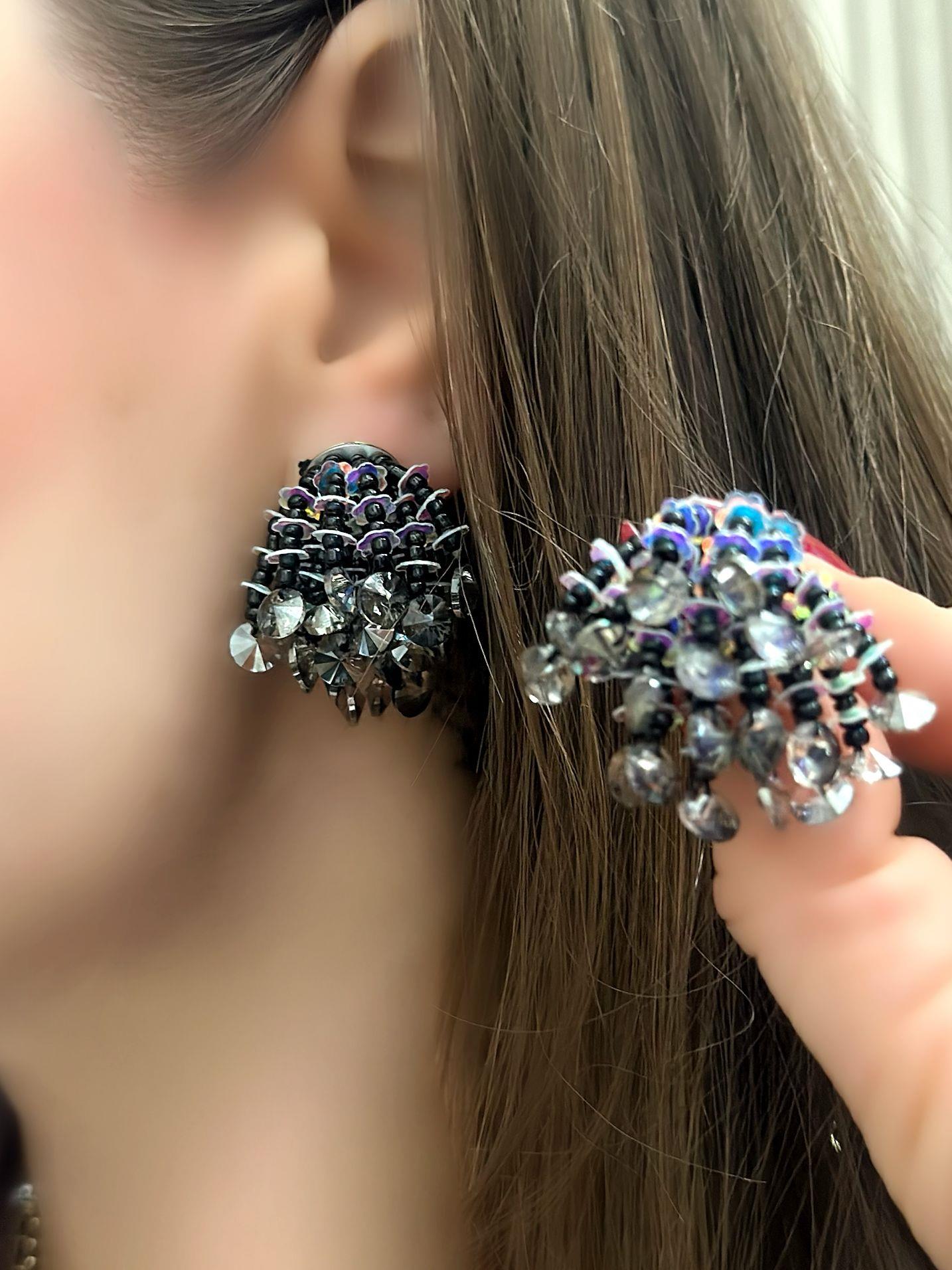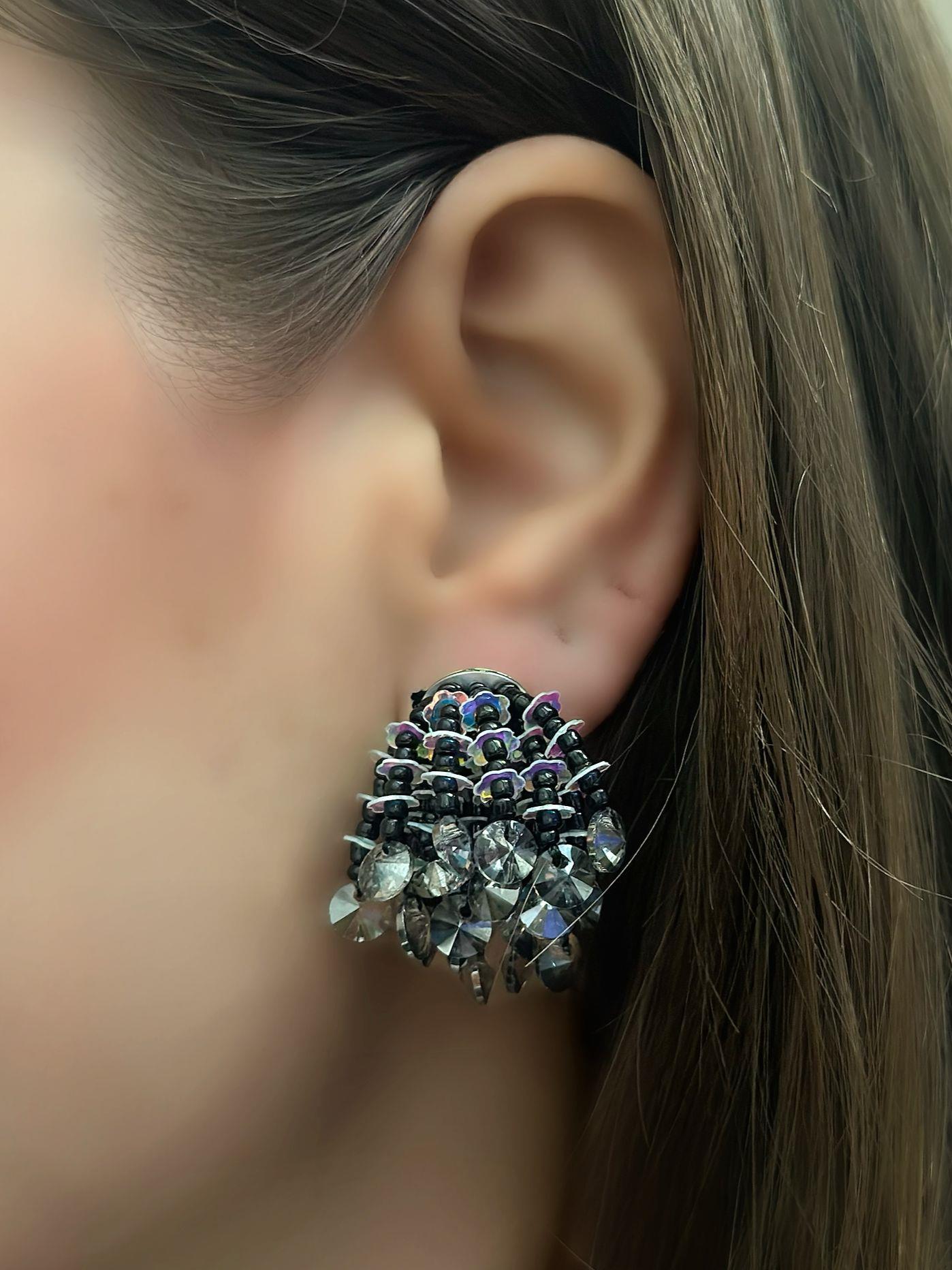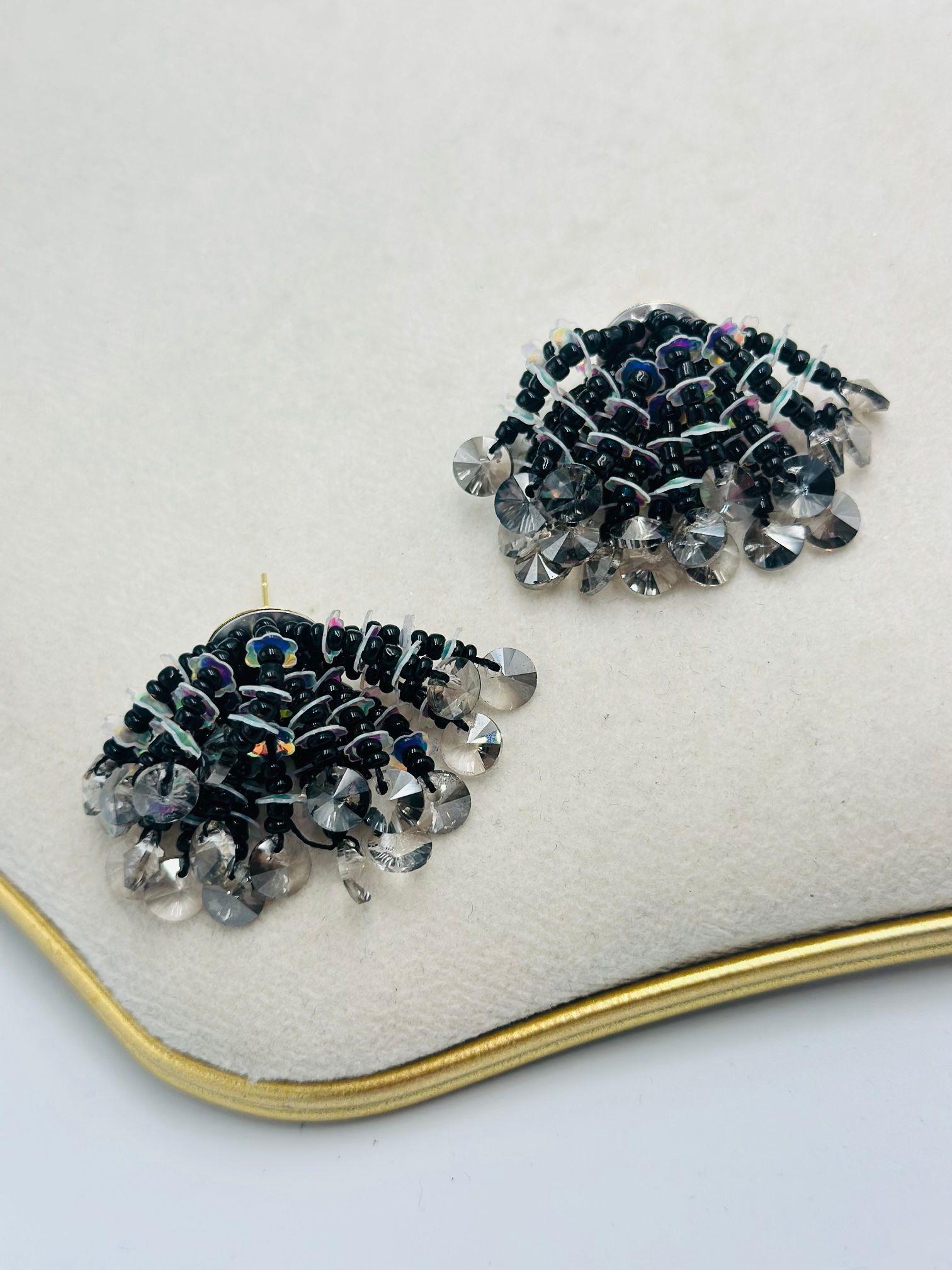Siyah Boncuk Detaylı Minimal Çiçek Küpe
