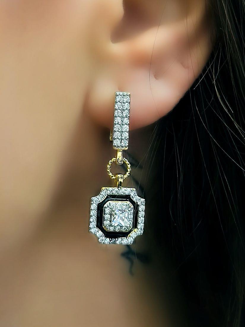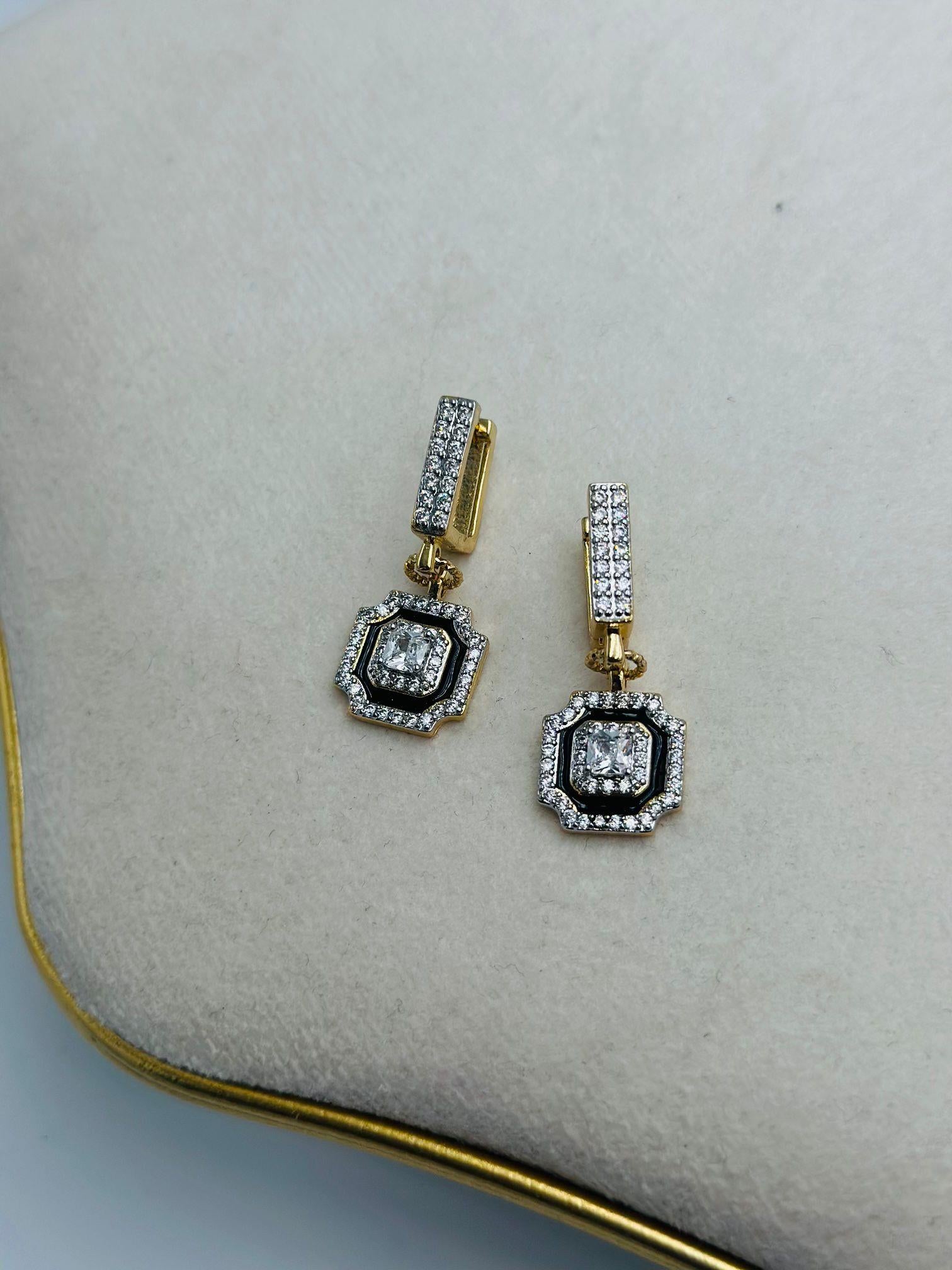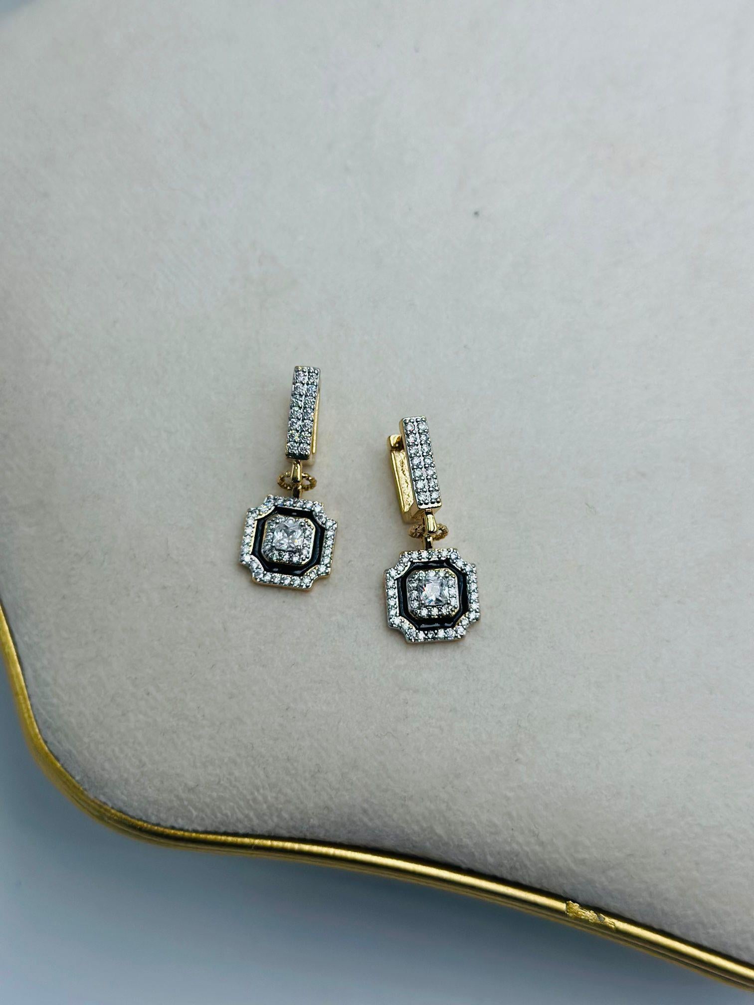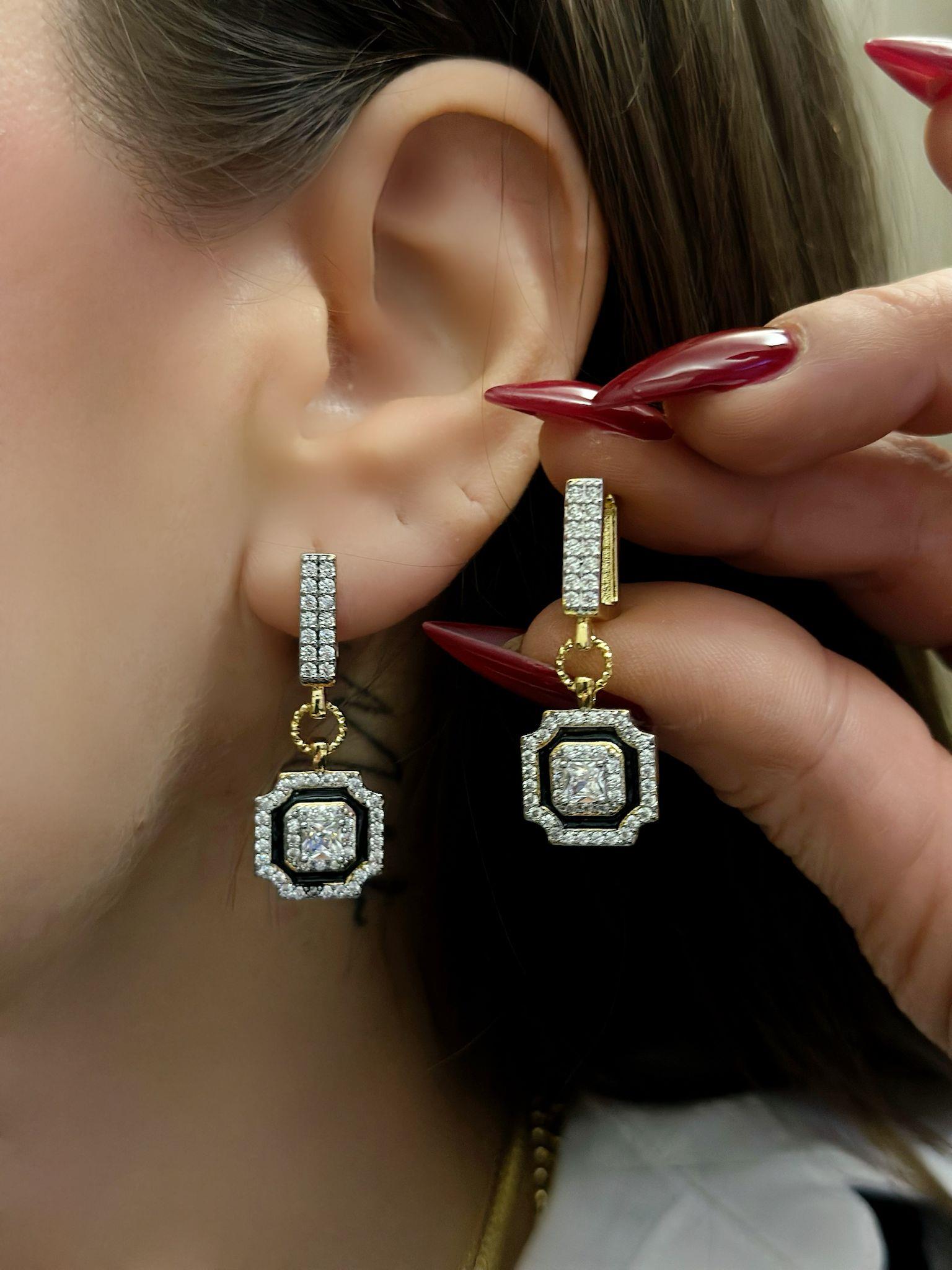 Siyah Mineli Zirkon Taş Detaylı Sallantılı Küpe (Çelik)