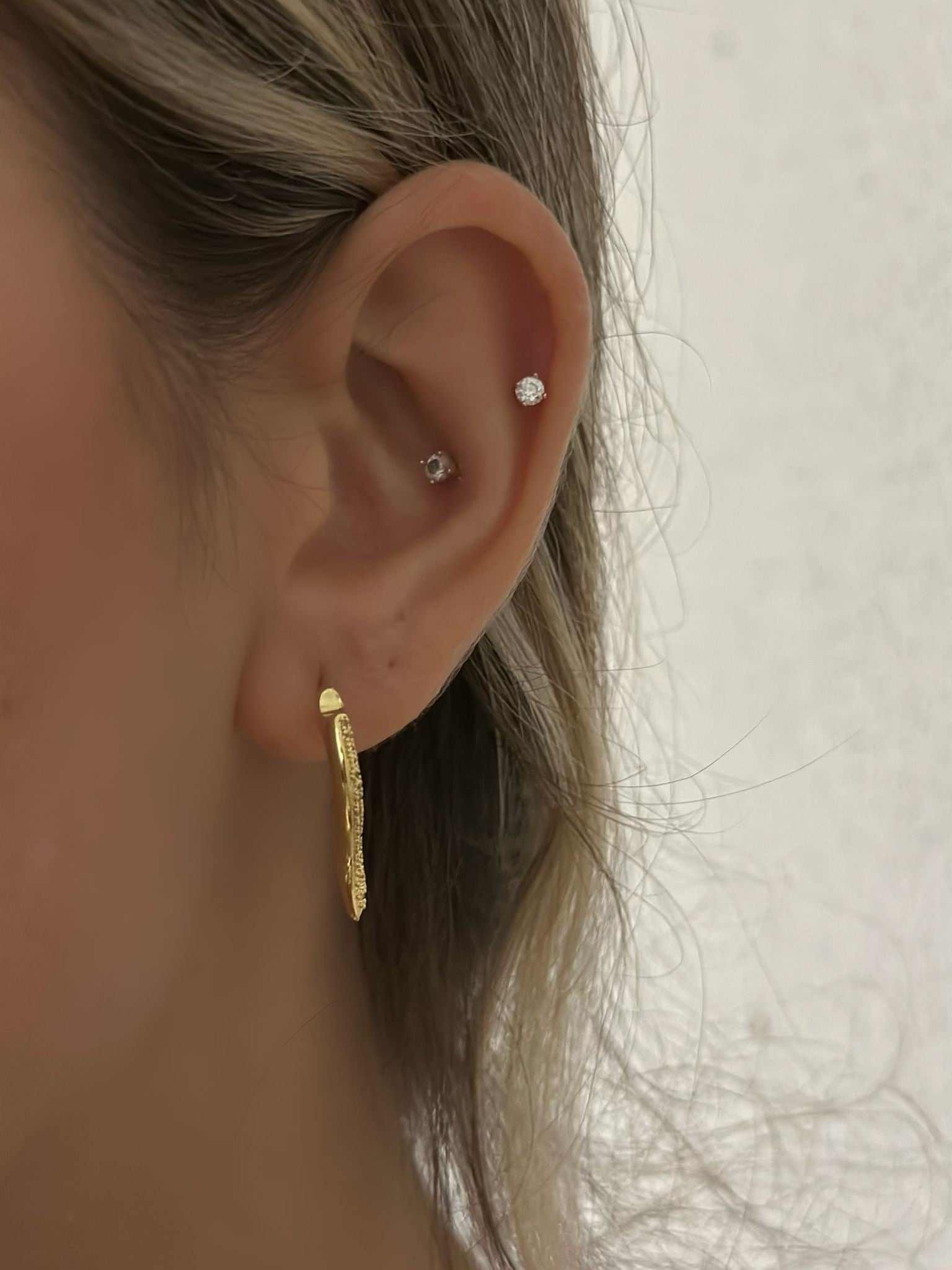 Tasarım Zirkon Taş Detay Minimal Küpe (Çelik)