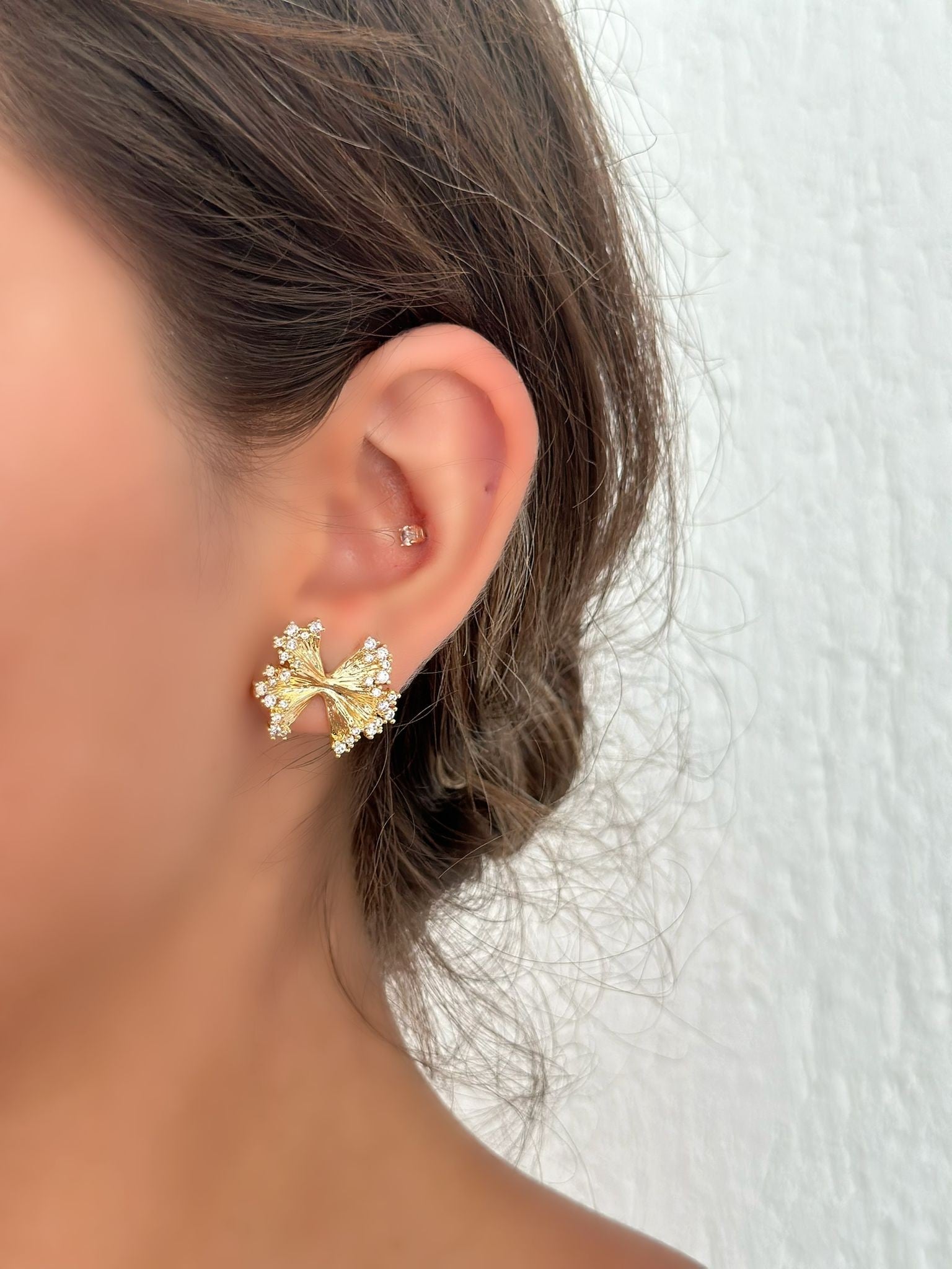 Tek Taş Detay Fiyonk Küpe (Premium)