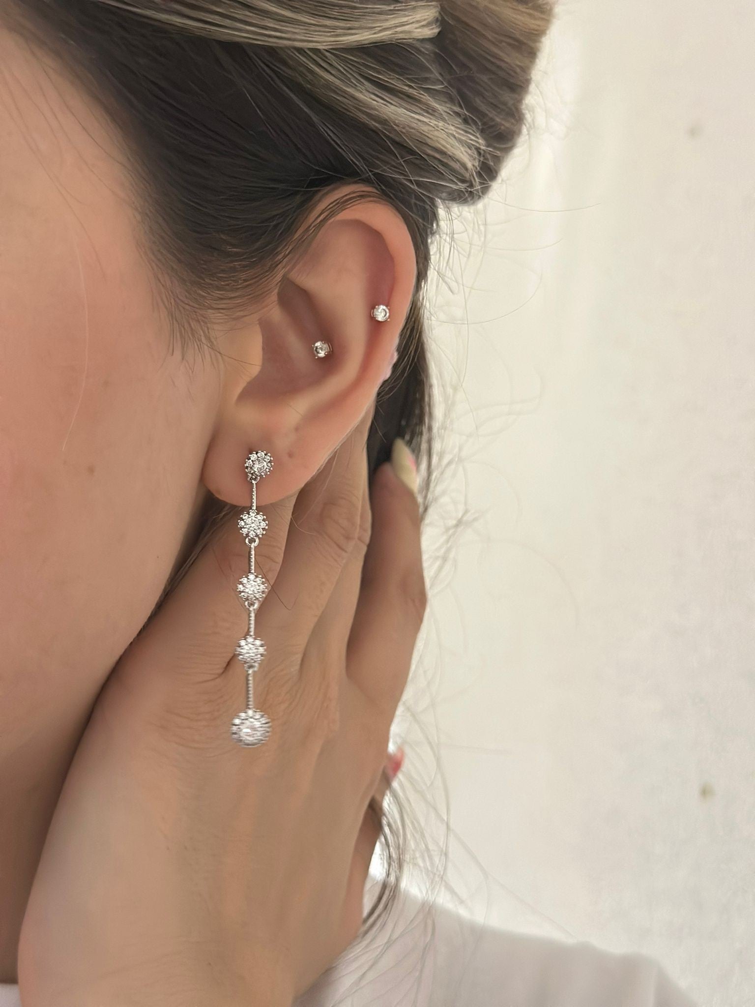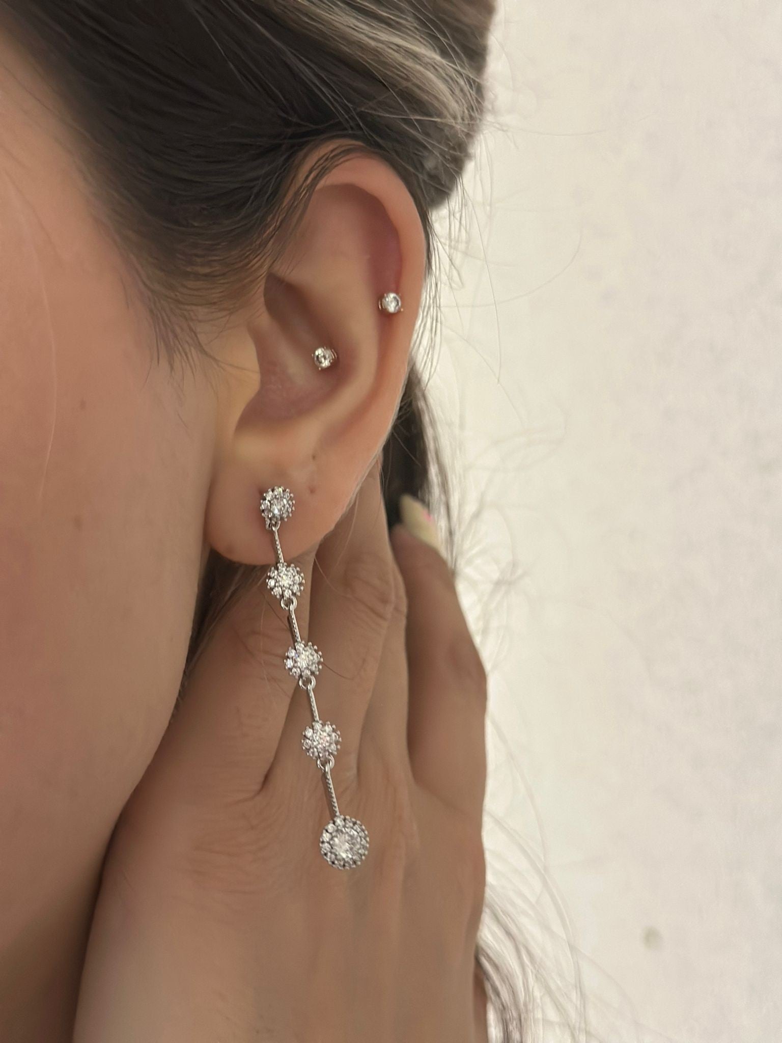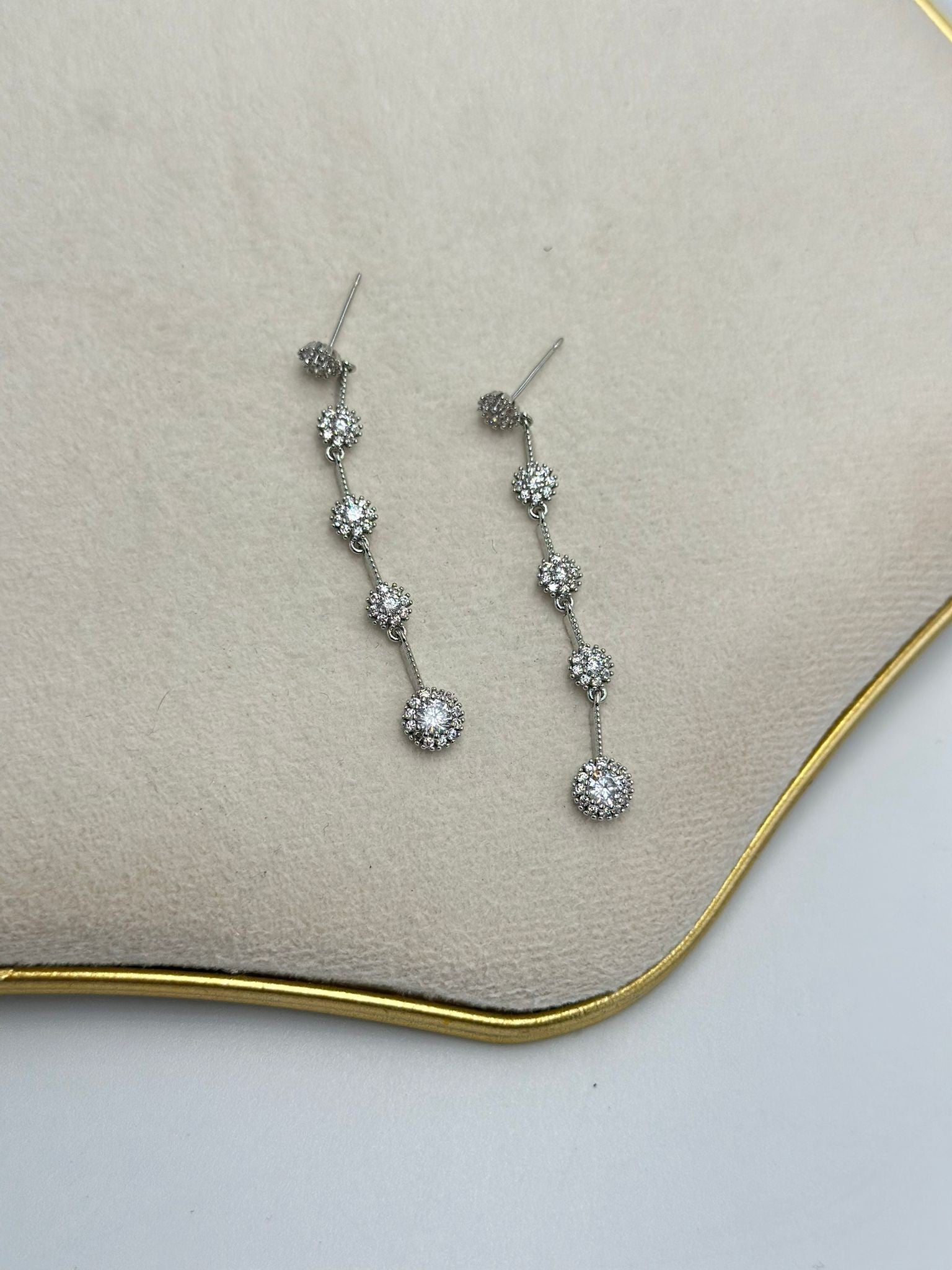 Tek Taş Detay Sıralı Sallantı Küpe (Çelik)