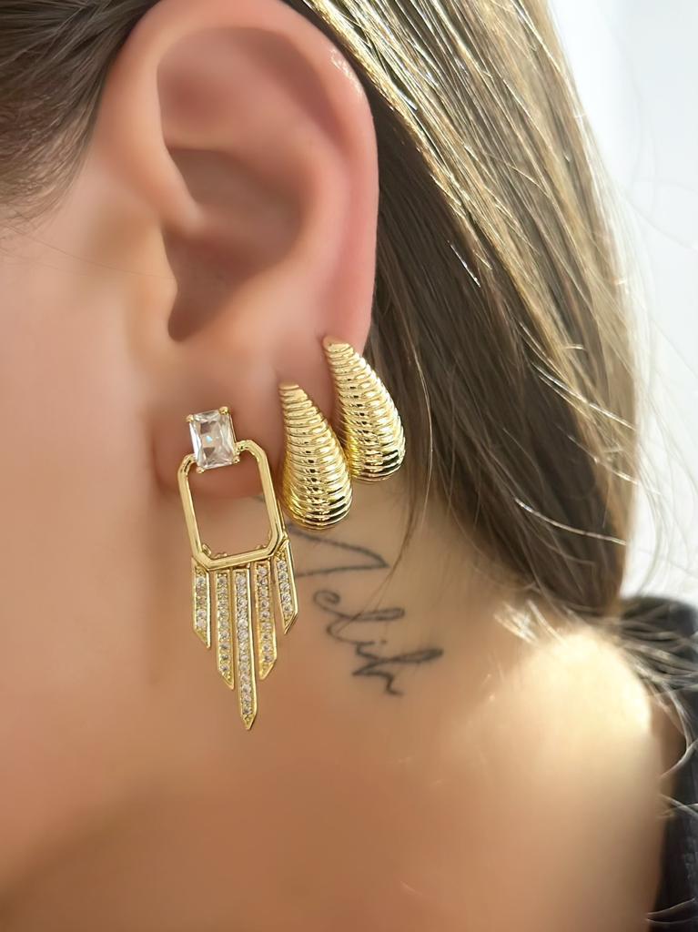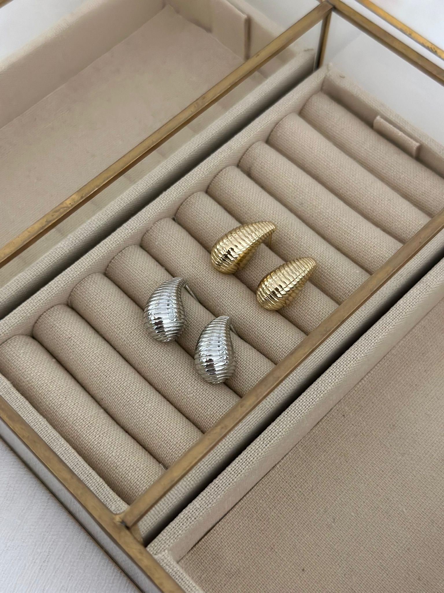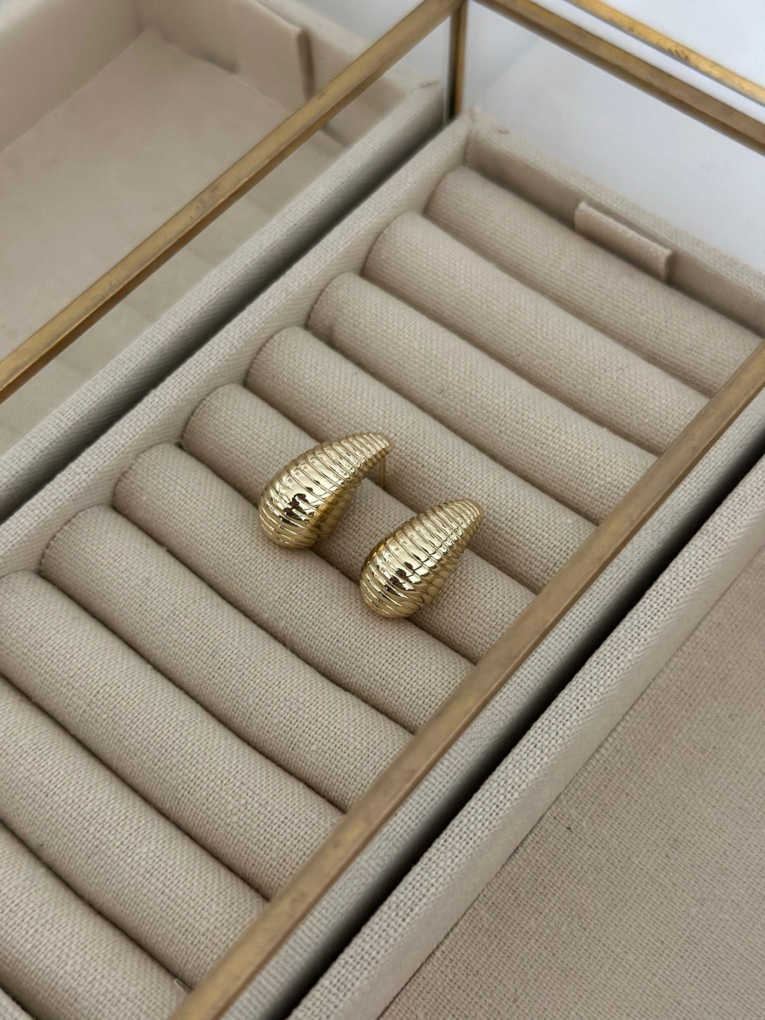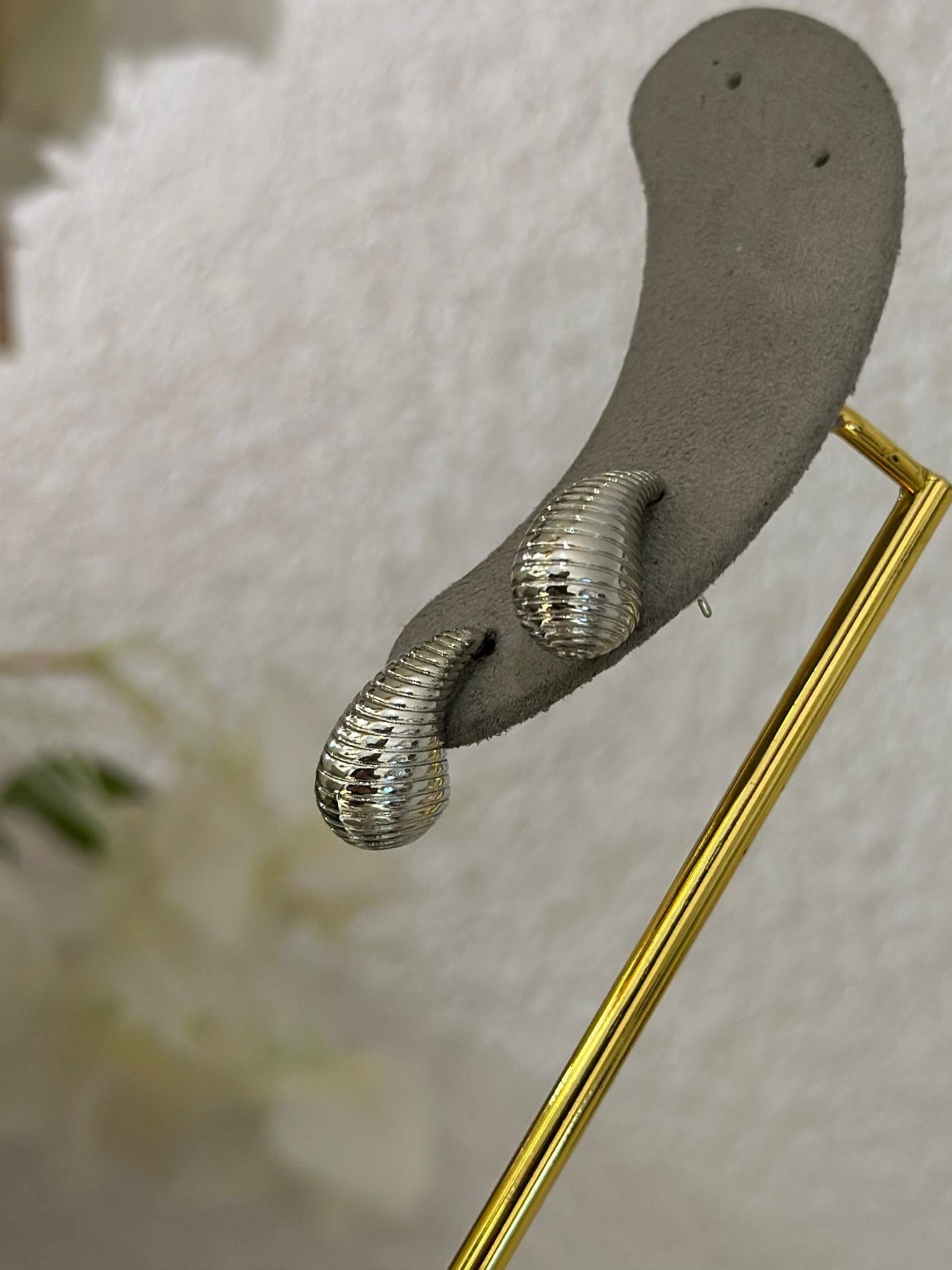 Tırtıklı Plaka Detaylı Minimal Su Damlası Küpe