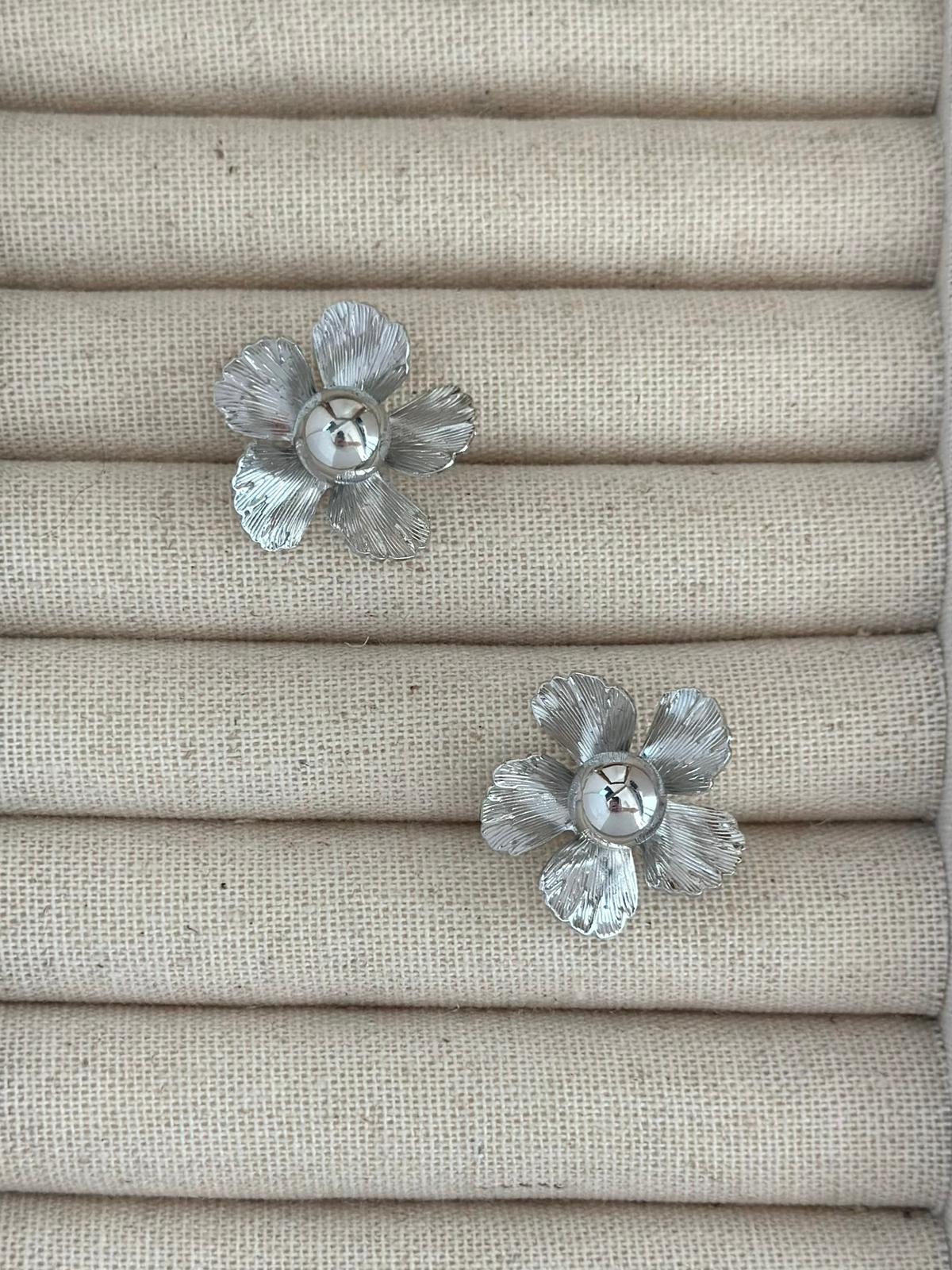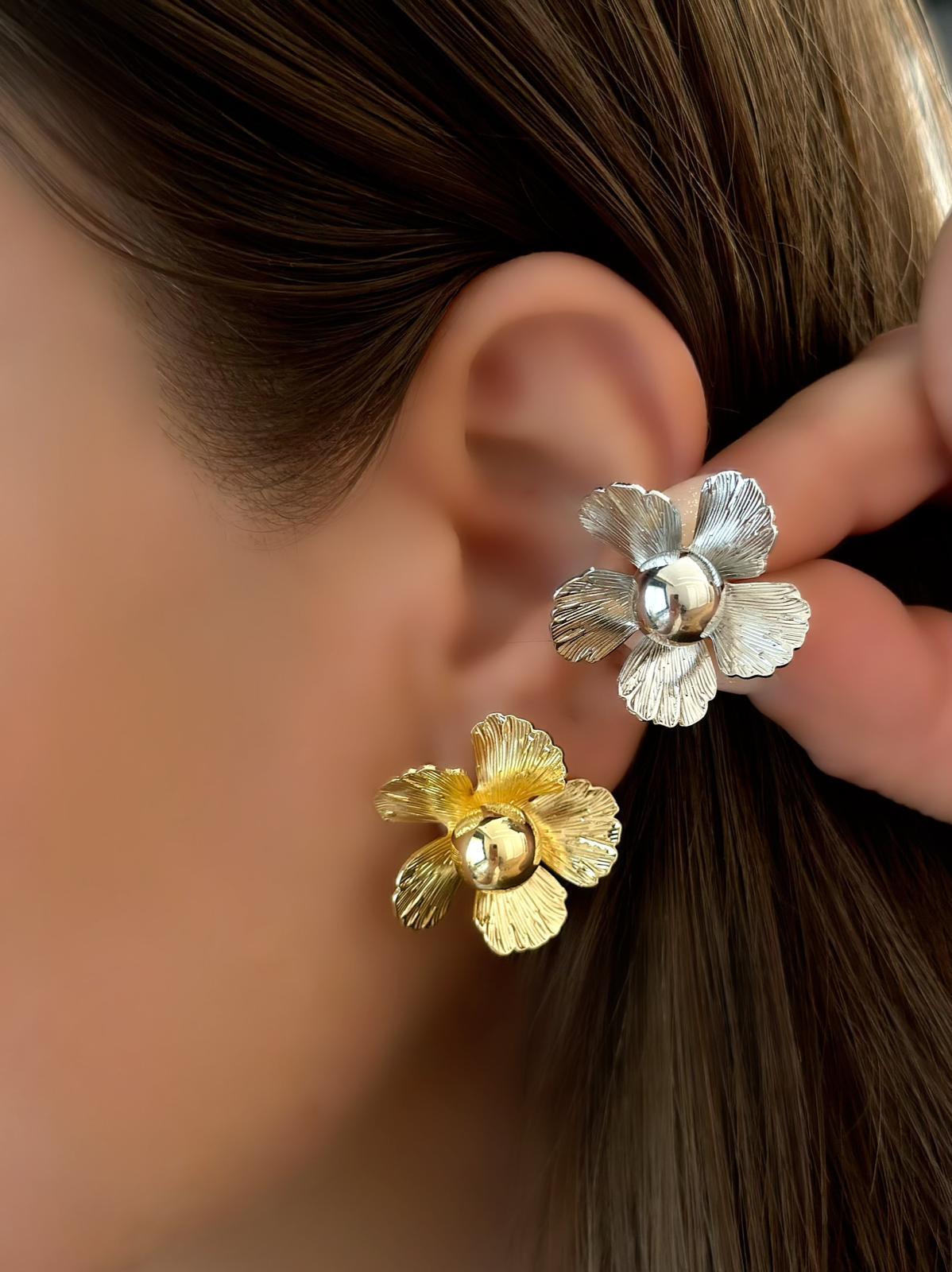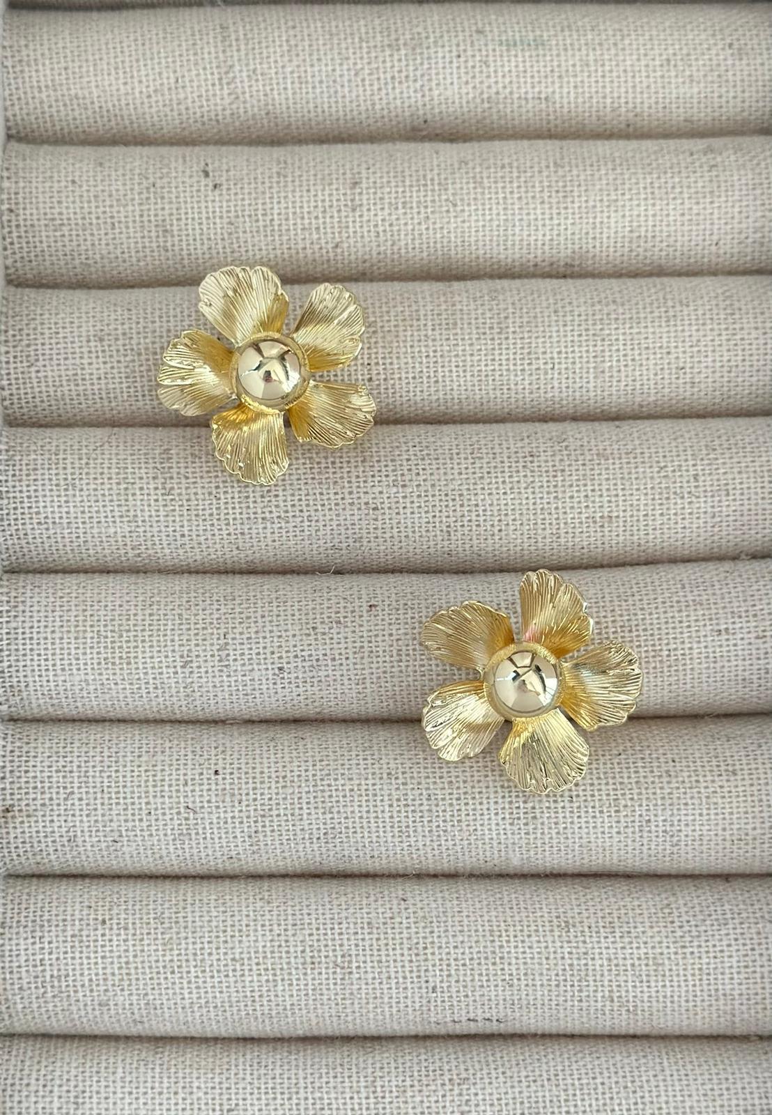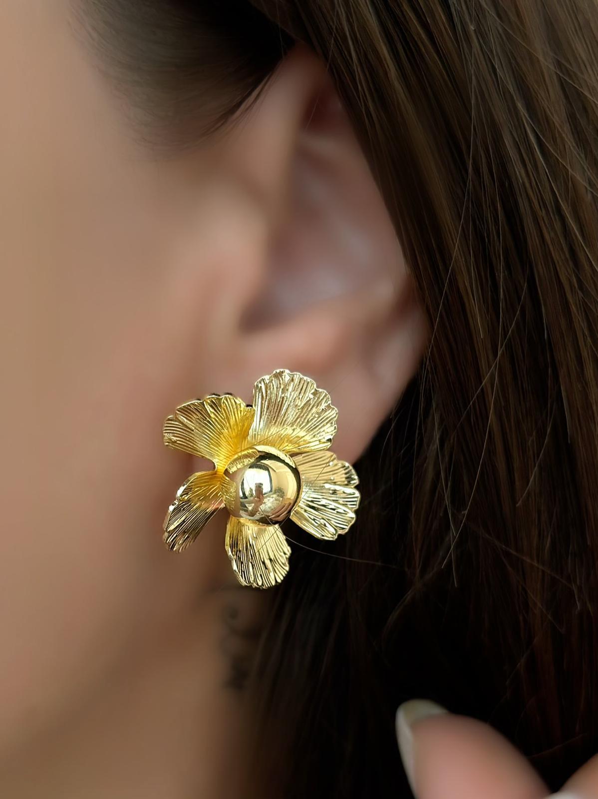 Topçuk Detaylı Çiçek Küpe (Pirinç Kaplama)