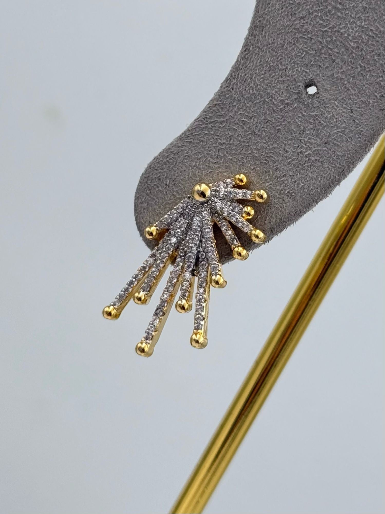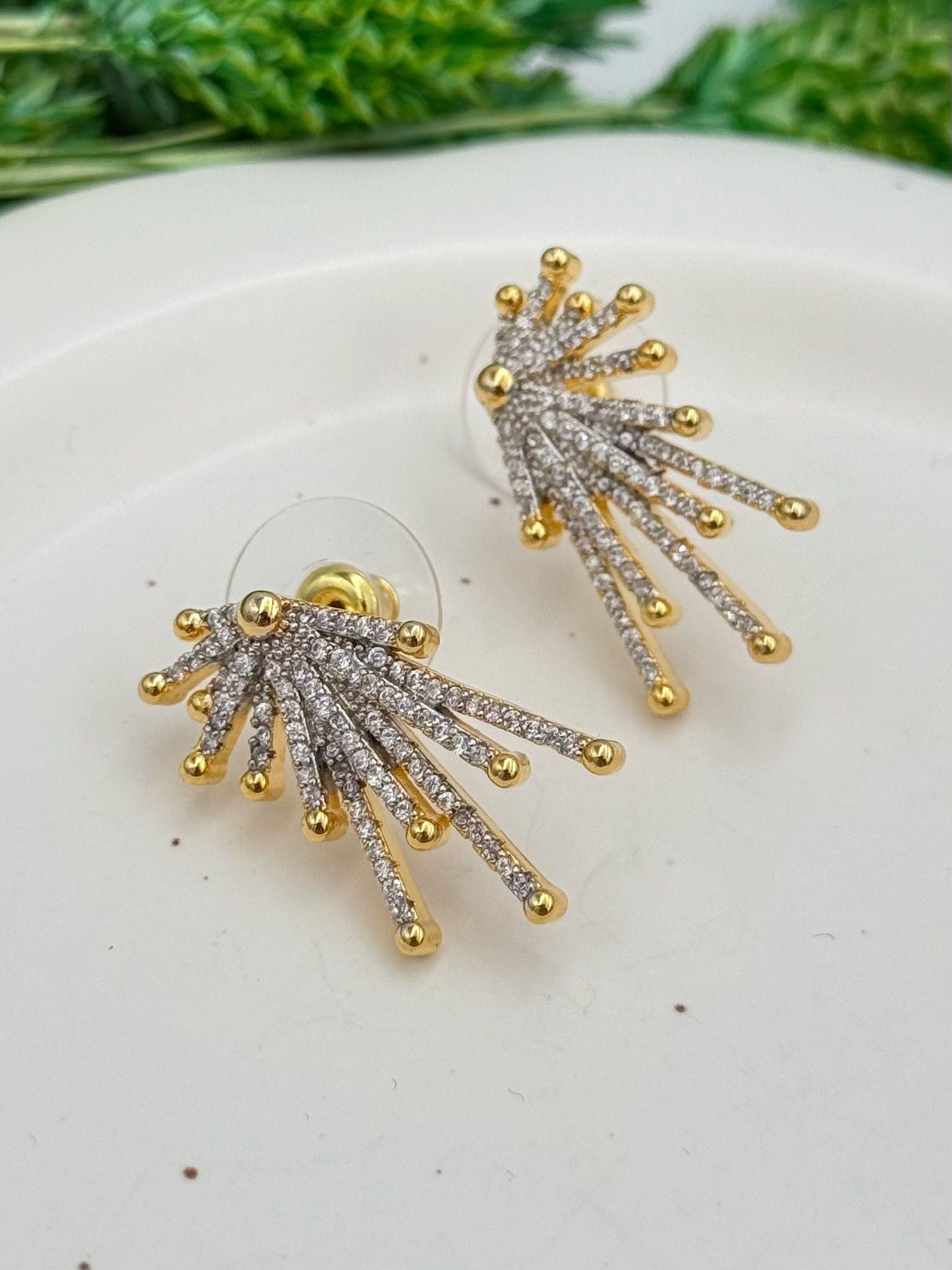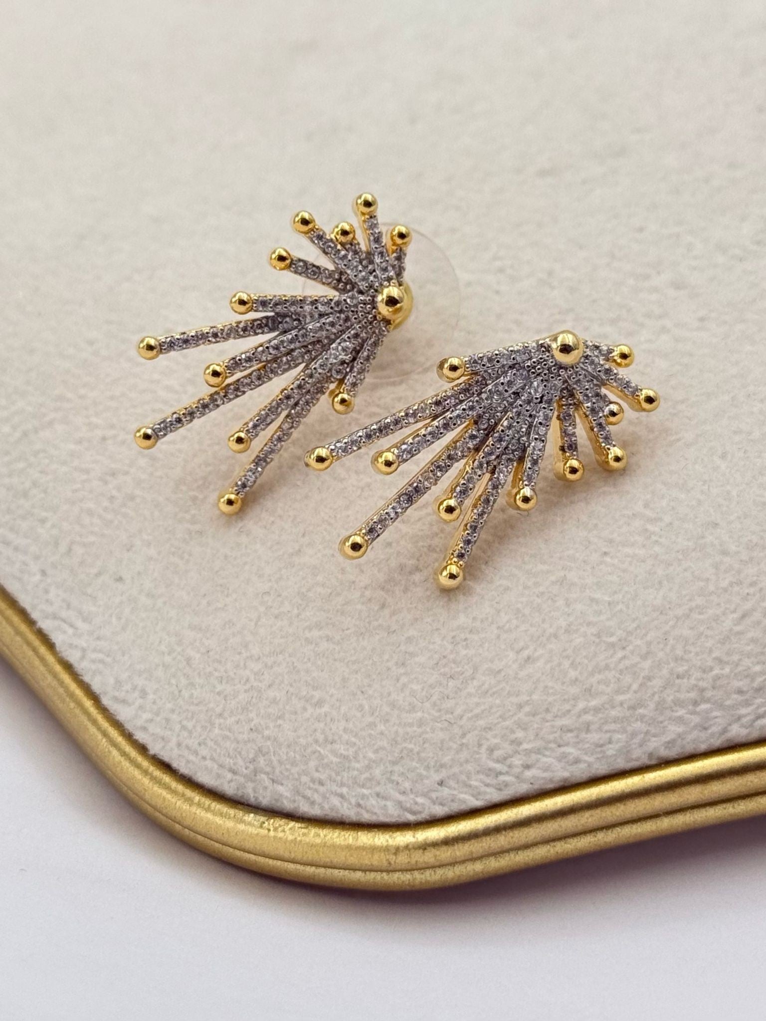 Topçuk Ve Zirkon Taş Detaylı Yelpaze Küpe (Çelik)