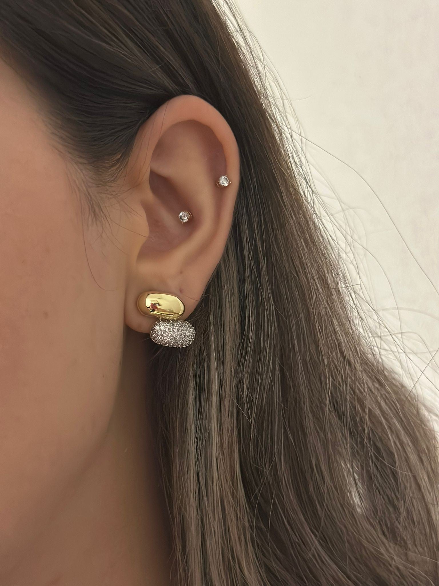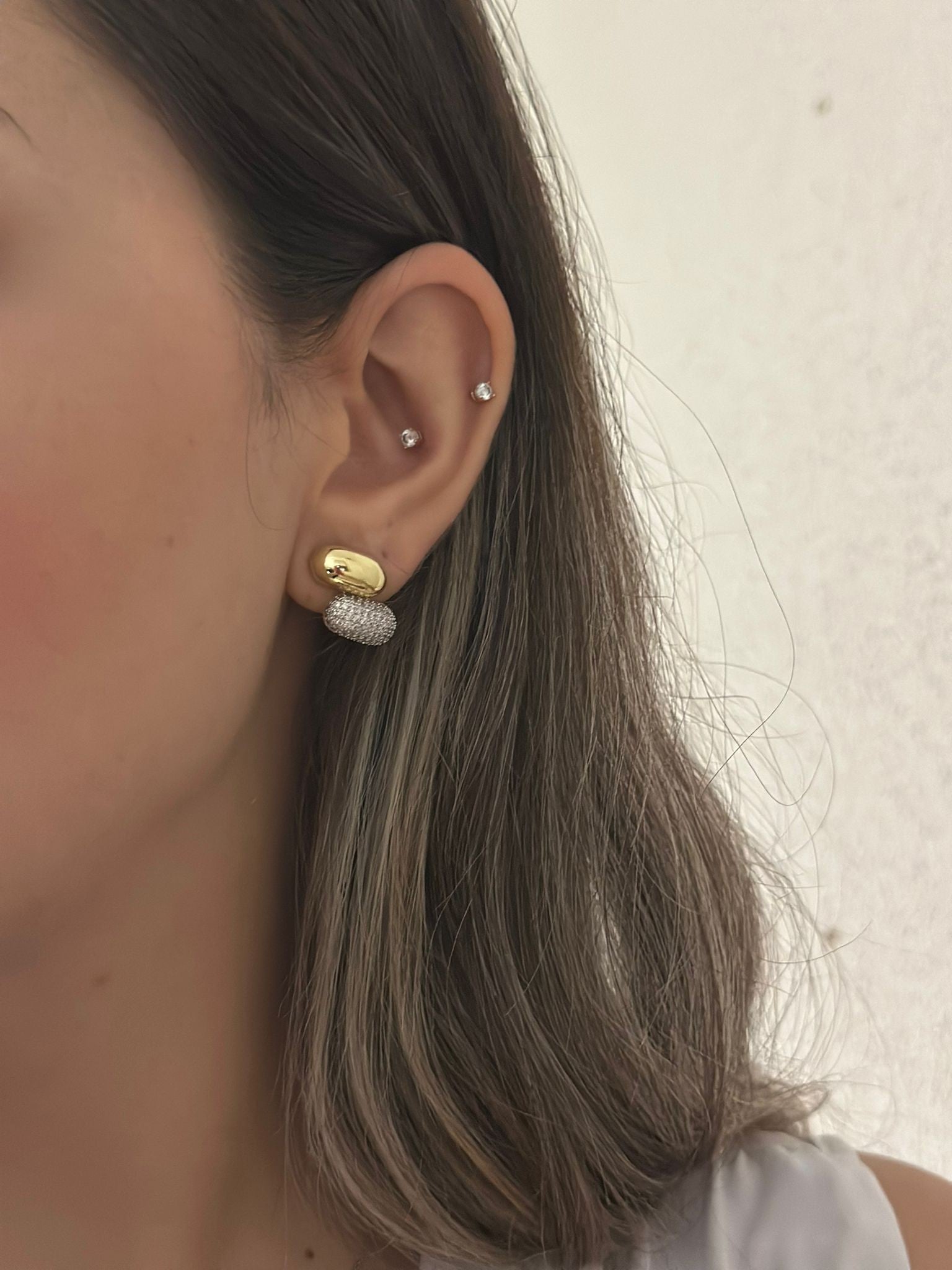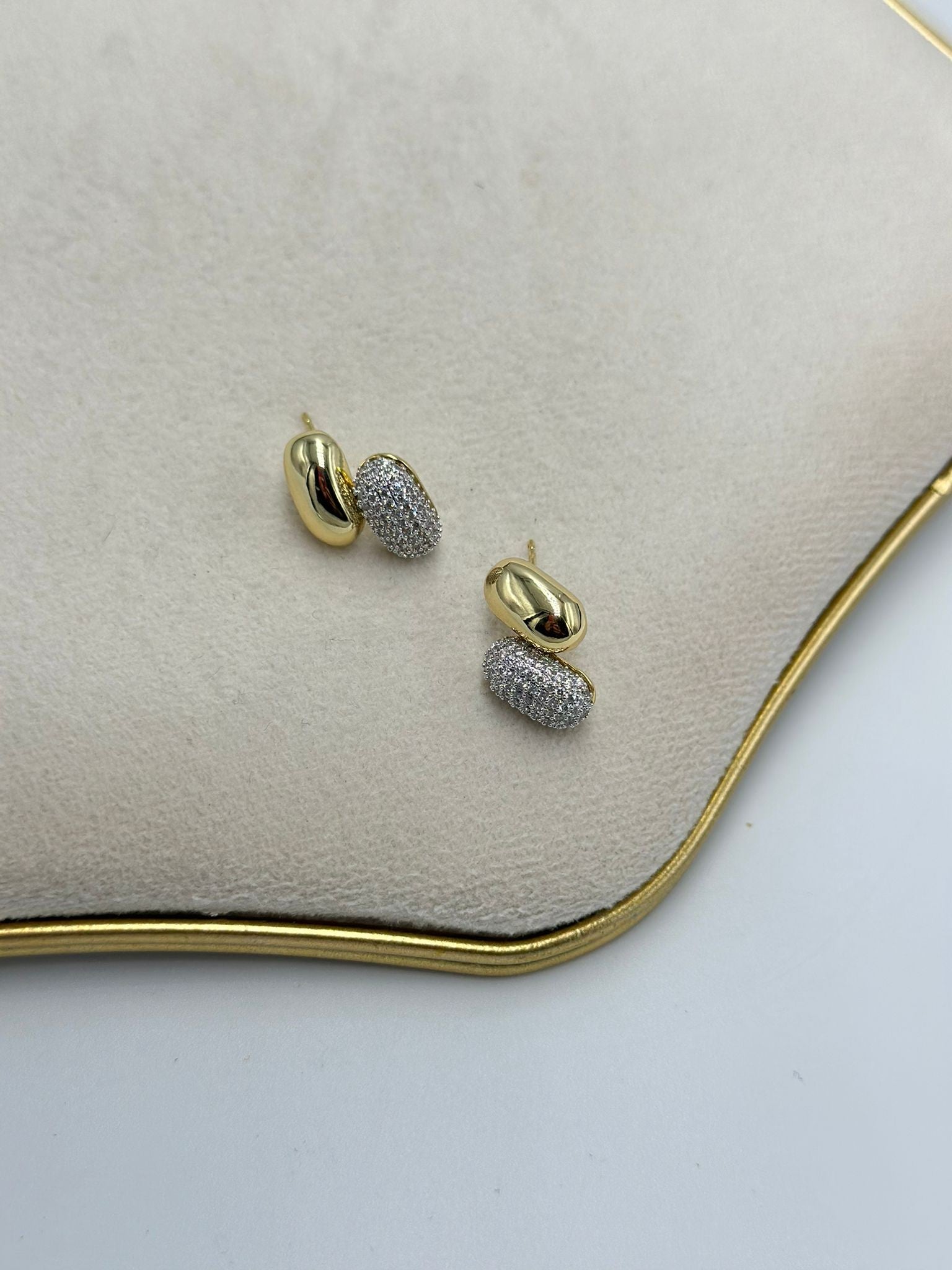 Yarı Zirkon Taş Detay Oval Küpe (Altın Kaplama)