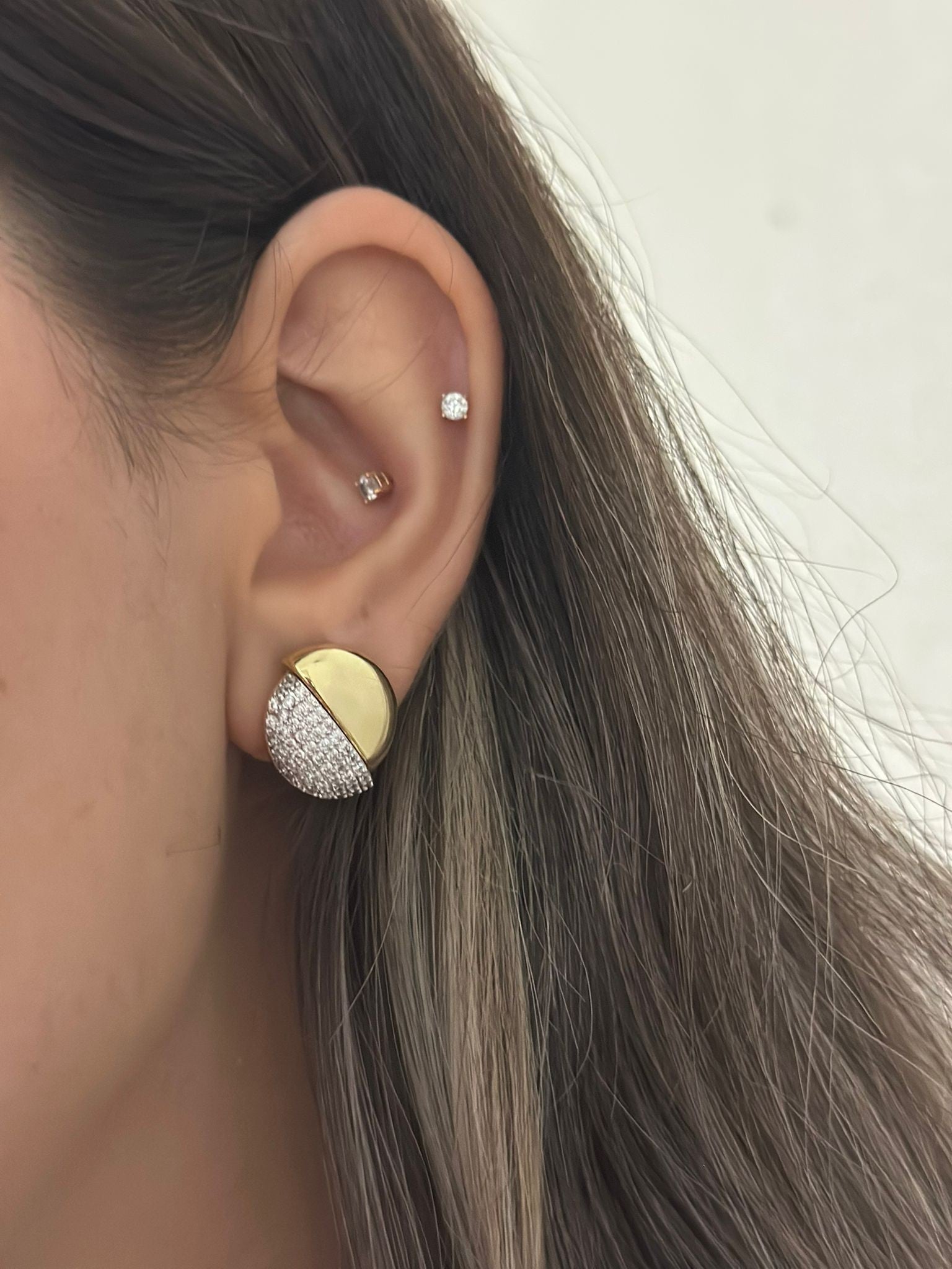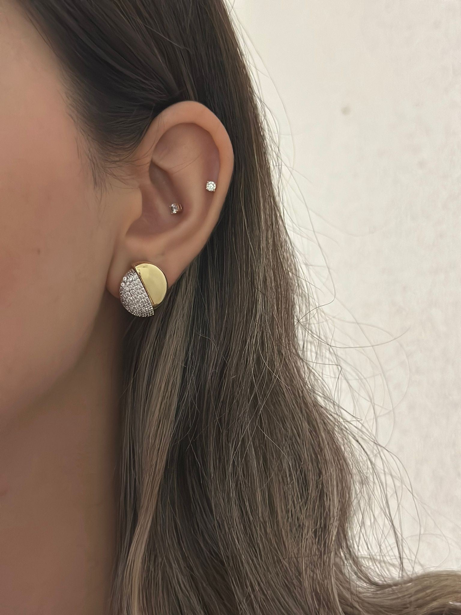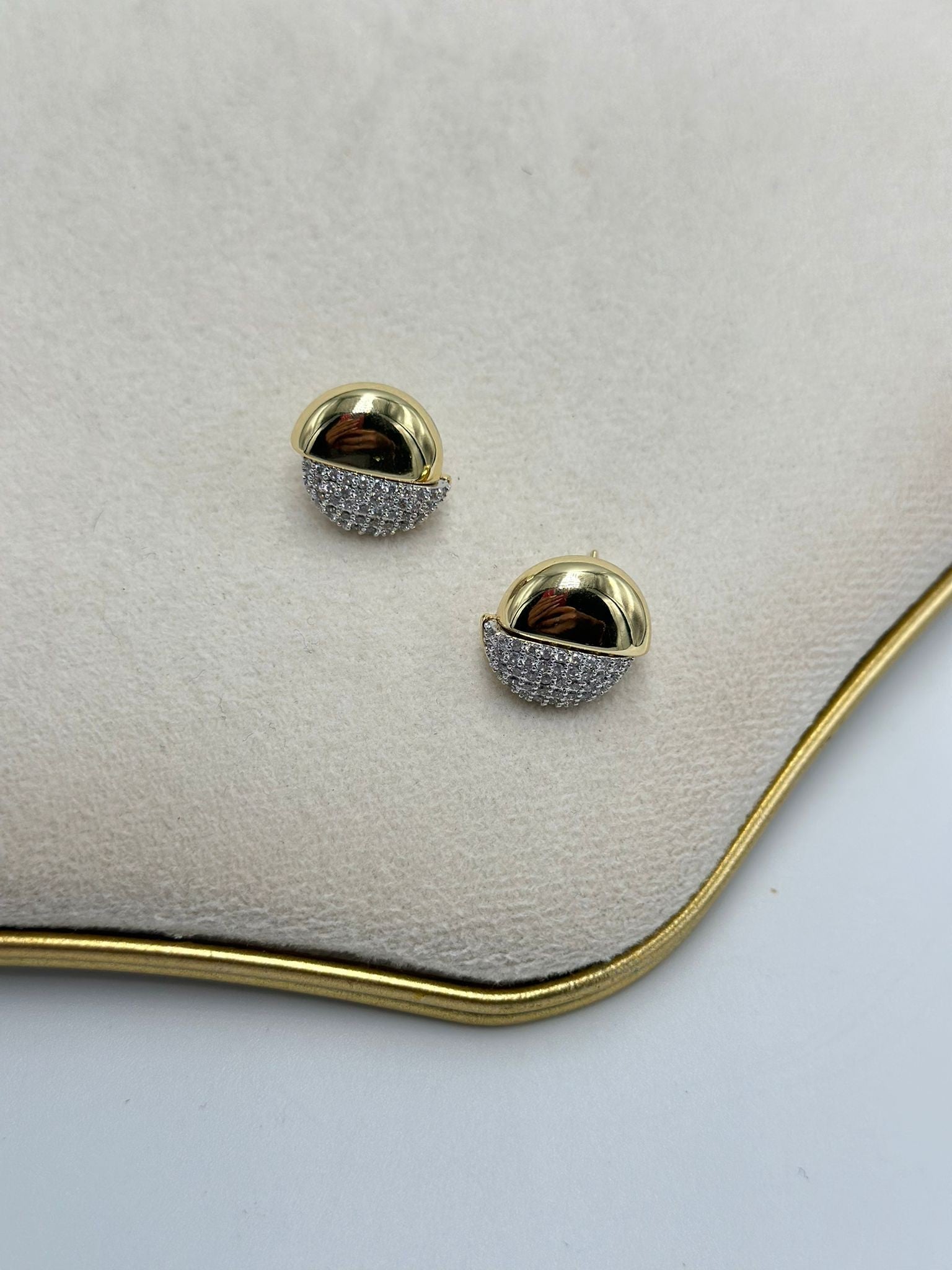 Yarı Zirkon Taş Yuvarlak Küpe (Altın Kaplama)