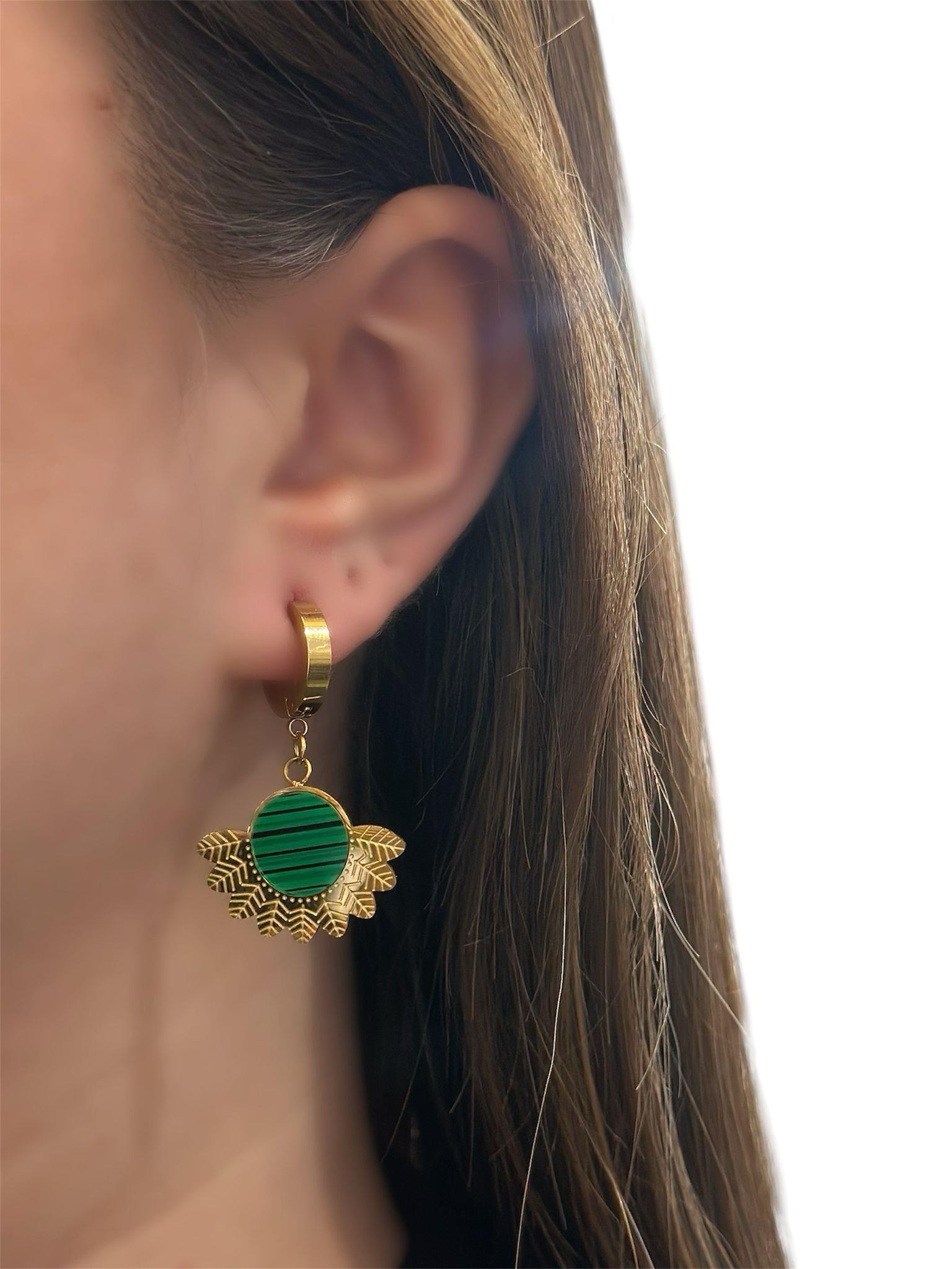 Yeşil Mineli Detaylı Çelik Vintage Küpe