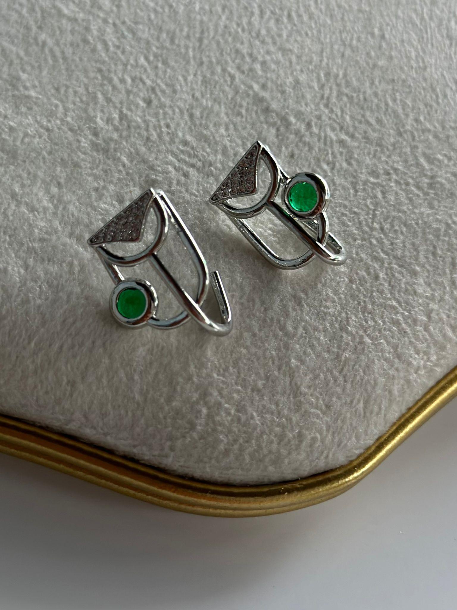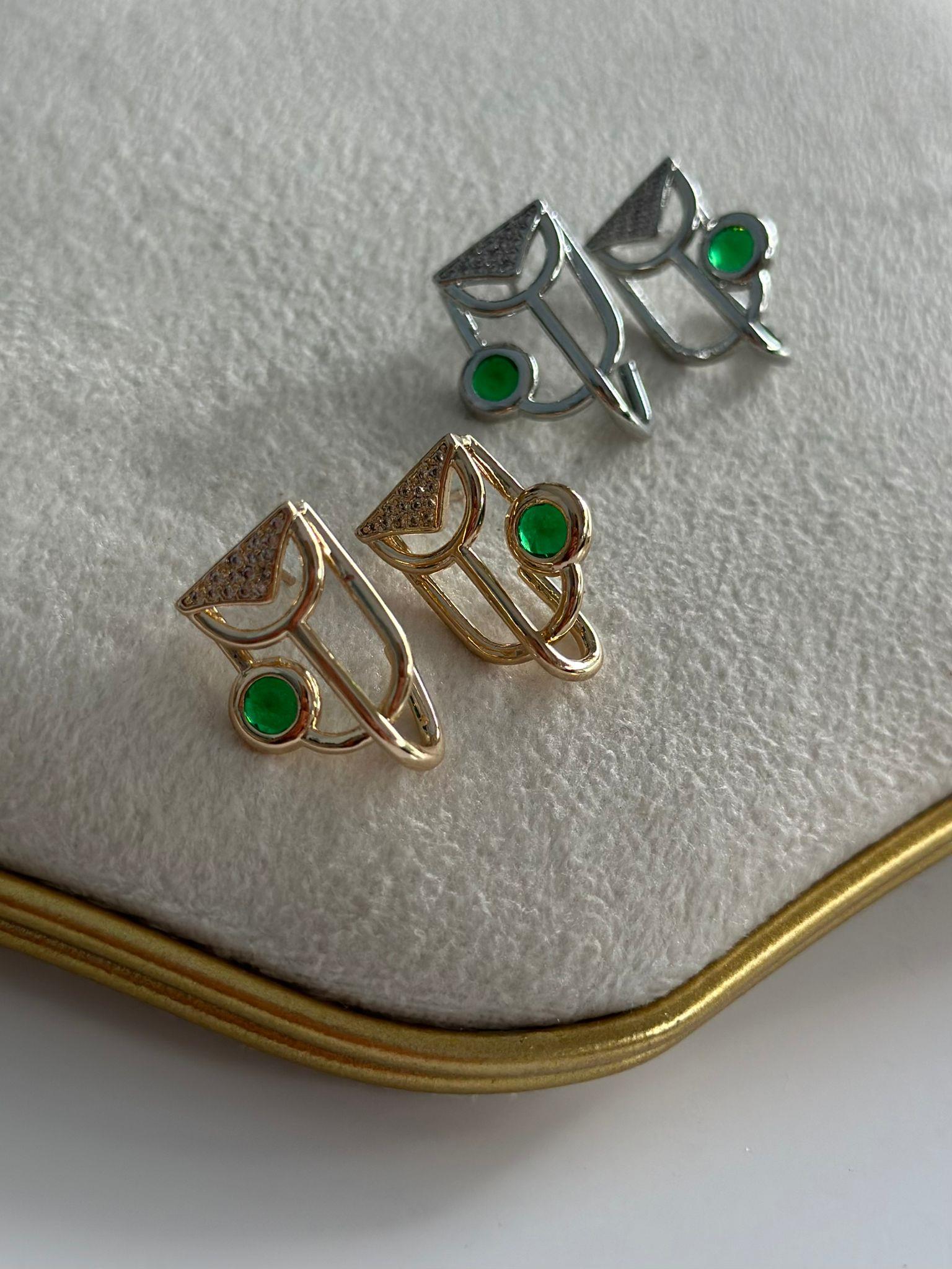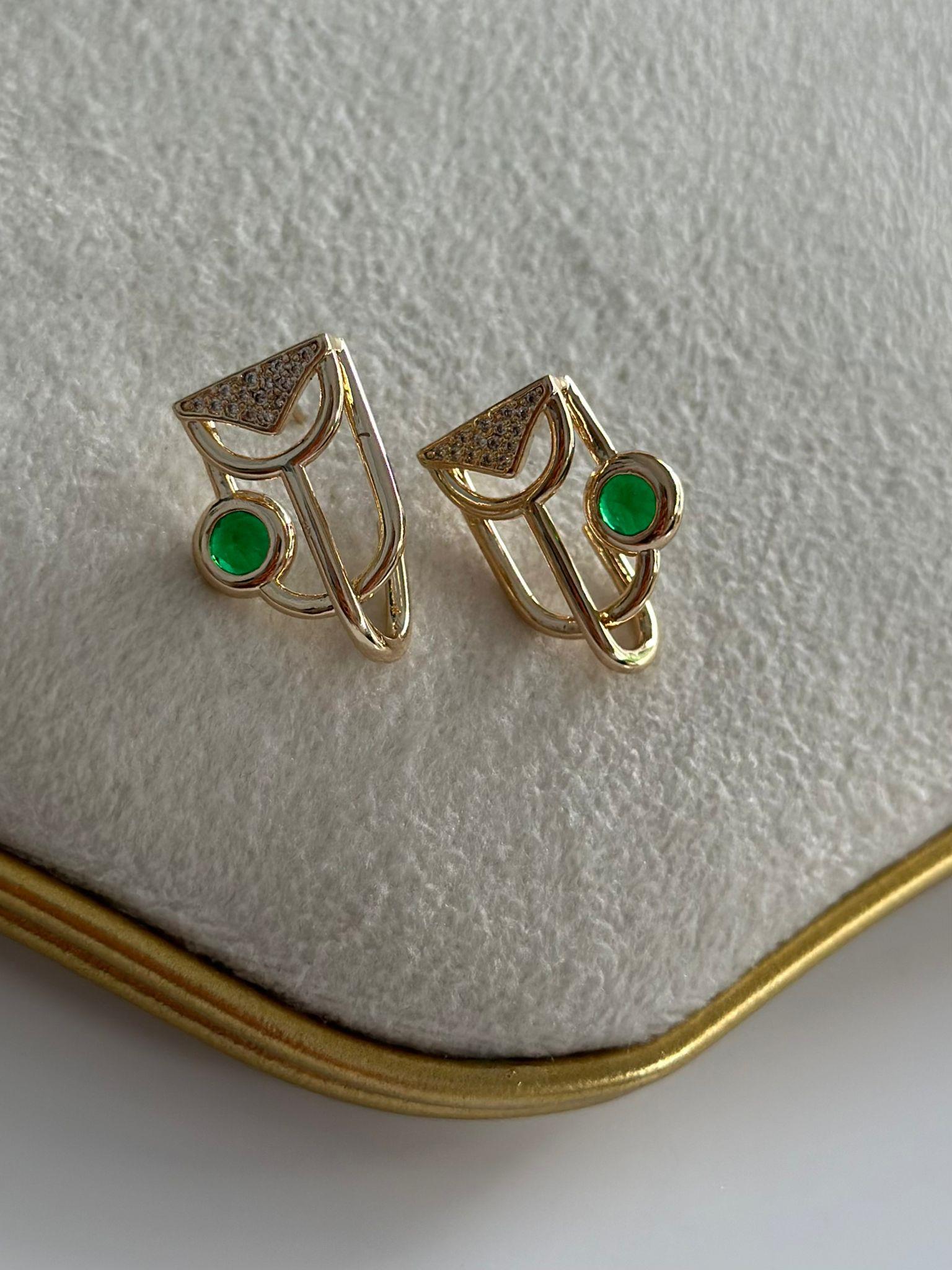 Yeşil Tek Taş Detay Minimal Küpe (Pirinç Kaplama)