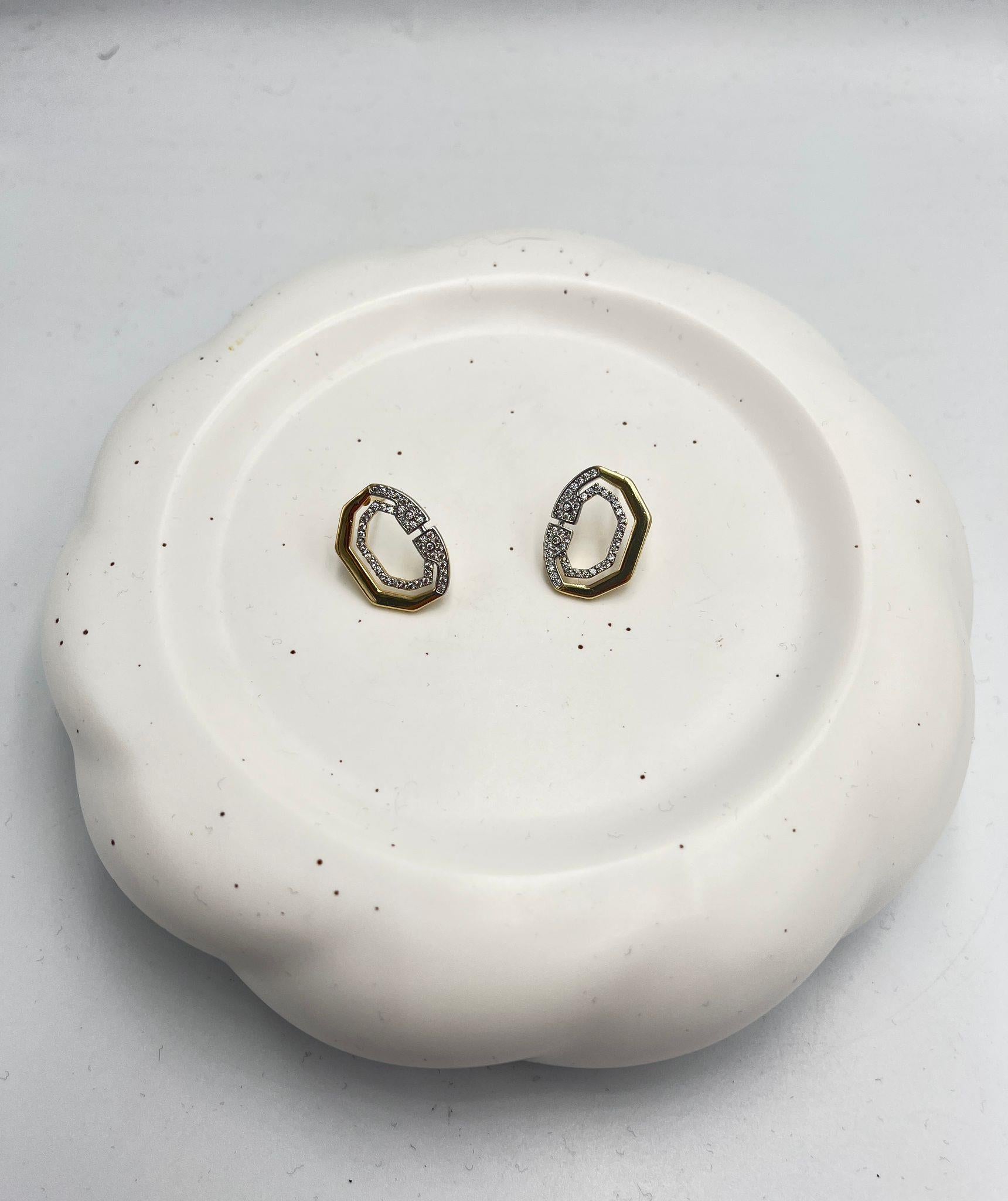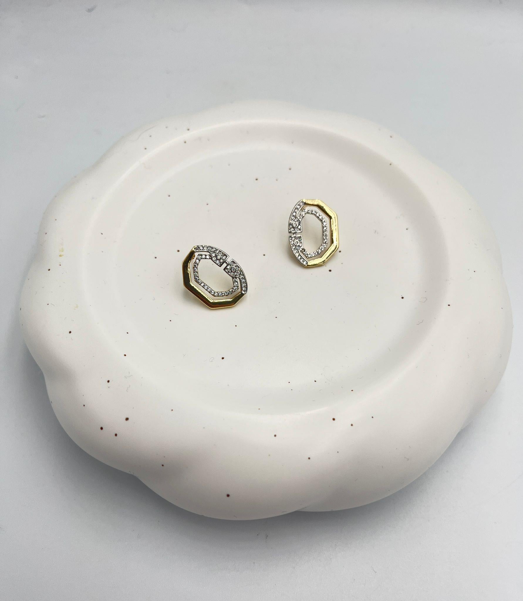 Zirkon Taş Detay Çift Renk Geometrik Küpe