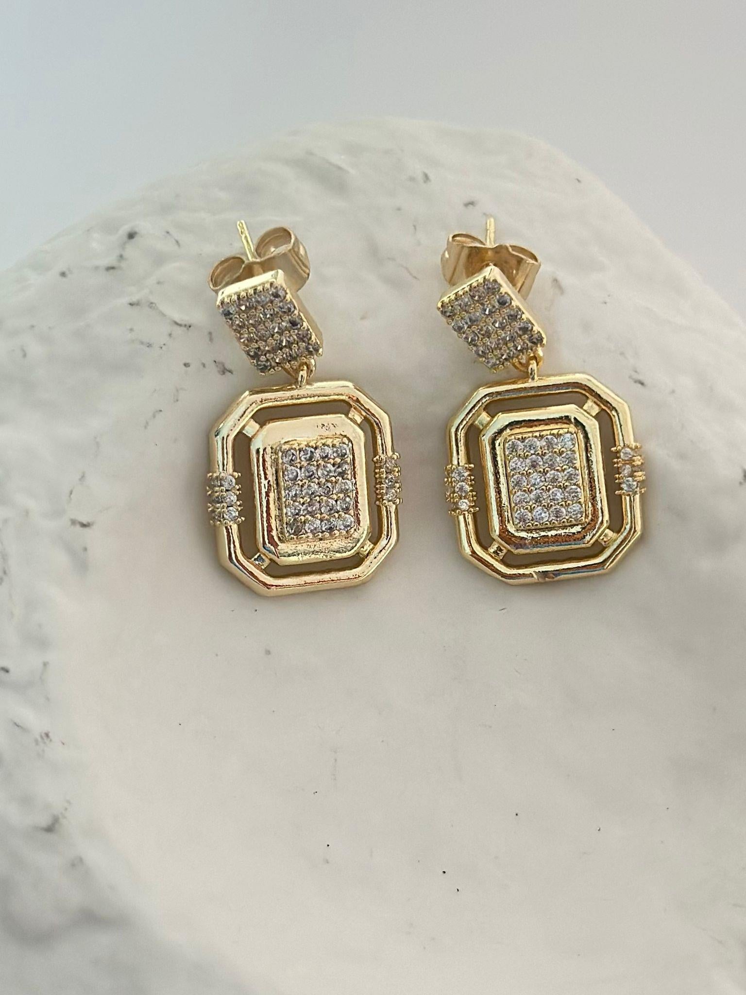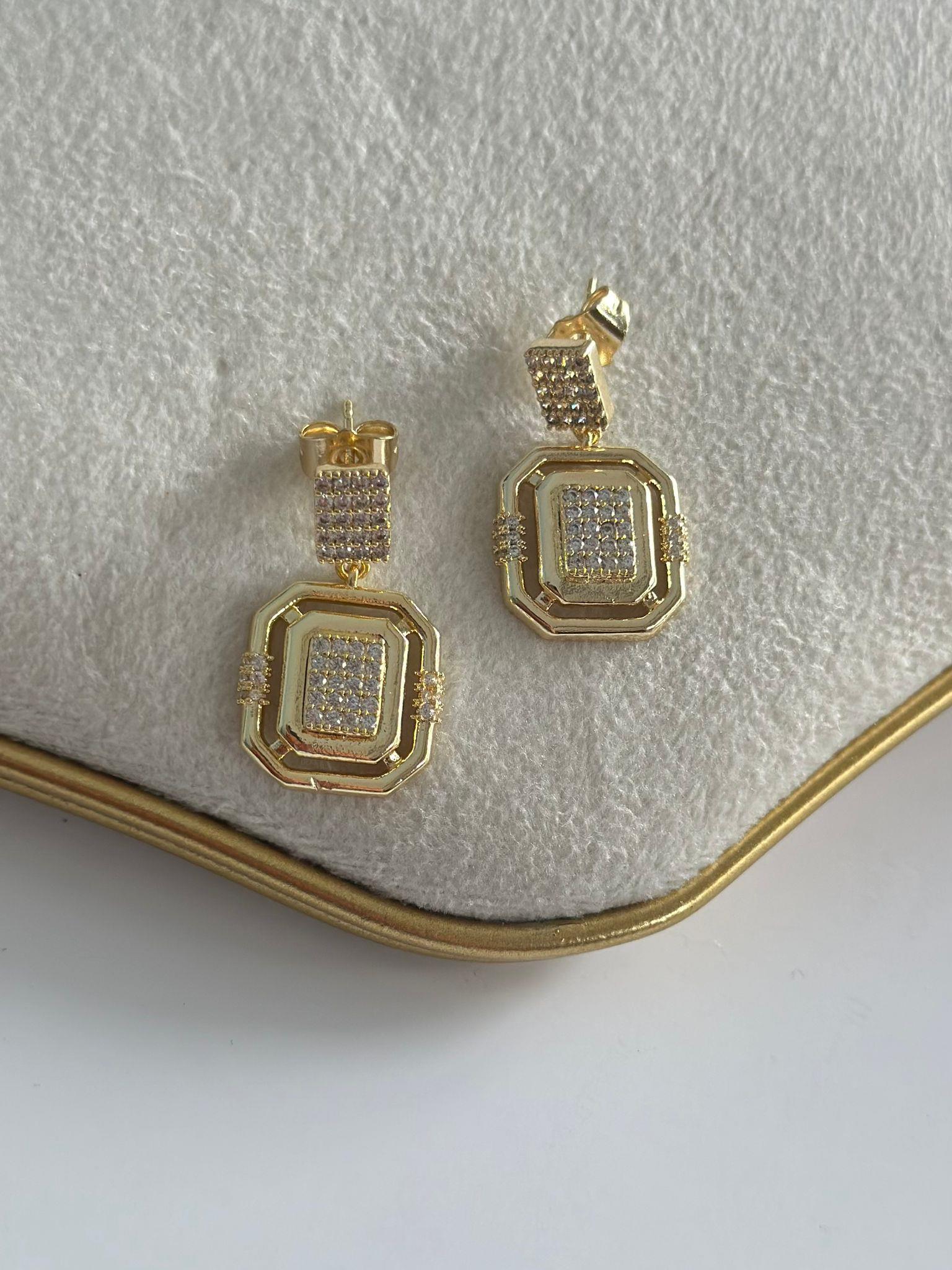 Zirkon Taş Detay Kare Kesim Premium Sallantılı Küpe