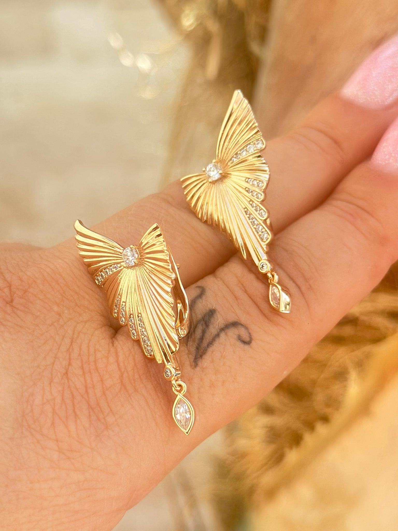 Zirkon Taş Detay Melek Kanadı Çelik Küpe