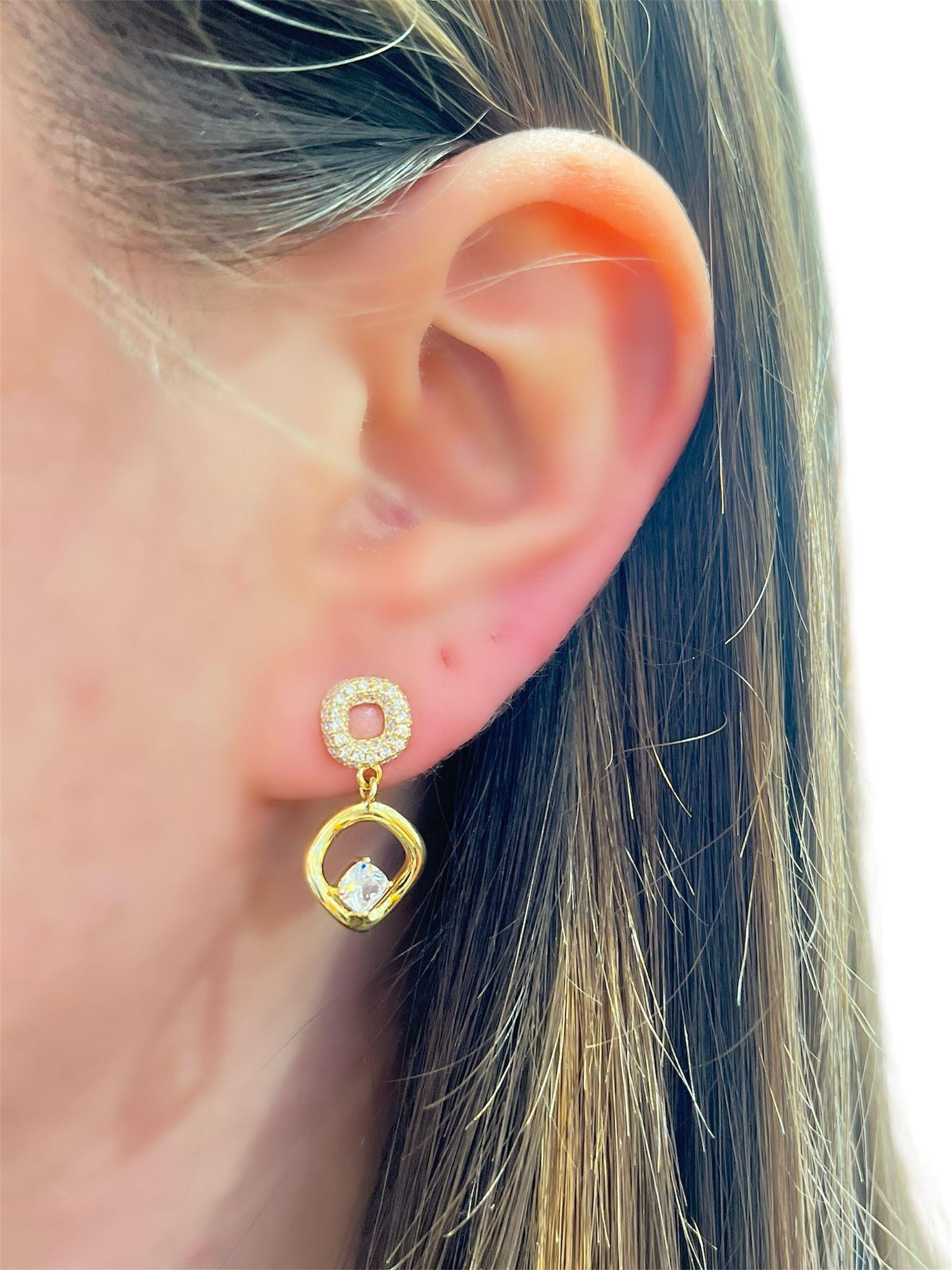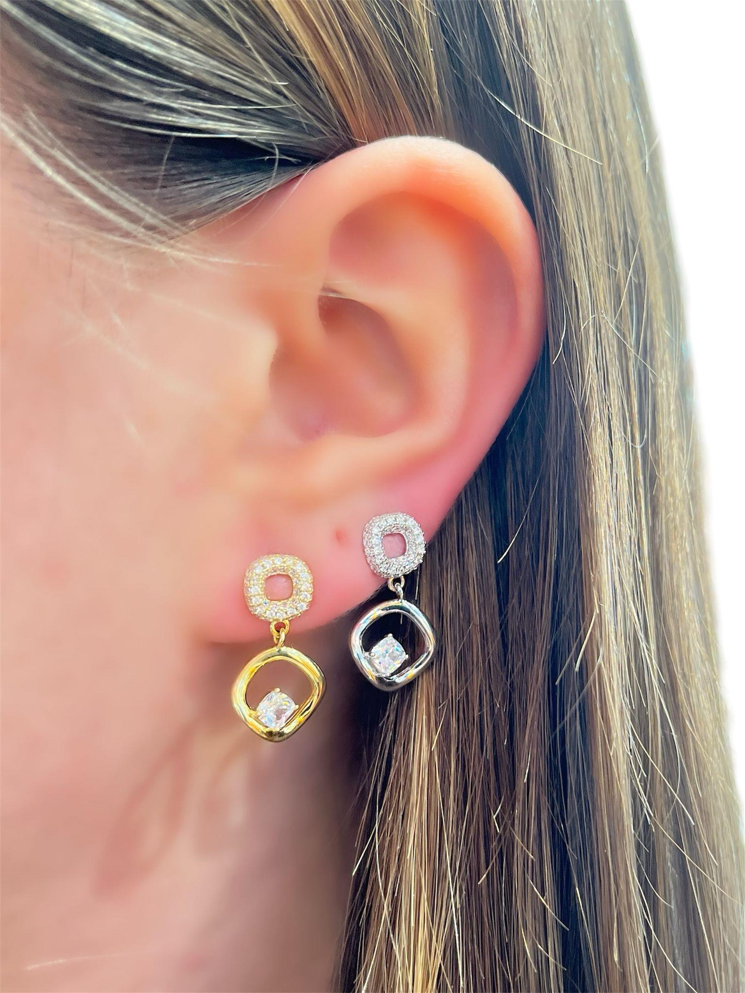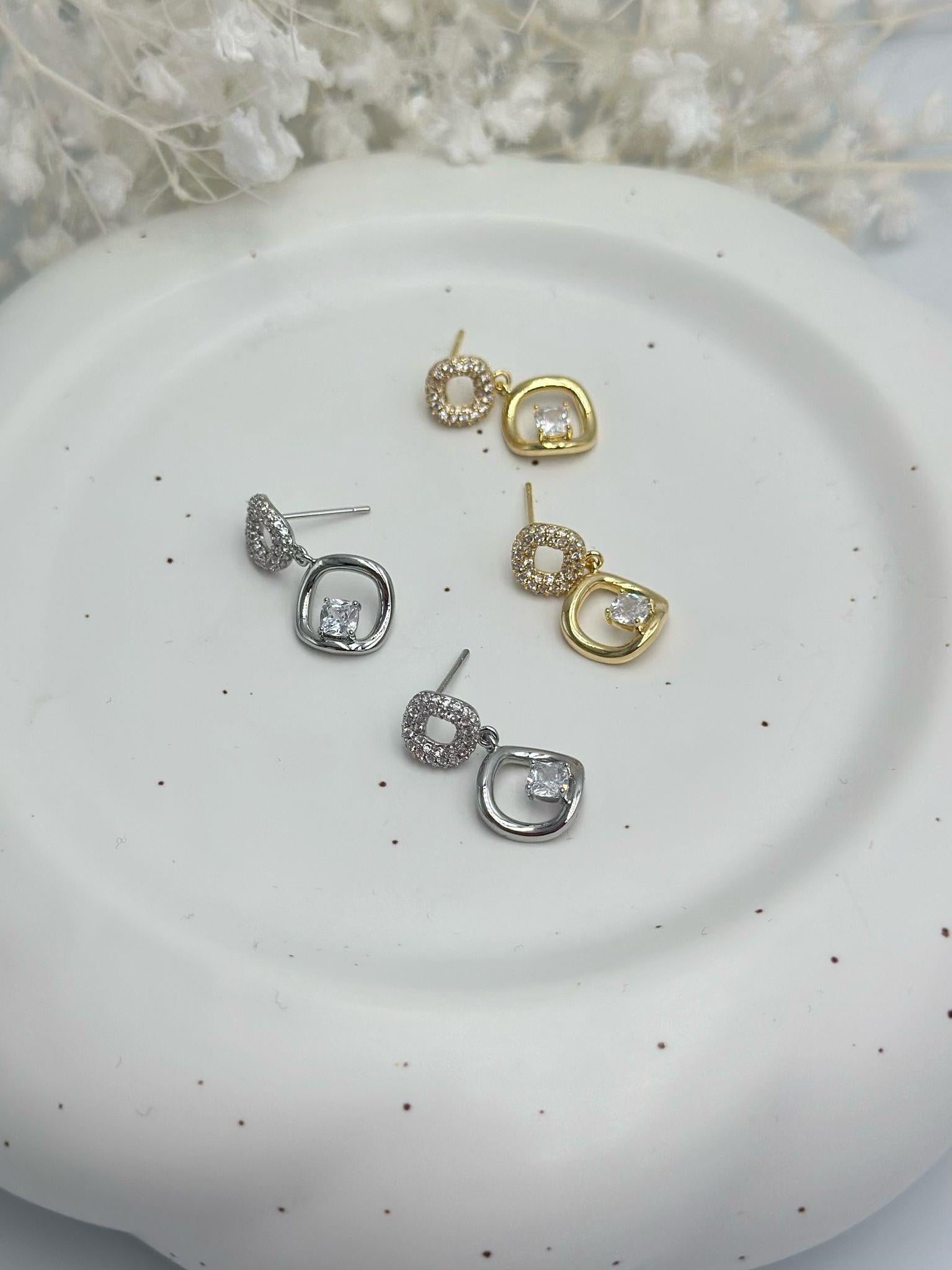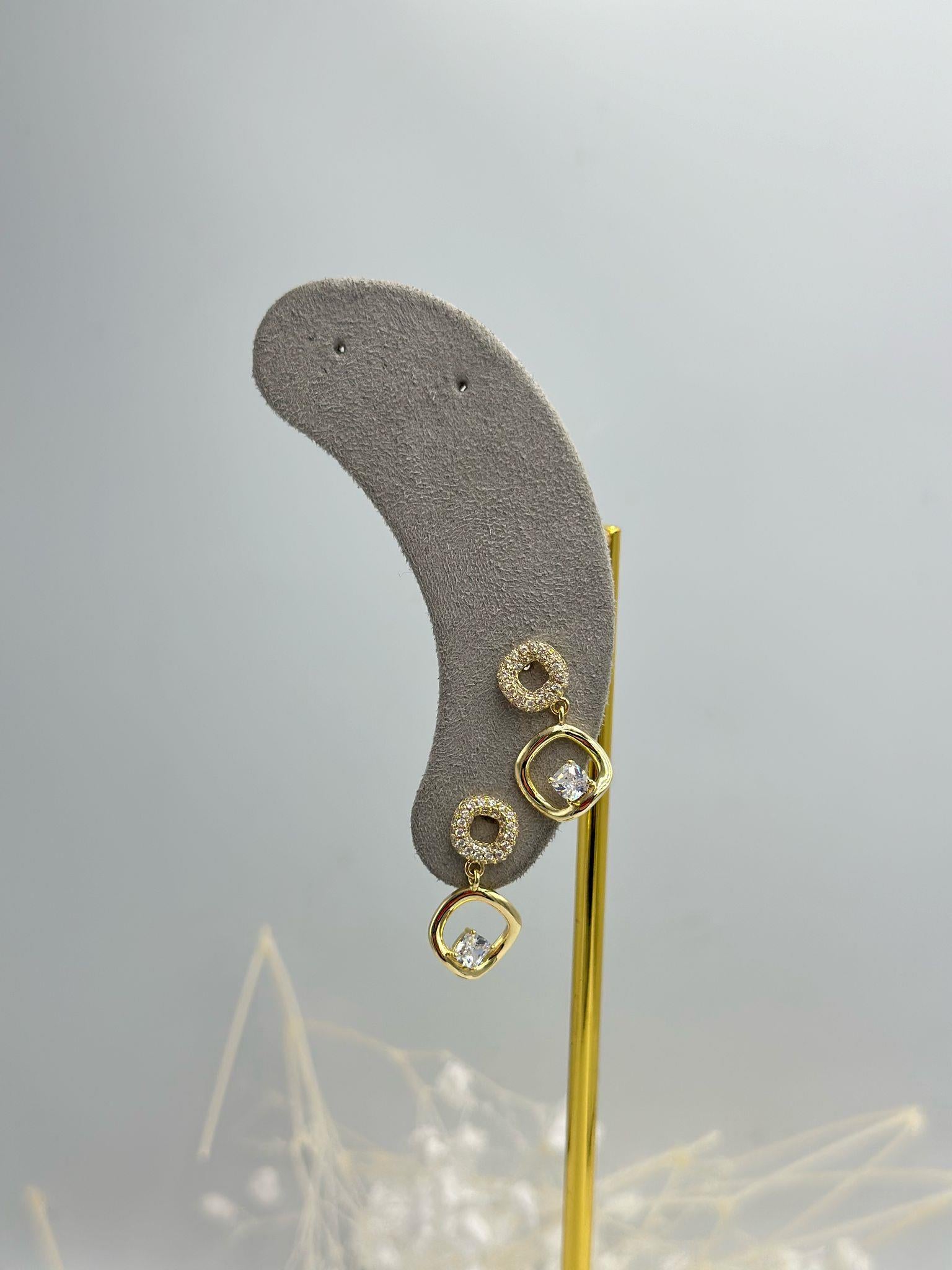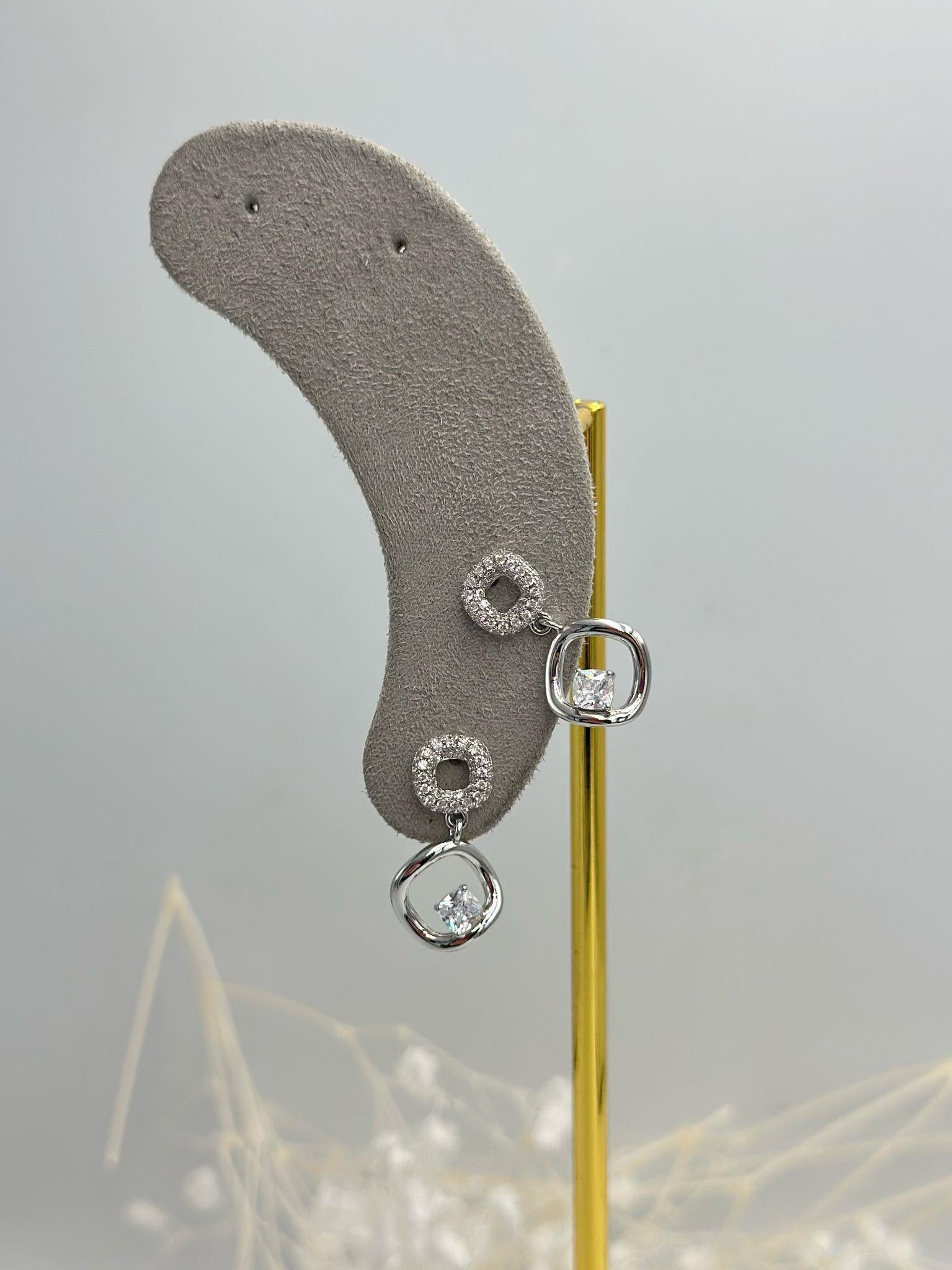 Zirkon Taş Detay Minimal Geometrik Küpe (Çelik)