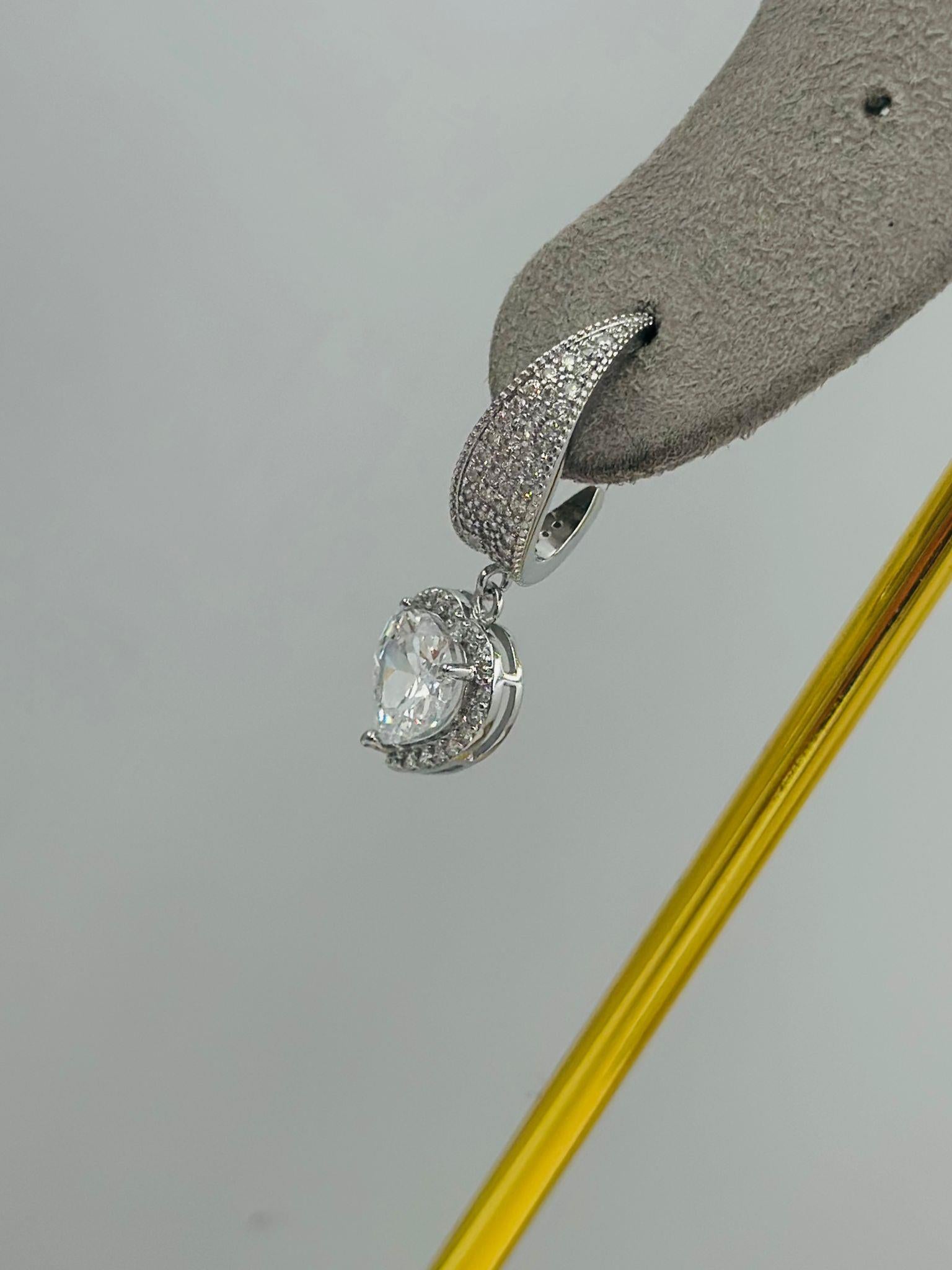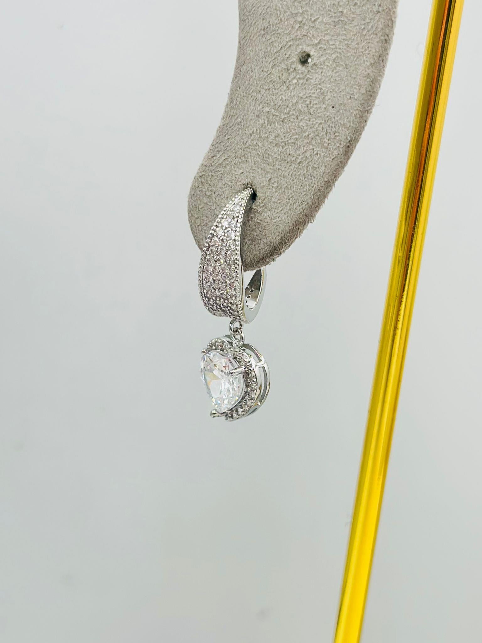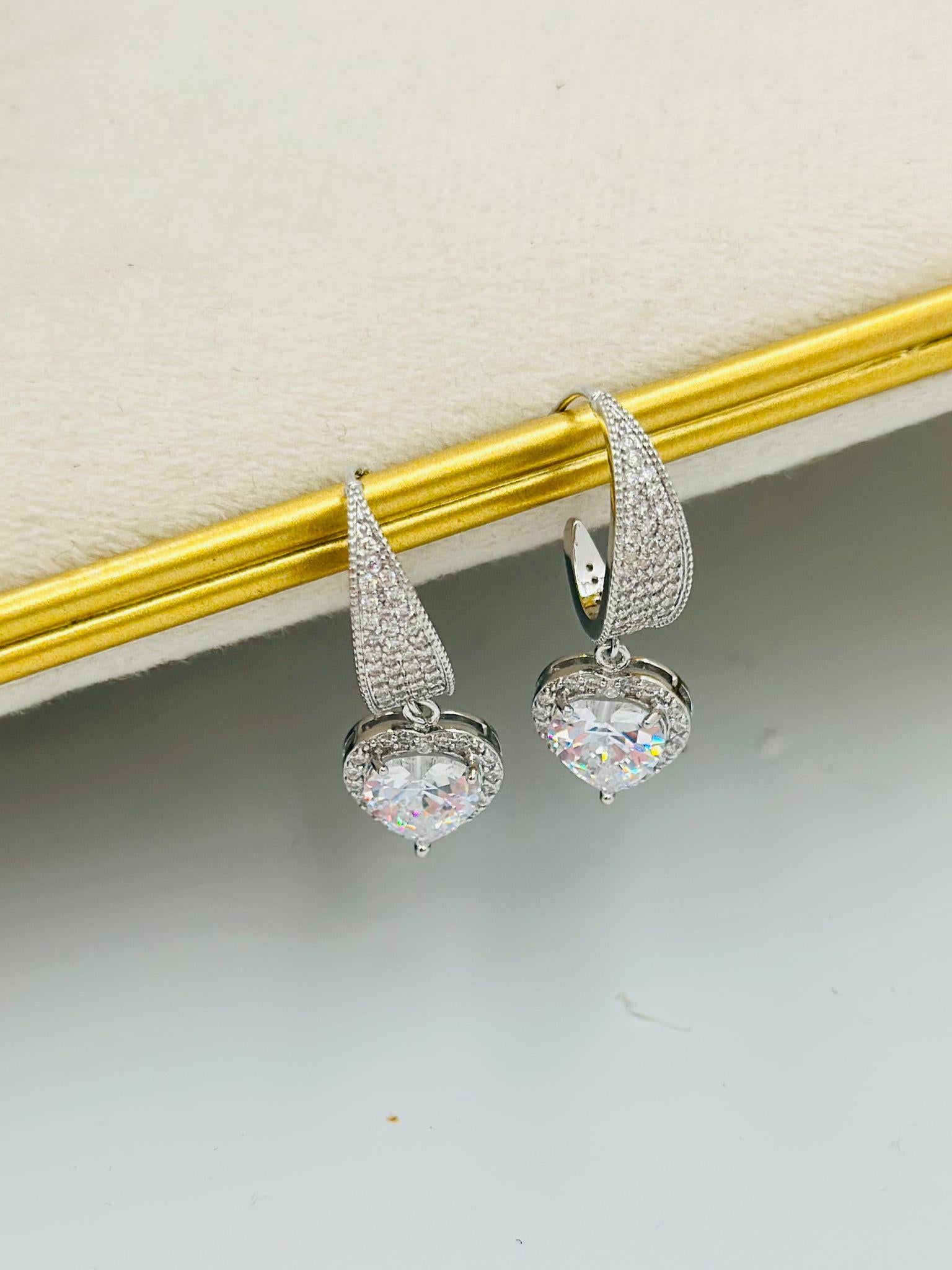 Zirkon Taş Detay Sallantılı Kalp Küpe (Çelik)