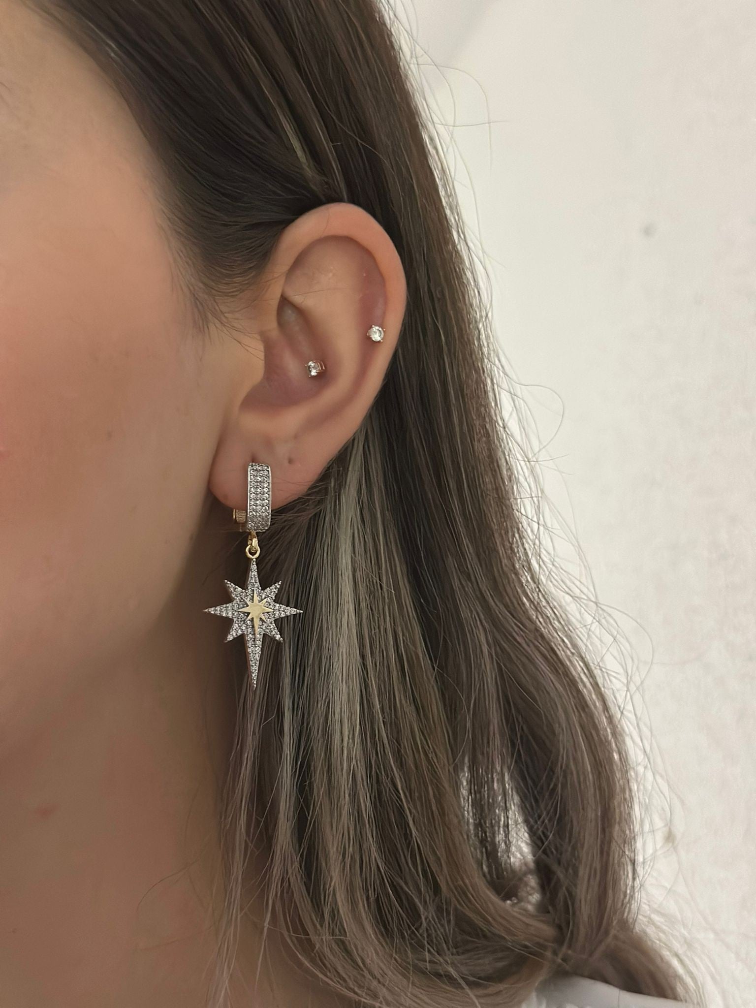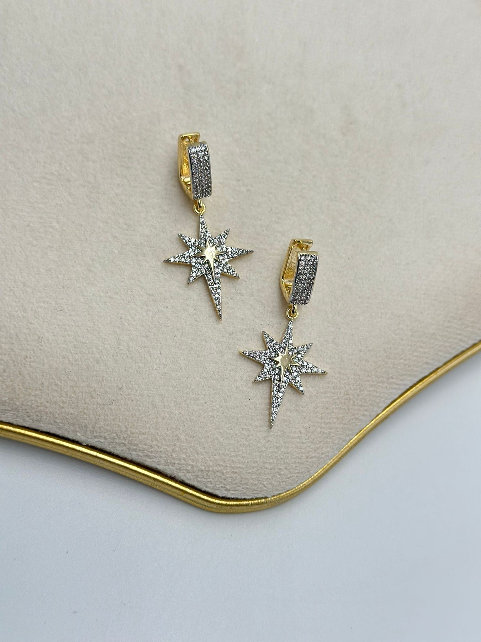 Zirkon Taş Detay Sallantılı Kutup Yıldız Küpe